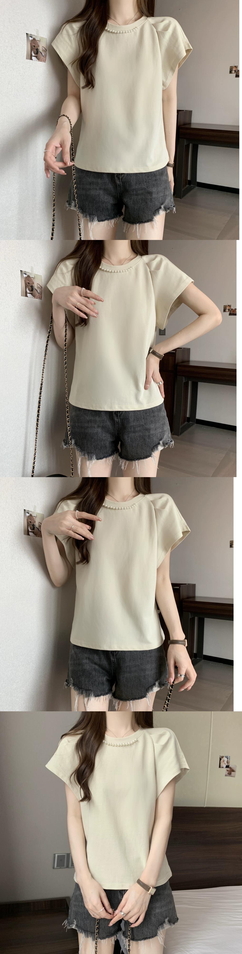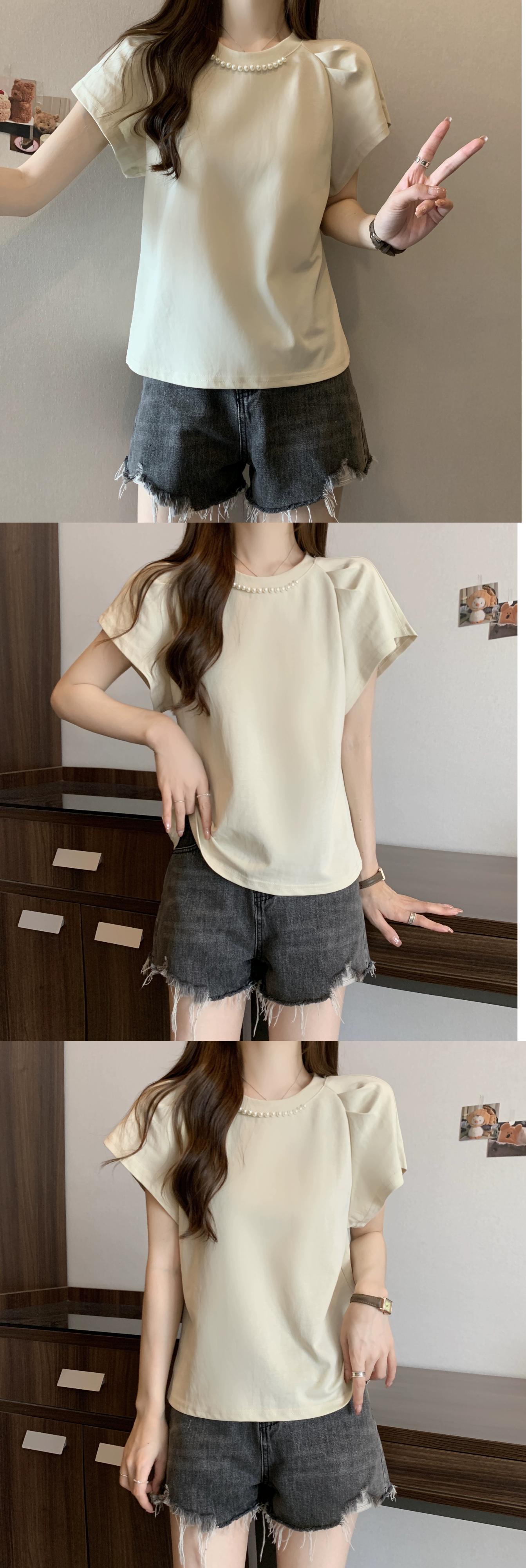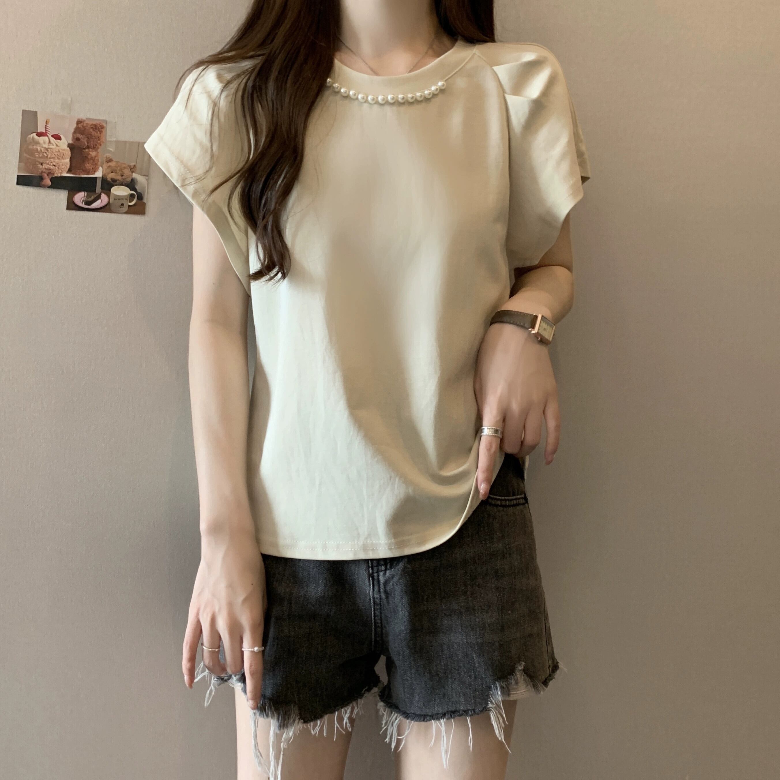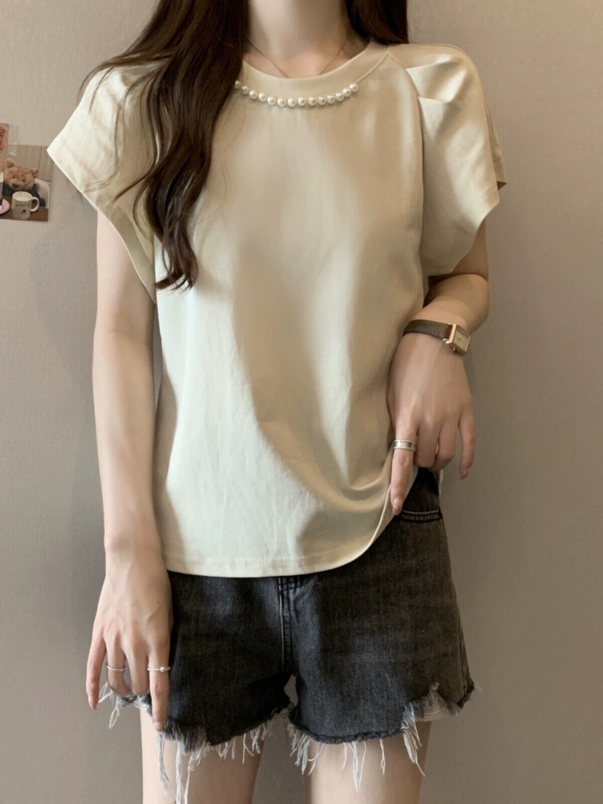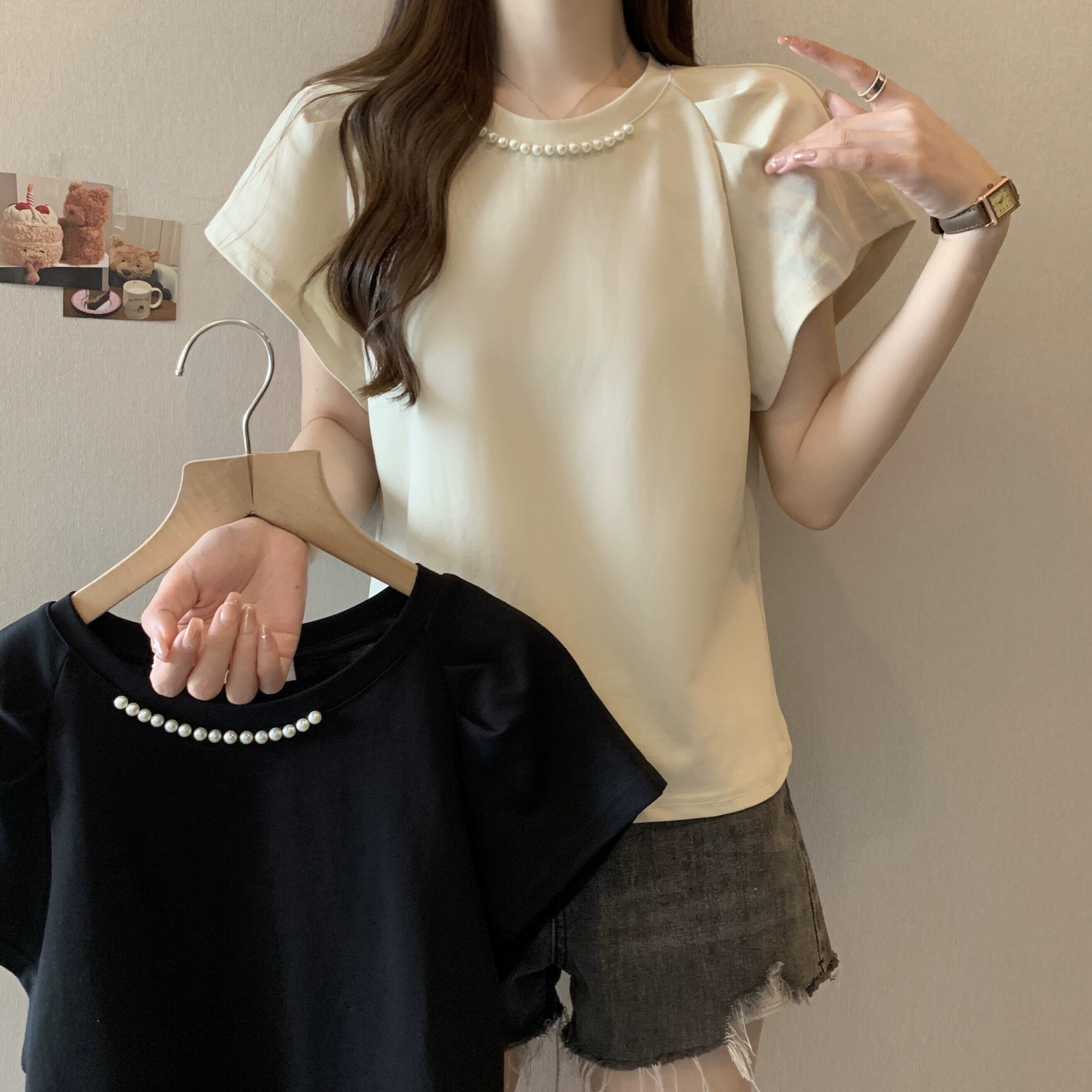 黒の半袖 T シャツの女性の 2023 夏の新バージョンのニッチなデザイン、緩くて薄いオールマッチ ラウンド ネック トップス イン ブラック サマー 夏物 Oネック Tシャツ 7460068134620672 | framboise21