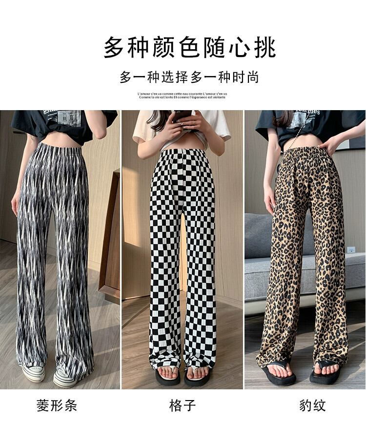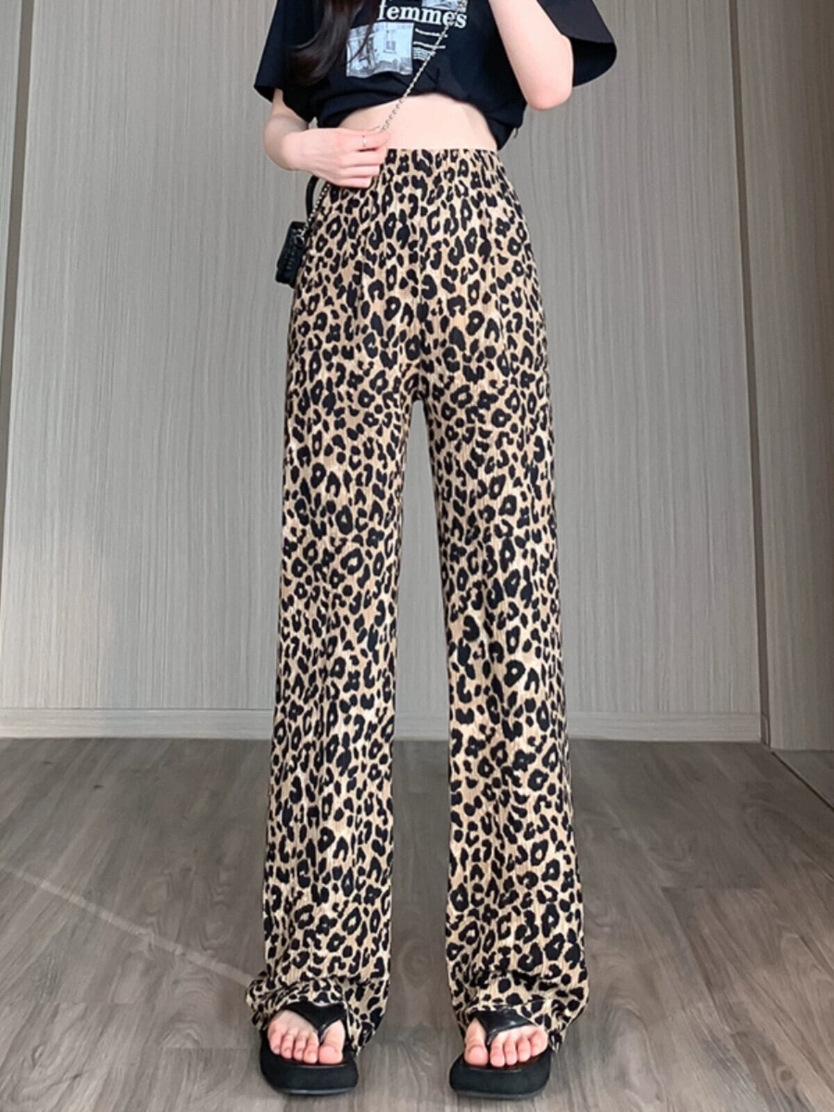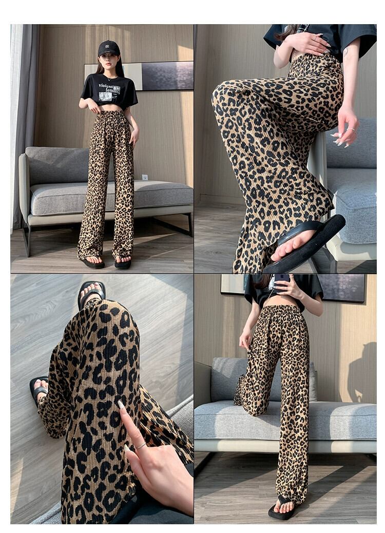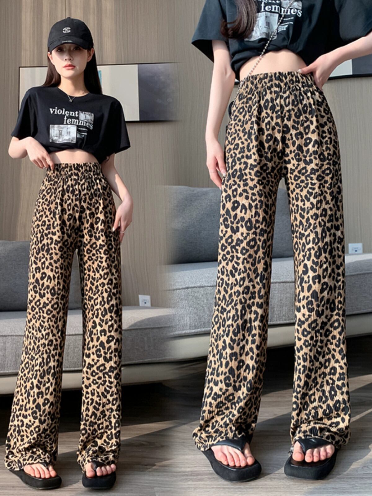 ヒョウ柄アイスシルクワイドレッグパンツレディース夏薄部ストレートハイウエストモップパンツルーズカジュアルドレープロングパンツトレンディ サマー 夏物 7460032475095382 | framboise21