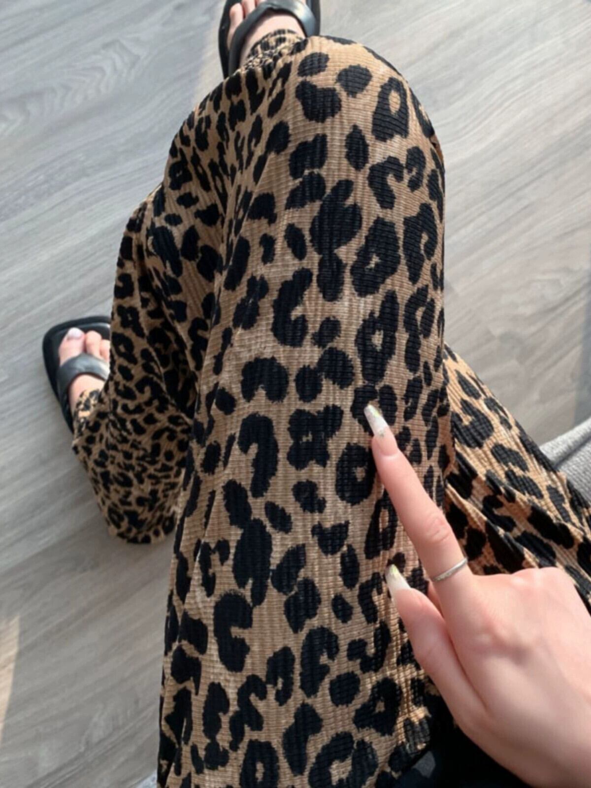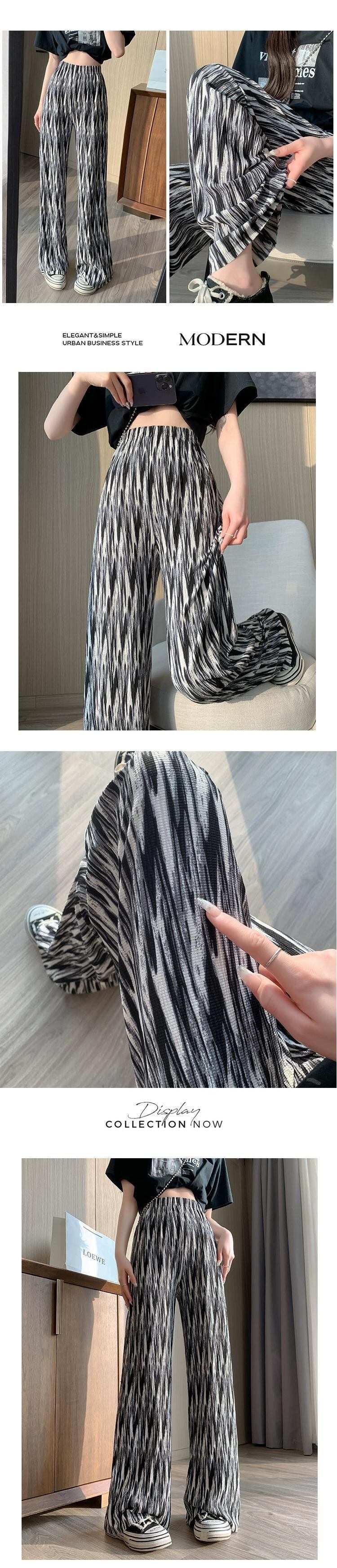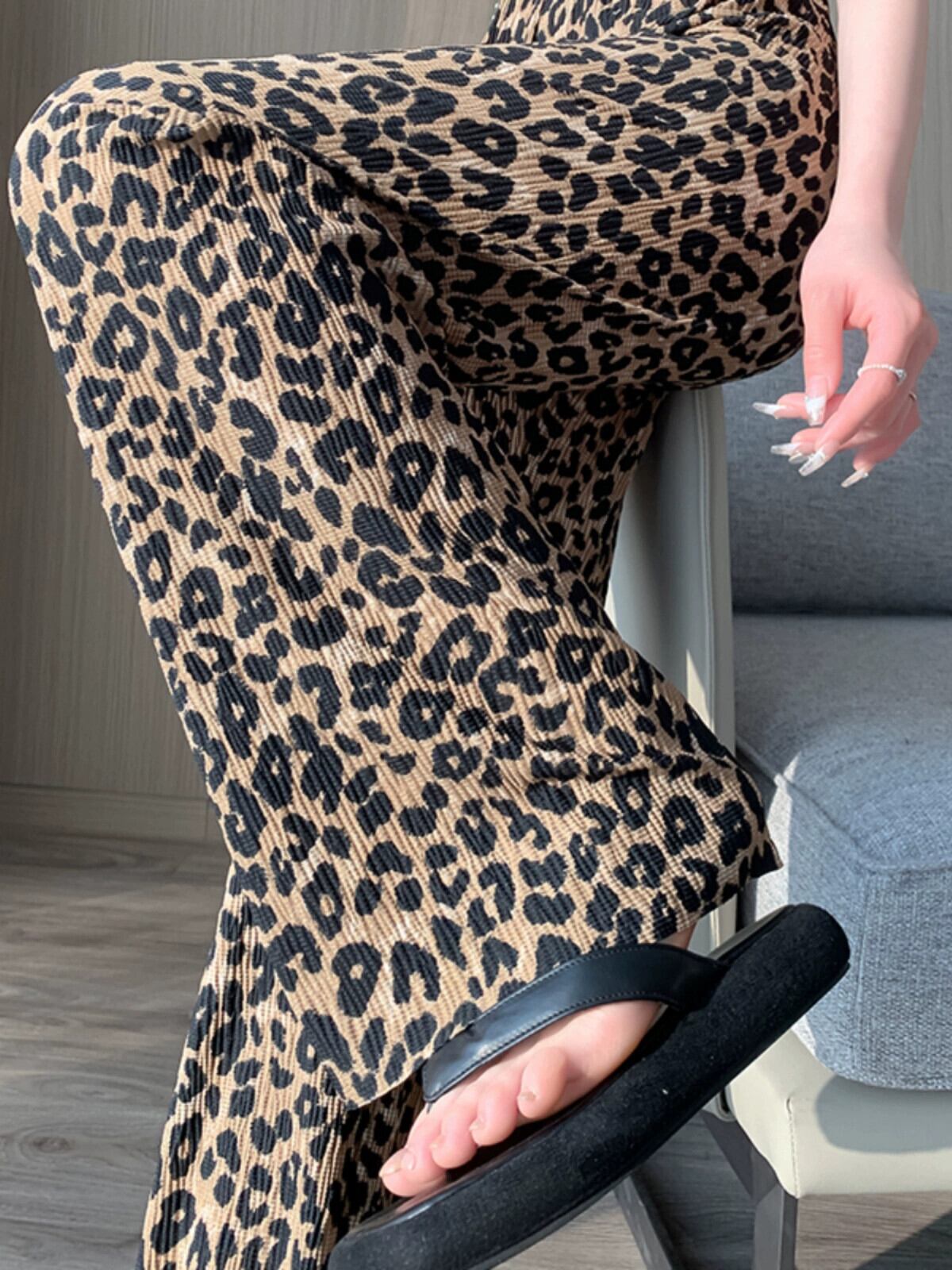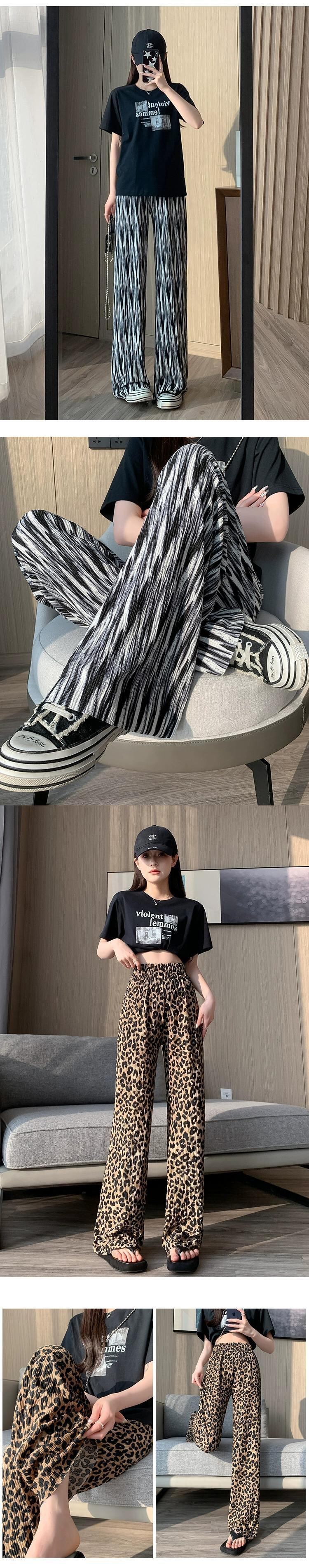 ヒョウ柄アイスシルクワイドレッグパンツレディース夏薄部ストレートハイウエストモップパンツルーズカジュアルドレープロングパンツトレンディ サマー 夏物 7460032475095382 | framboise21