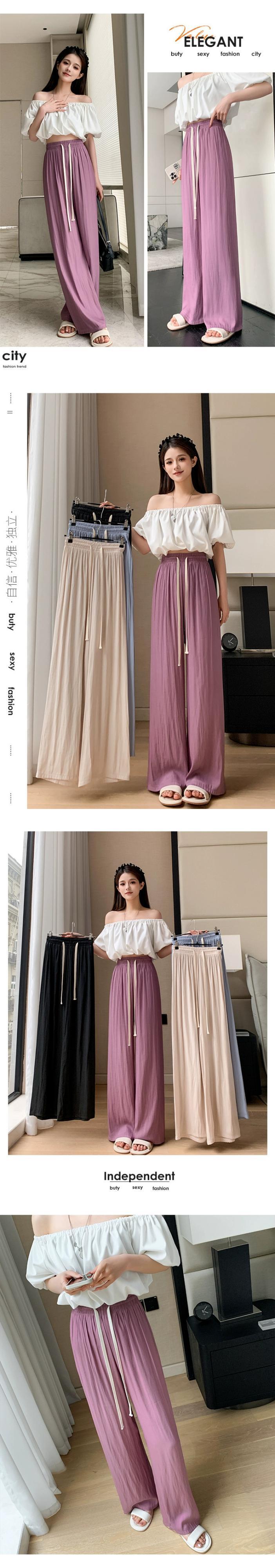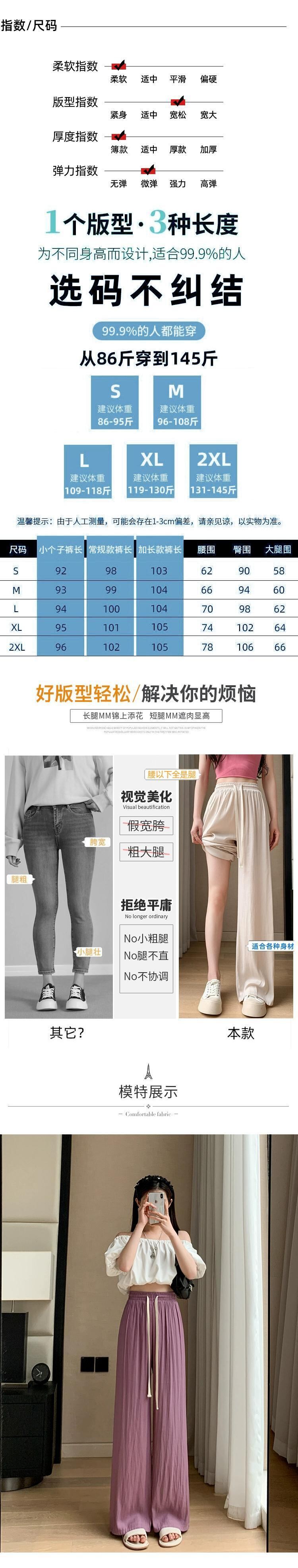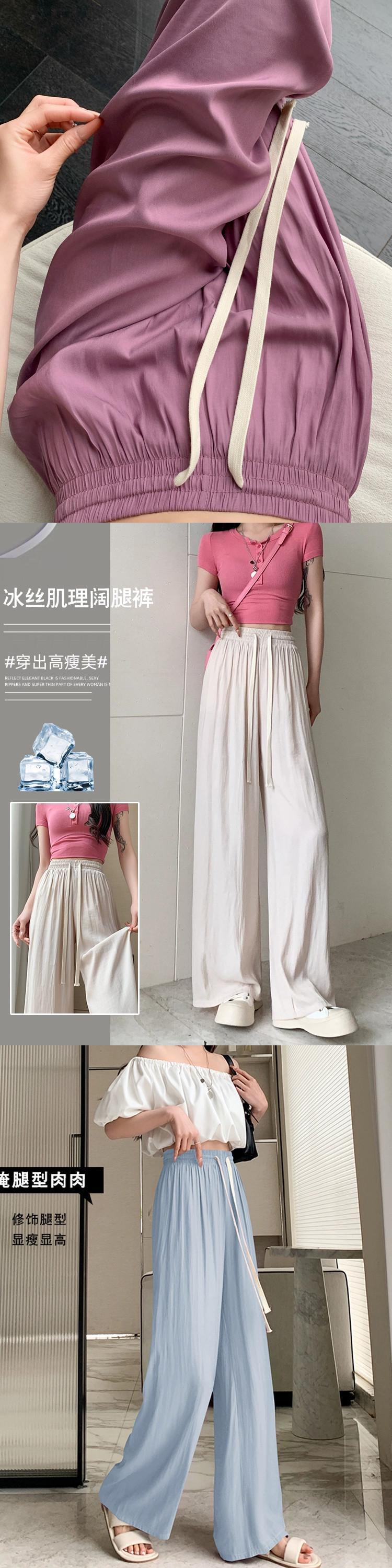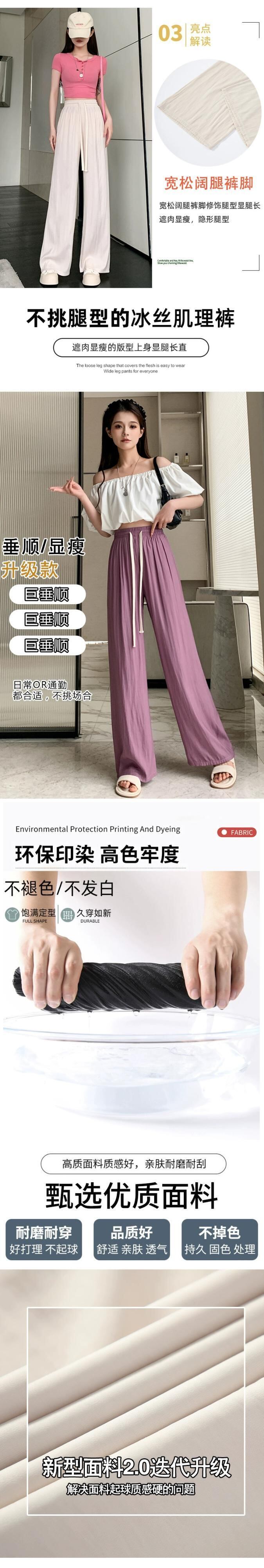 パープルアイスシルクワイドレッグパンツレディース夏薄手ルーズストレートハイウエストドレープテクスチャーマスクカジュアルパンツトレンディ ハイウェスト サマー 夏物 7460068697186384 | framboise21