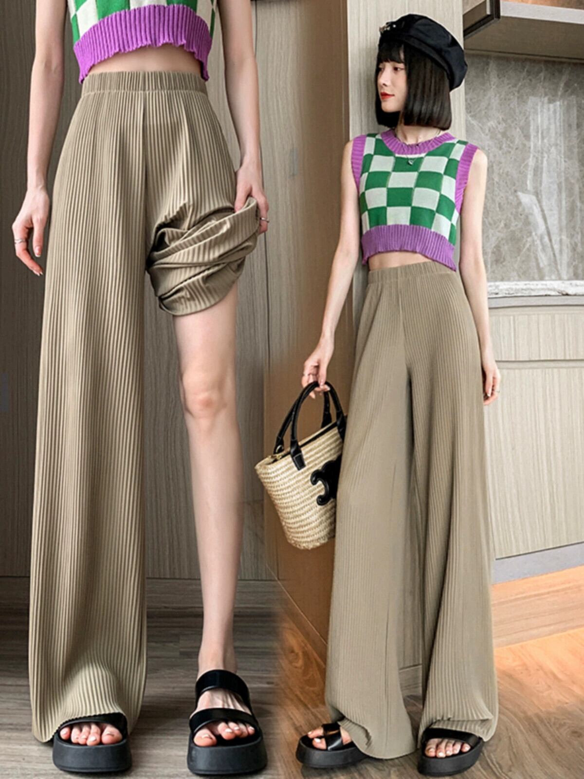 アイスシルクワイドレッグパンツ女性の夏の 2023 新しい薄いセクションカジュアル垂直モップパンツルーズスリムハイウエストパンツ サマー 夏物 7460054529930928 | framboise21
