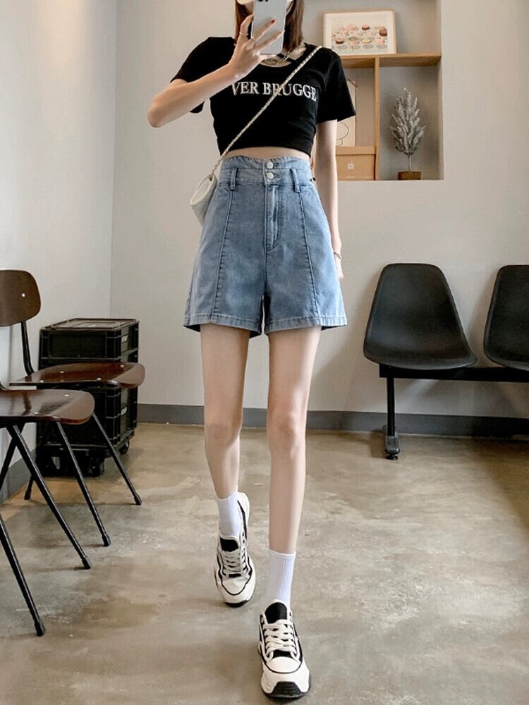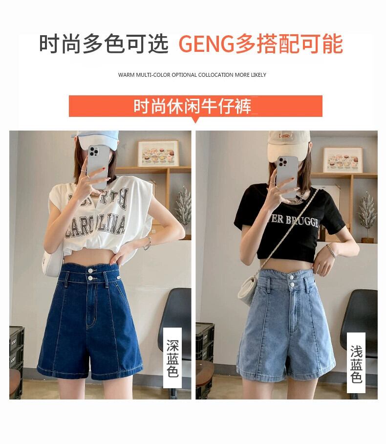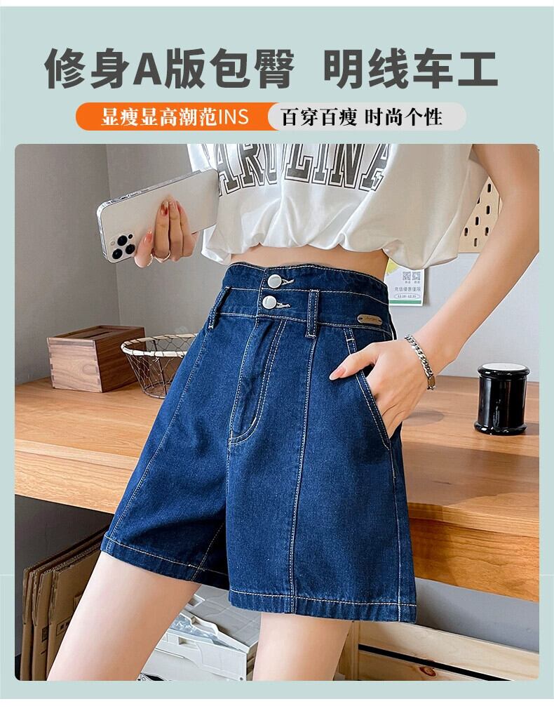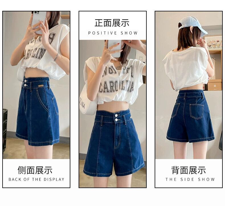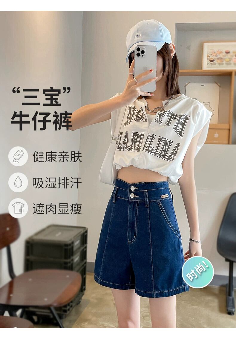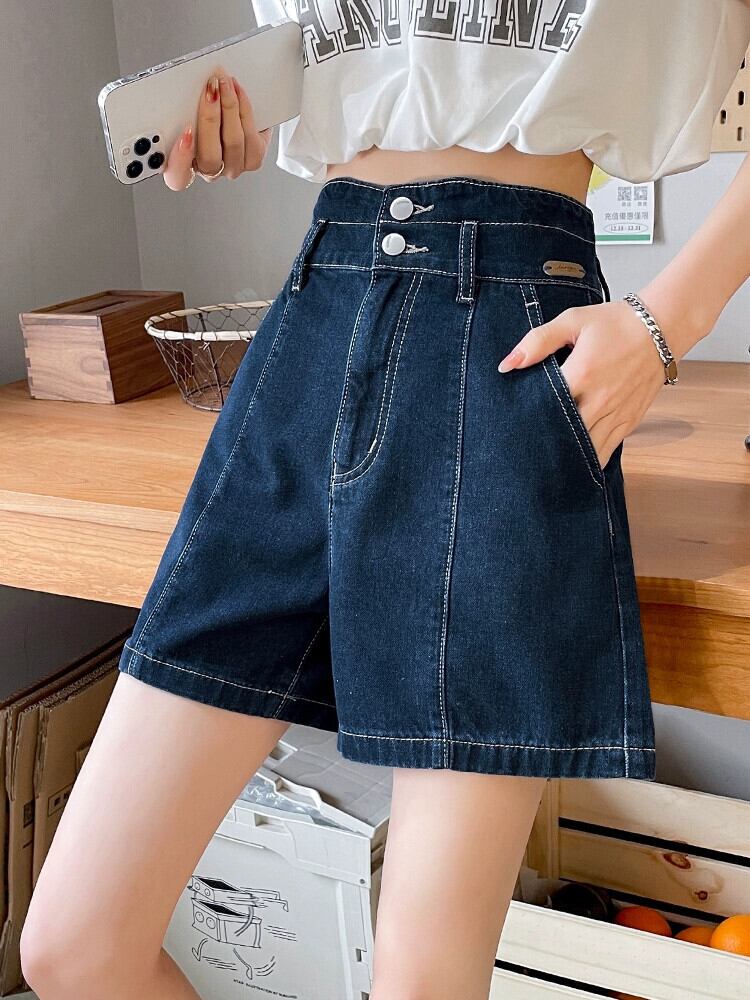 ダークブルーハイウエストデニムショートパンツレディース2023年夏新作ルーズアウタースリミングワイドレッグAラインパンツ サマー 夏物 ショーツ ブルマー 7460064748751143 | framboise21