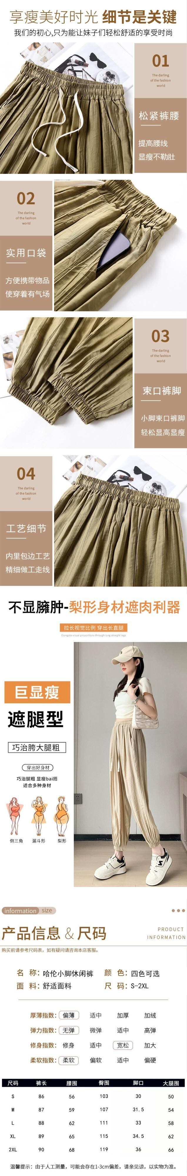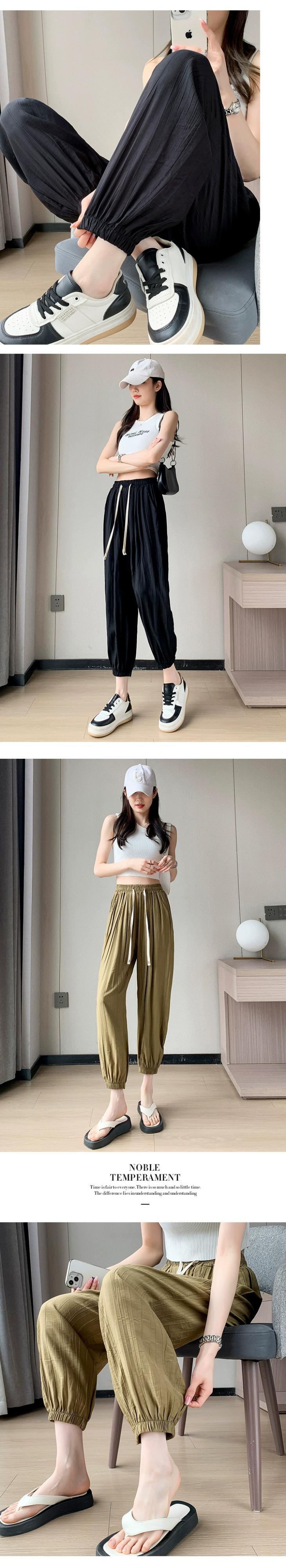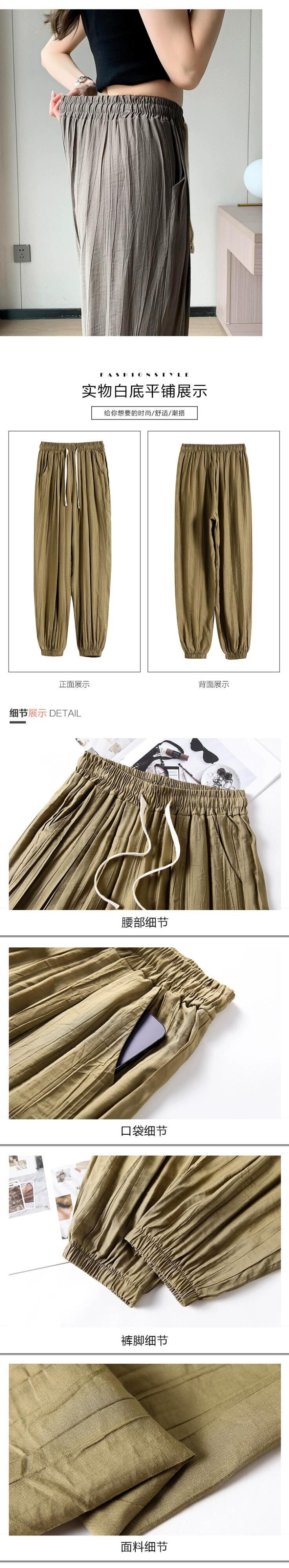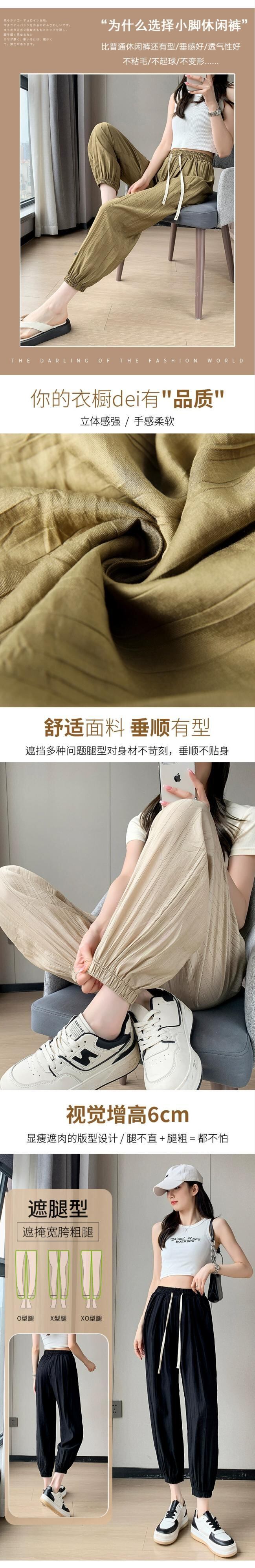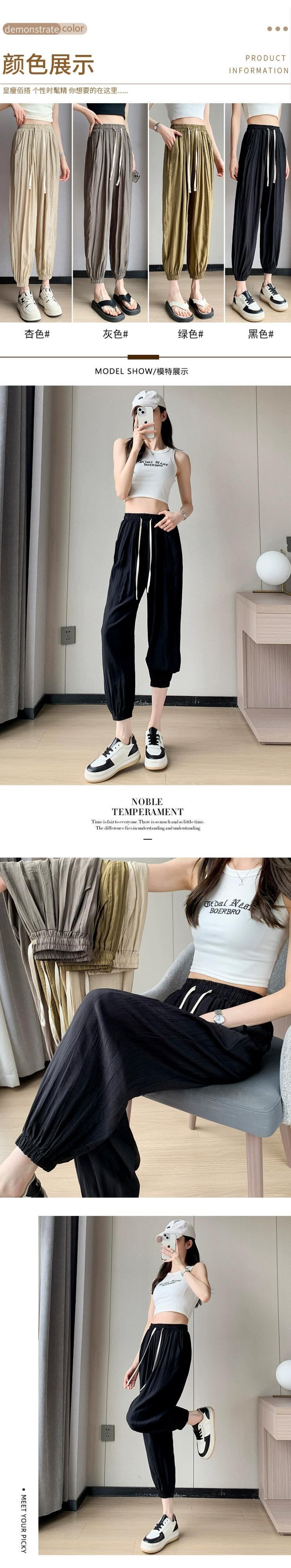 折り足アイスシルクパンツ女性の夏の薄いセクション弾性ウエストハーレムパンツスリムハイウエスト 9 ポイントストレートカジュアルパンツ ハイウェスト エラスティック 伸縮 サマー 夏物 746002931837021 | framboise21