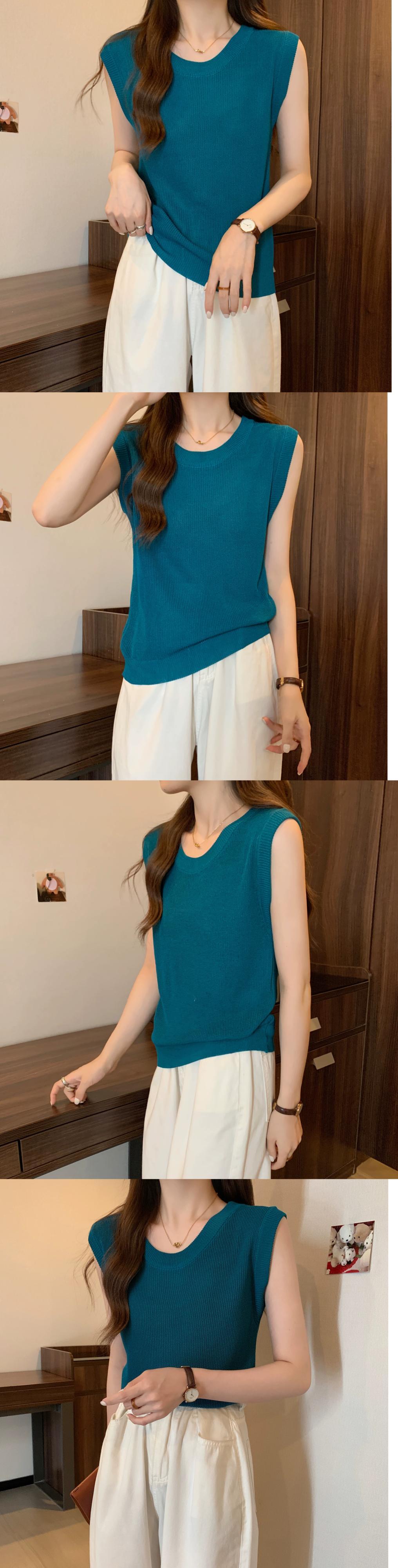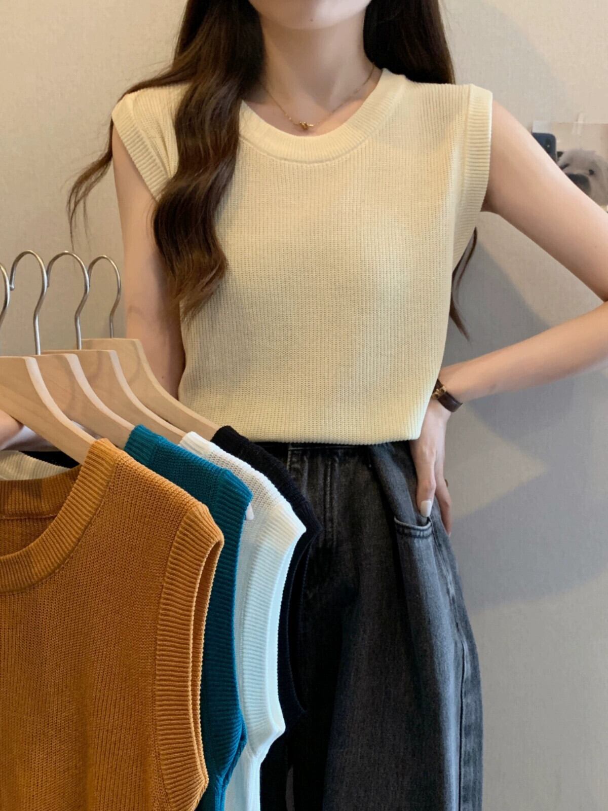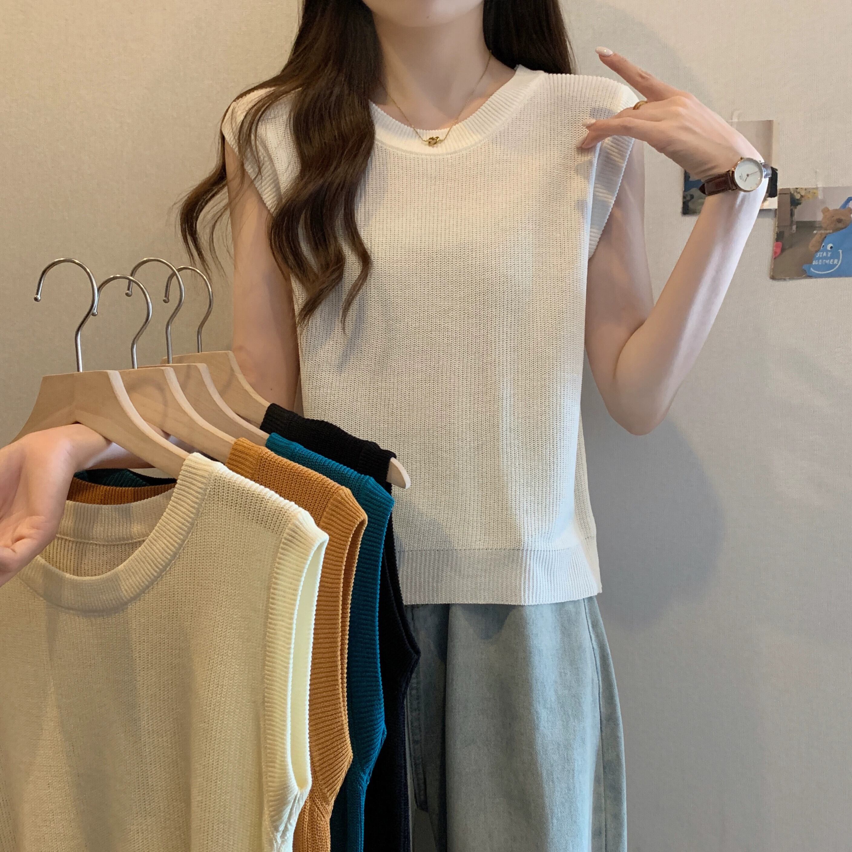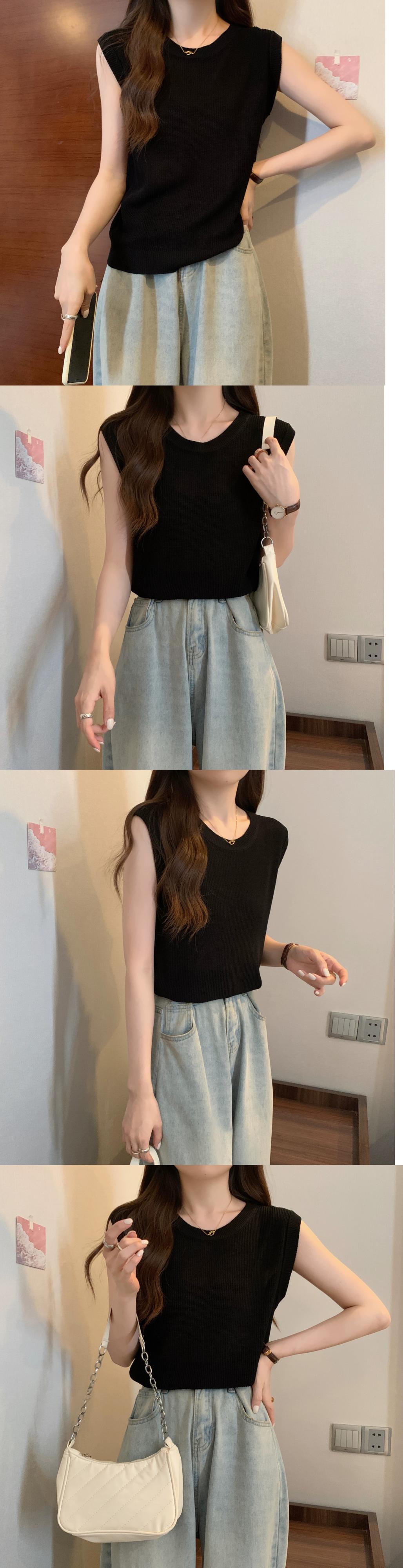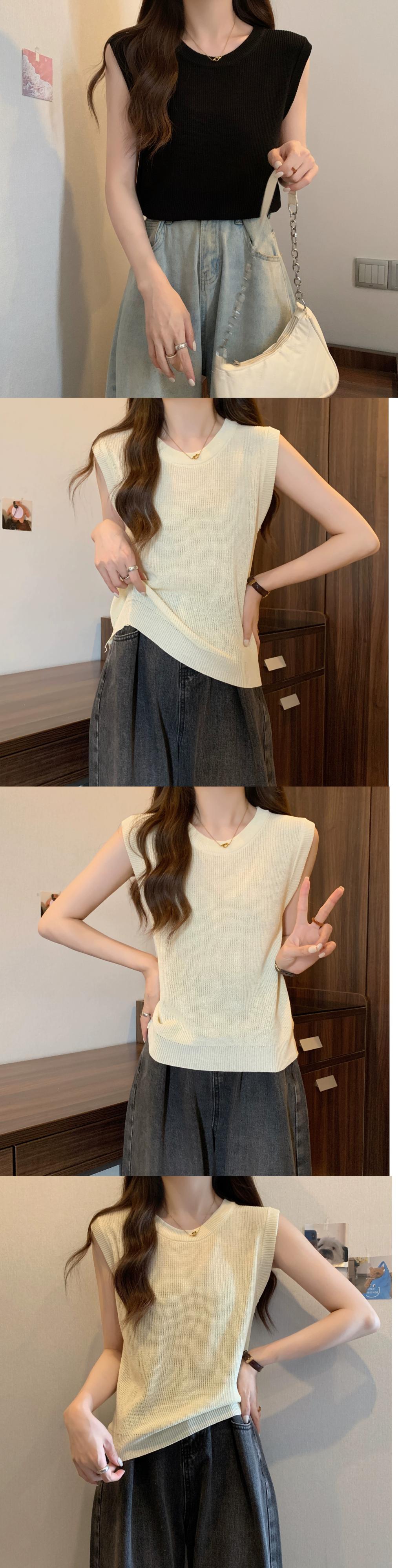 薄氷シルクニットノースリーブ tシャツ女性の夏の 2023 新しい eign スタイルファッションルーズオールマッチショートラウンドネックトップ サマー 夏物 Oネック 7460094764041771 | framboise21