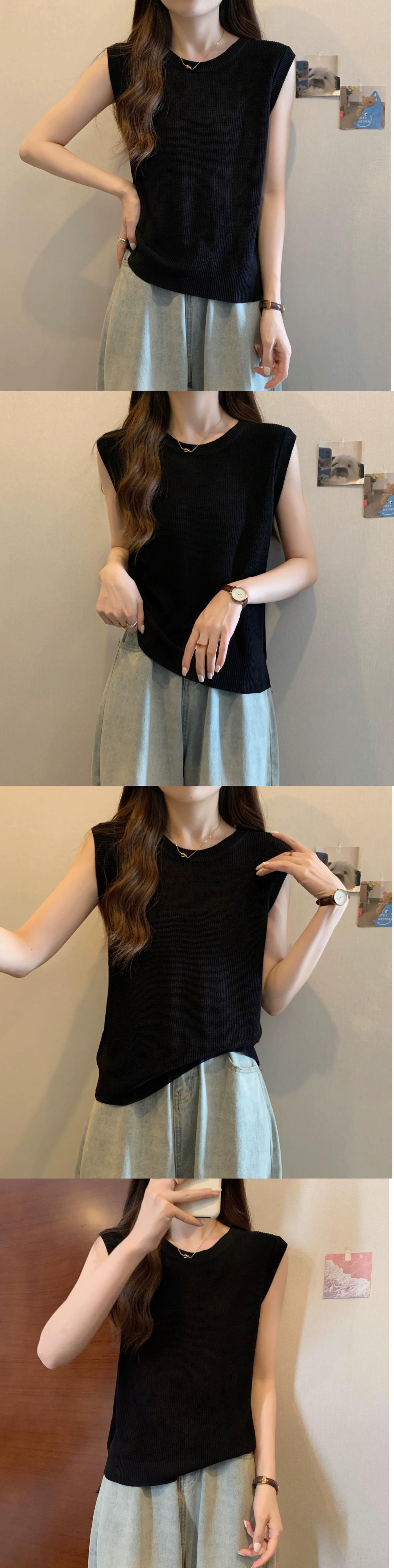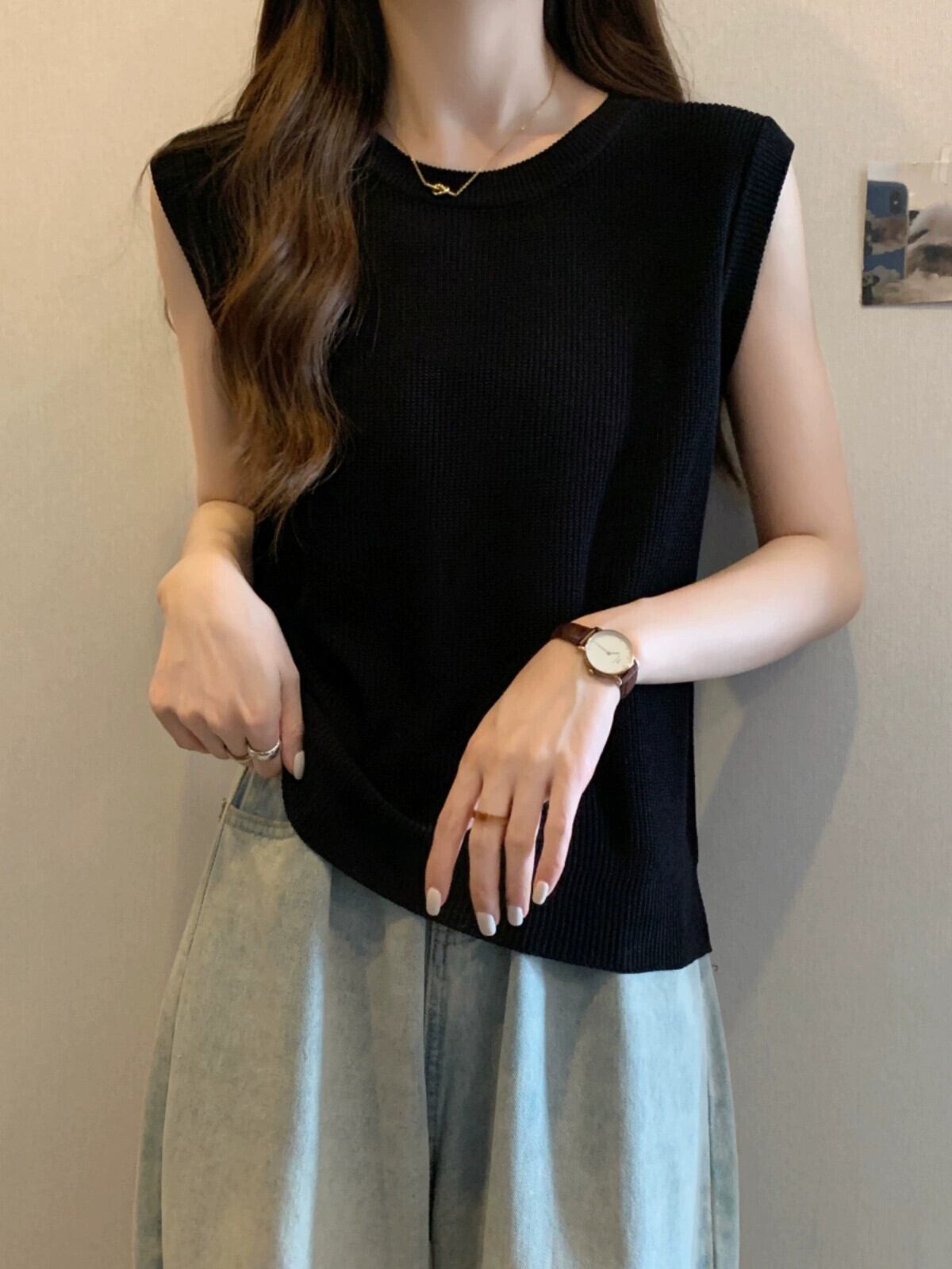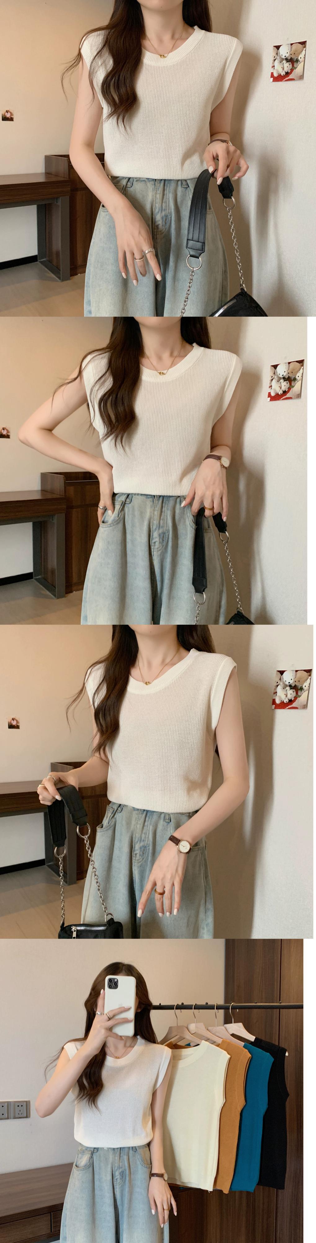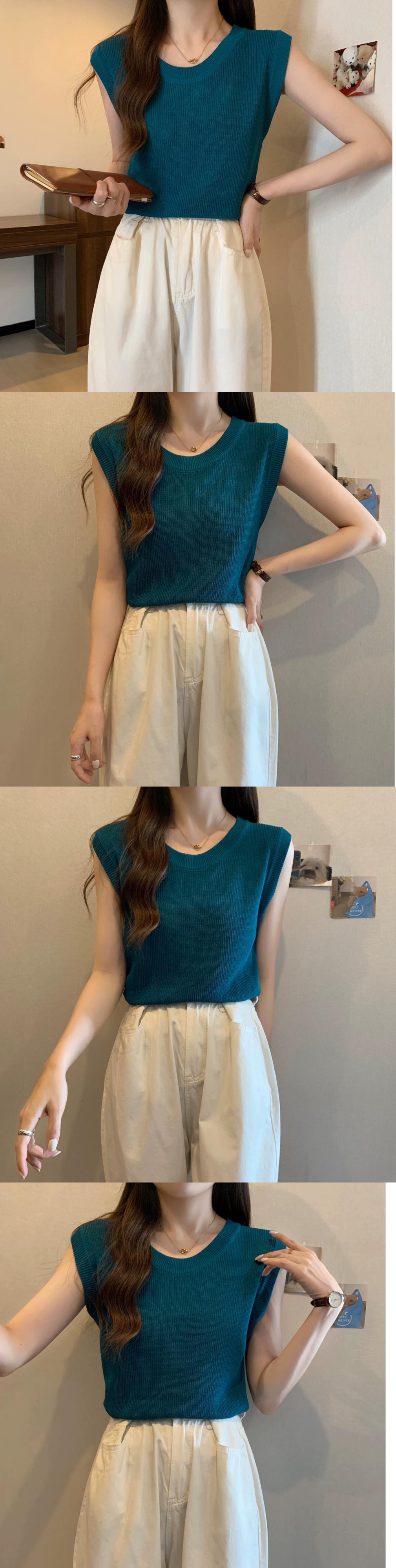 薄氷シルクニットノースリーブ tシャツ女性の夏の 2023 新しい eign スタイルファッションルーズオールマッチショートラウンドネックトップ サマー 夏物 Oネック 7460094764041771 | framboise21