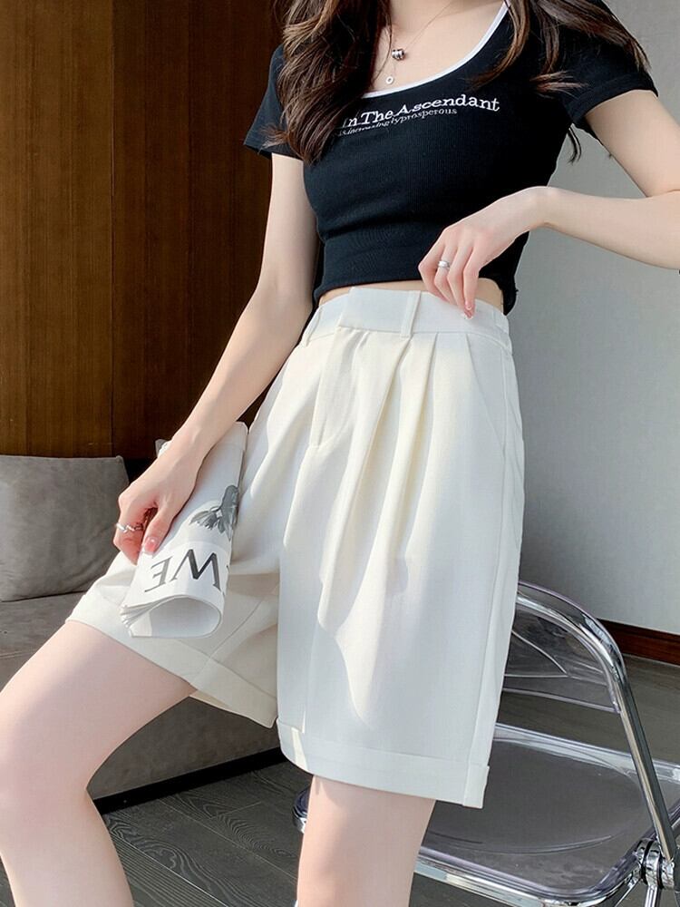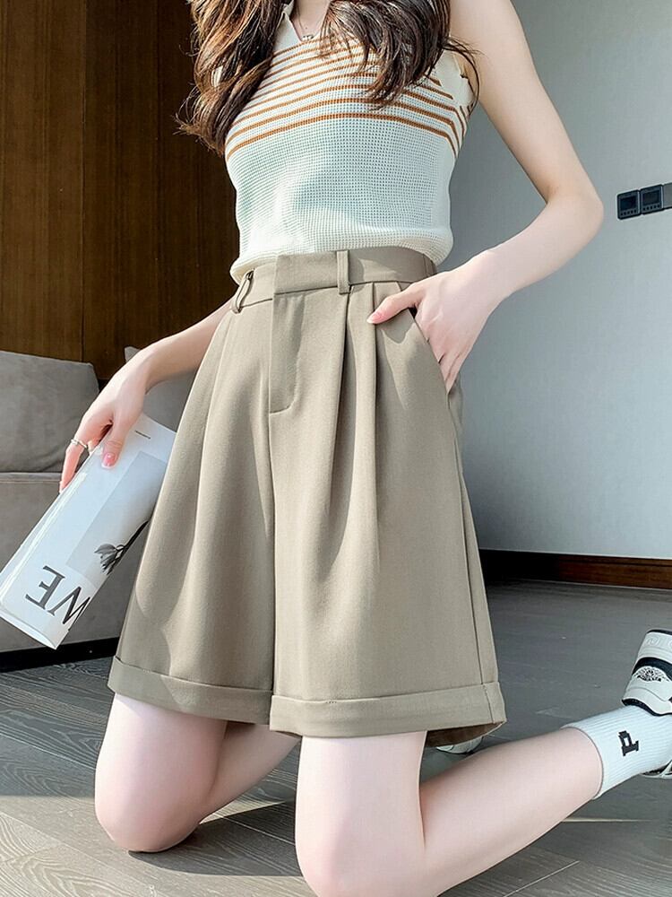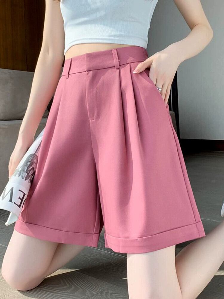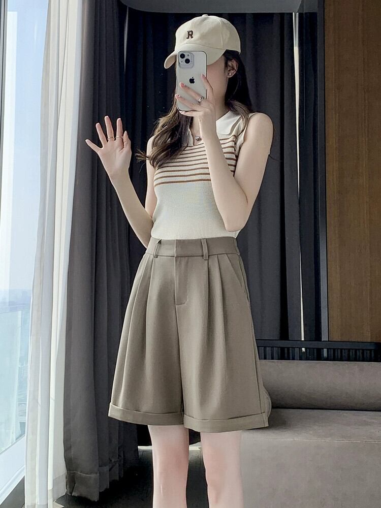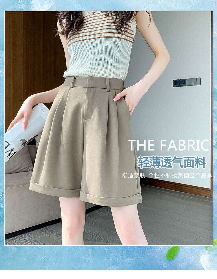 ウエストスーツショーツ女性の夏薄いアイスシルク 5 点パンツルーズオールマッチアウターウェアスリムカジュアルワイドレッグパンツ サマー 夏物 ブルマー 7460073327637278 | framboise21