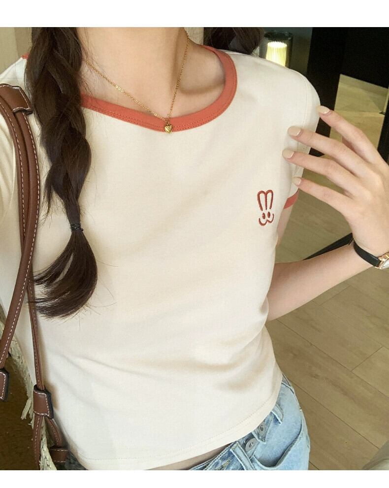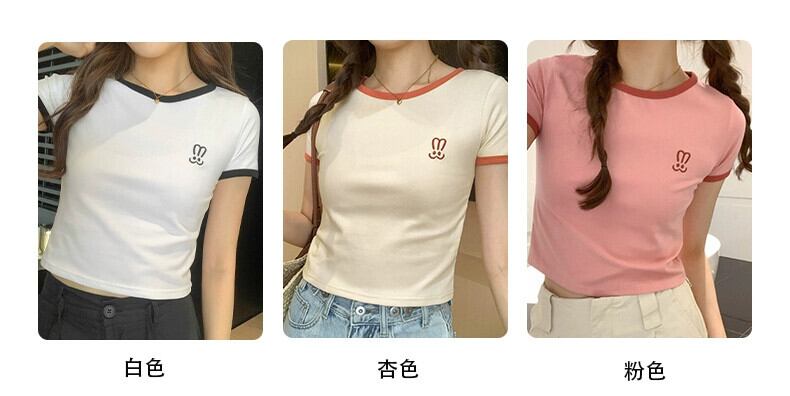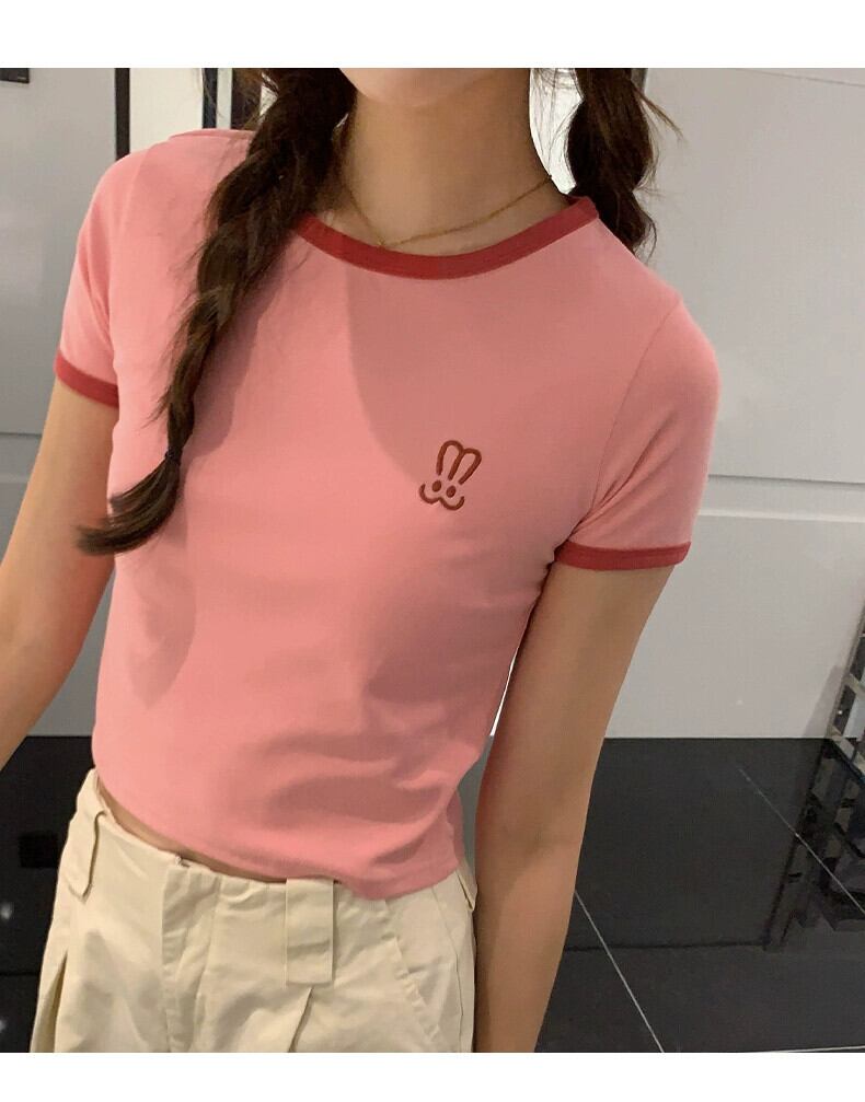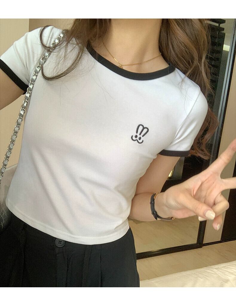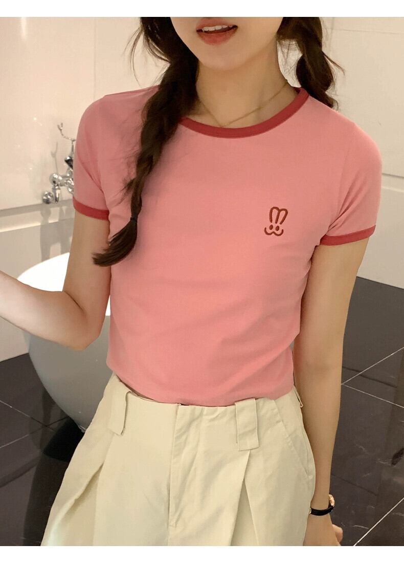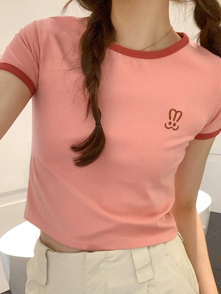 ピンクフロントショルダーハイウエスト半袖Tシャツレディース夏デザイン自己修養の感覚スリムで小さいショートラウンドネックトップスイン ハイウェスト サマー 夏物 Oネック 7460059215595586 | framboise21