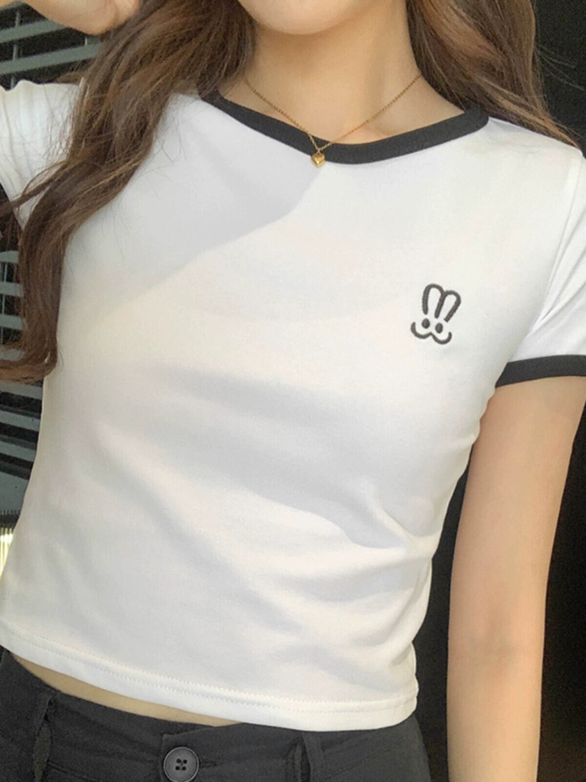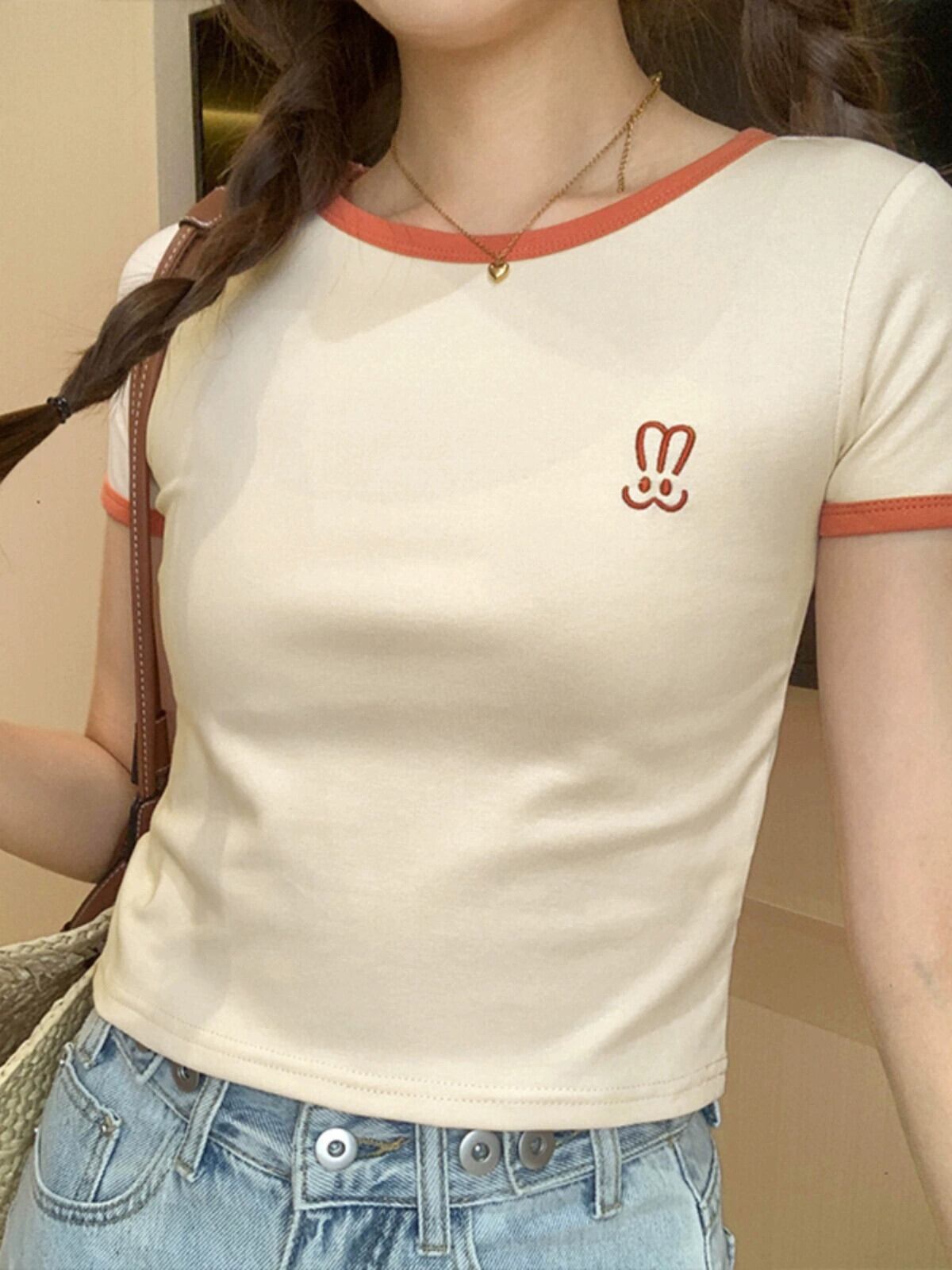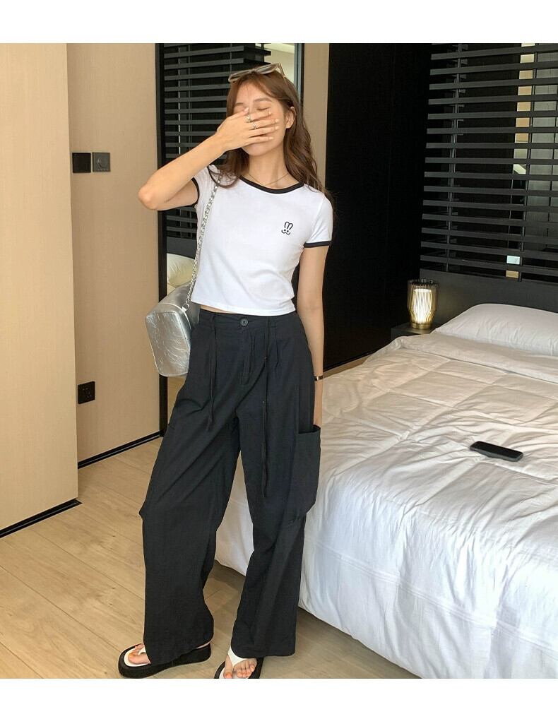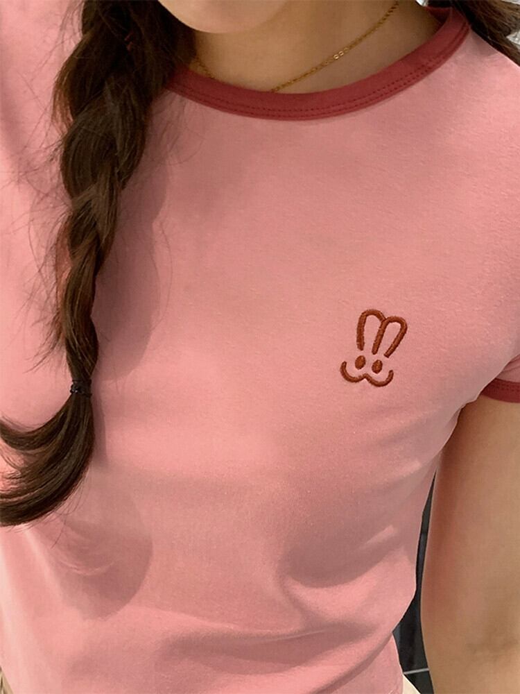 ピンクフロントショルダーハイウエスト半袖Tシャツレディース夏デザイン自己修養の感覚スリムで小さいショートラウンドネックトップスイン ハイウェスト サマー 夏物 Oネック 7460059215595586 | framboise21