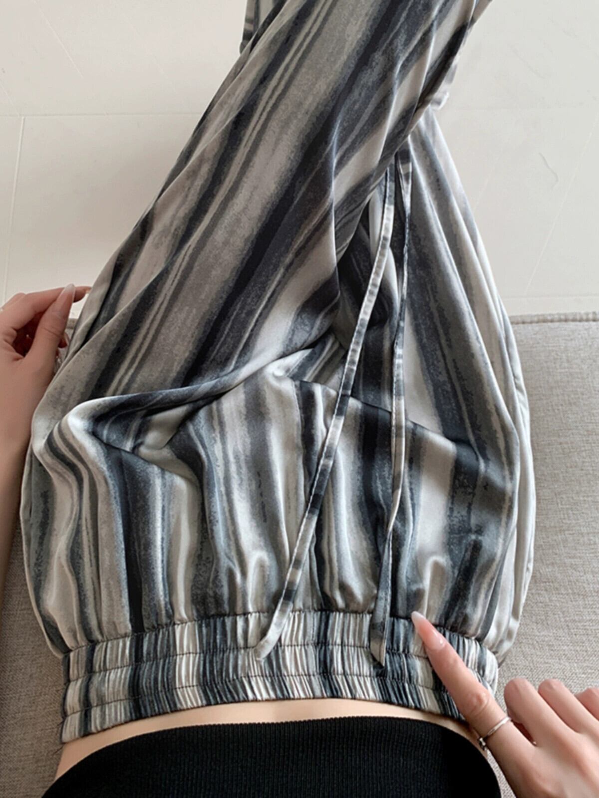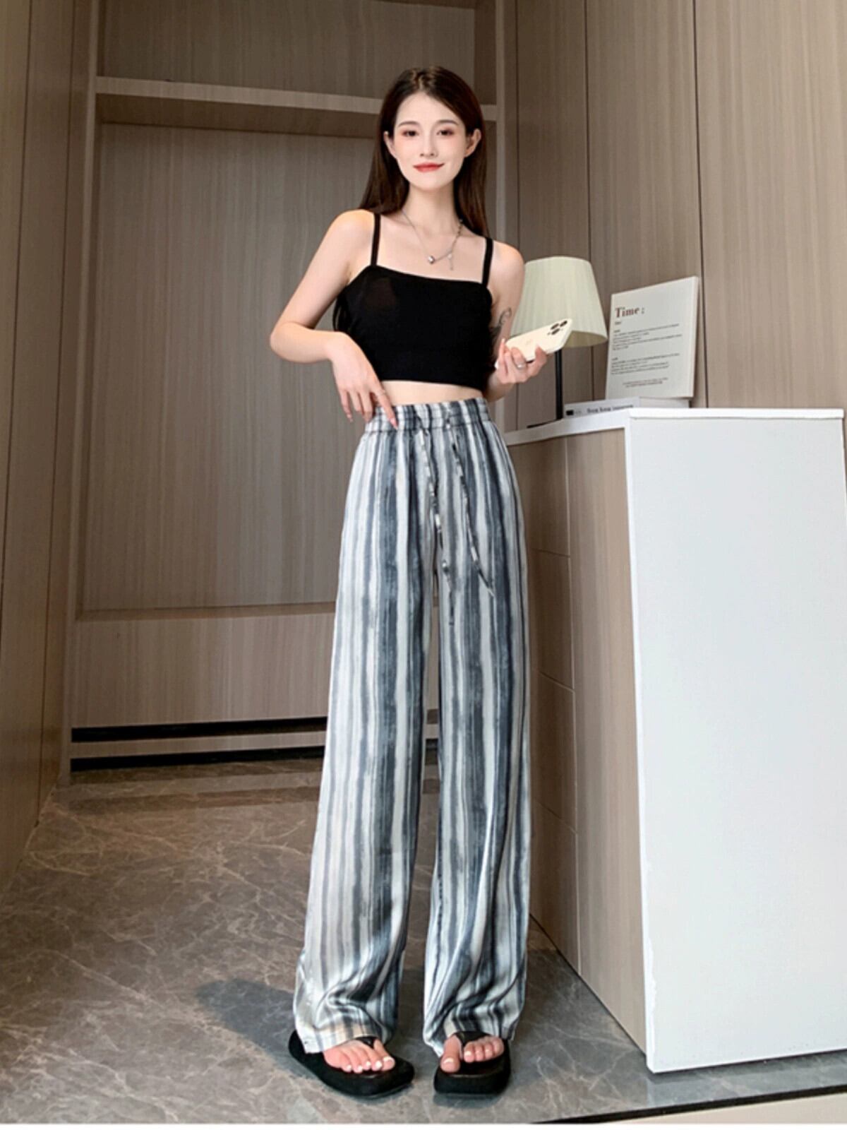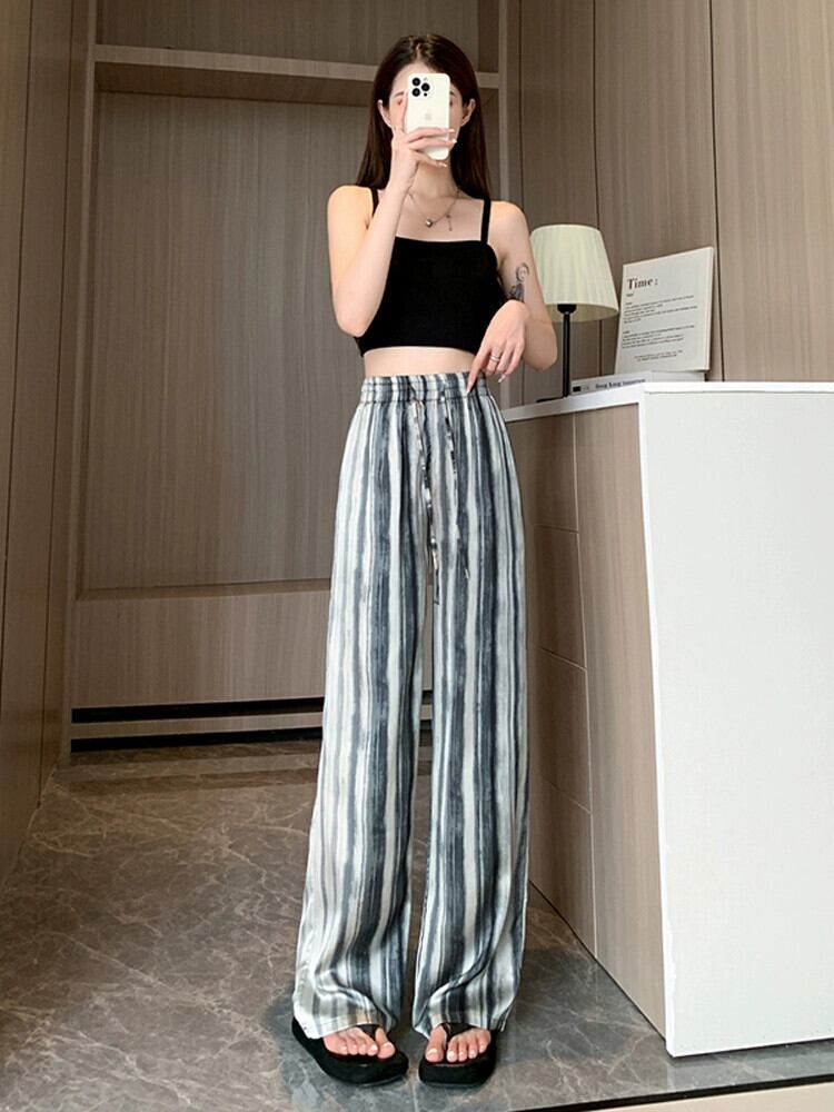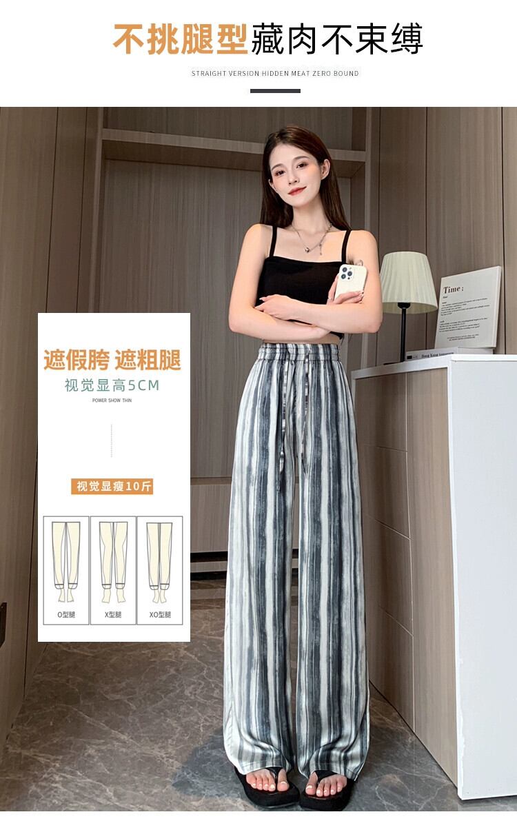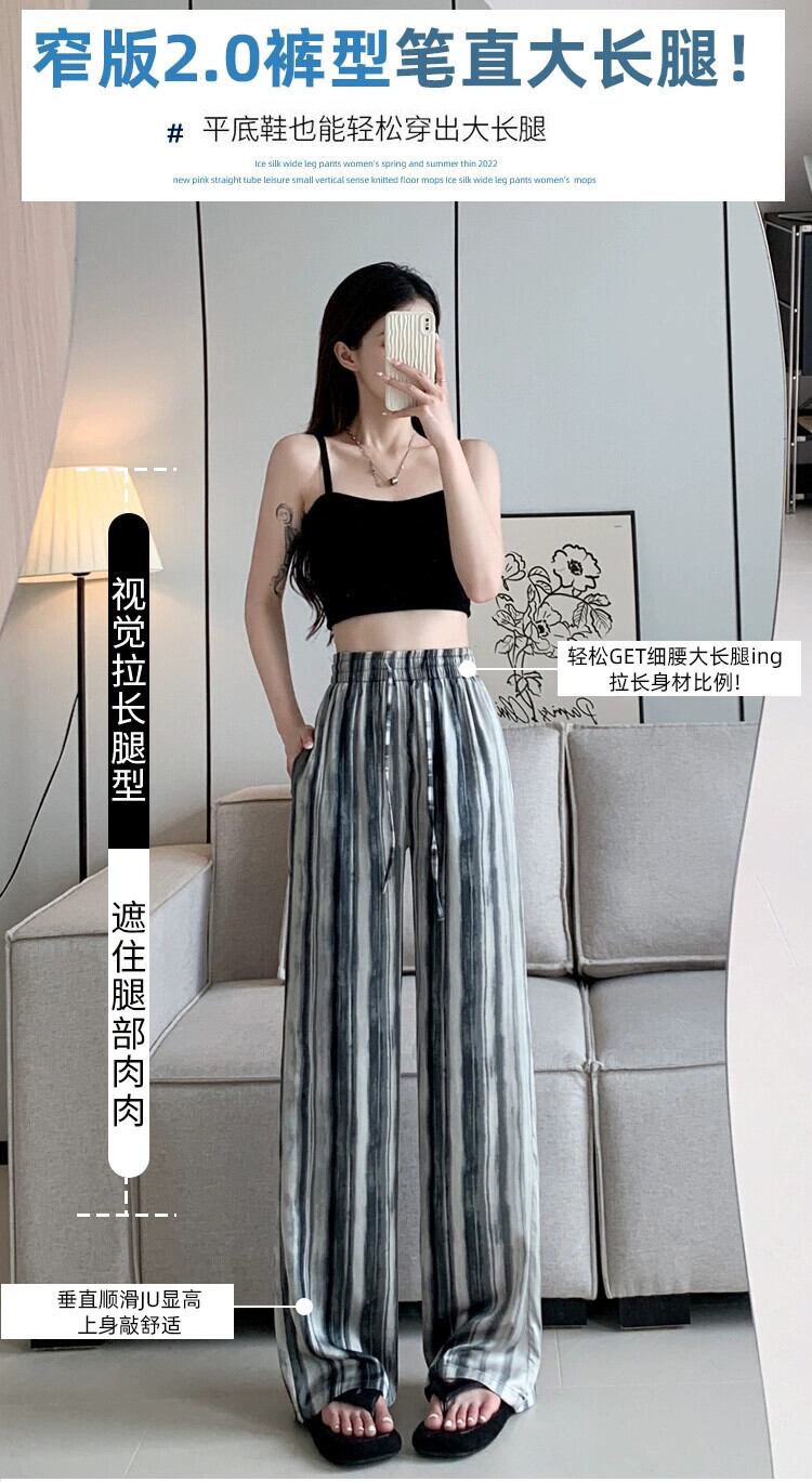 アセテートアイスシルクワイドレッグパンツの狭いバージョンの女性の夏の薄いセクションハイウエストドレープパンツルーズストレート弾性ウエストカジュアルレディースパンツ ハイウェスト エラスティック 伸縮 サマー 夏物 7460086638117748 | framboise21