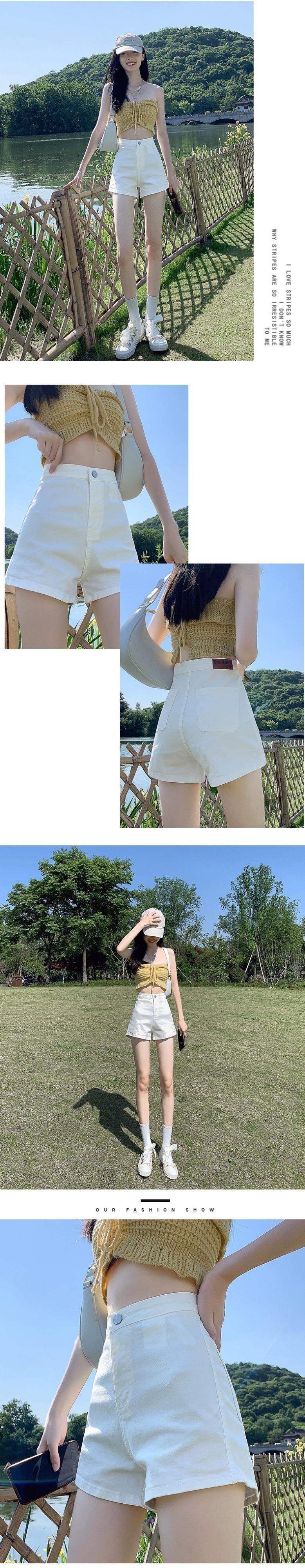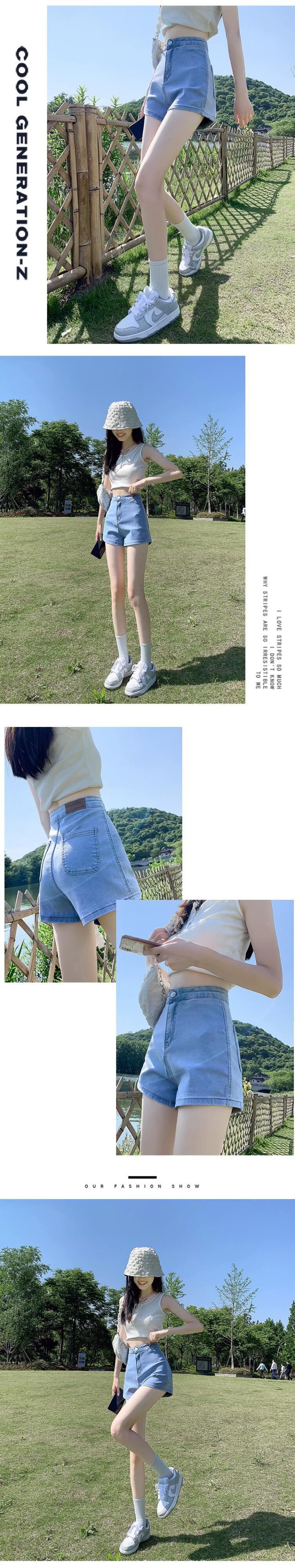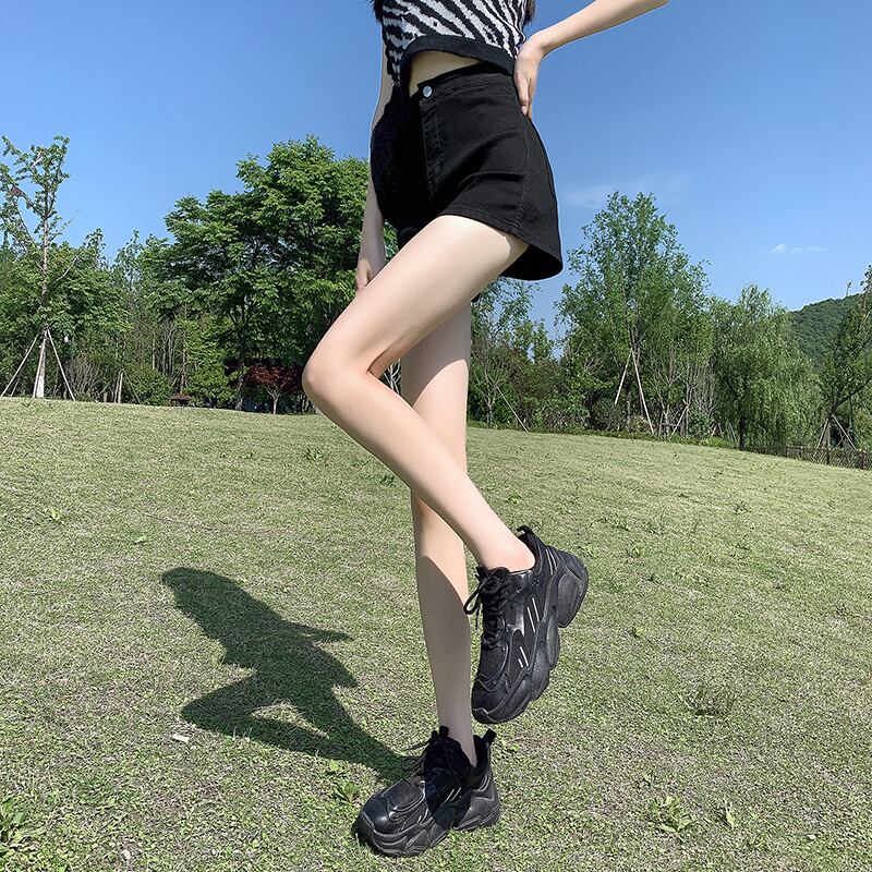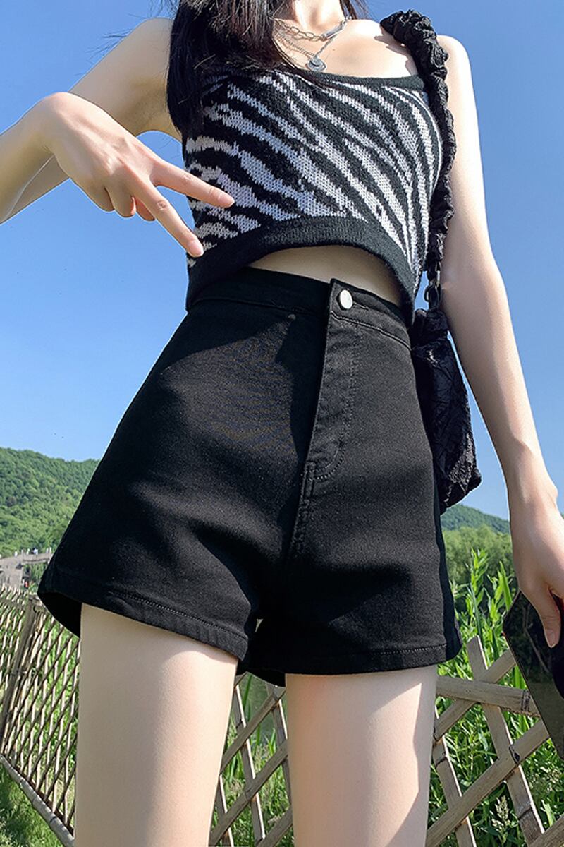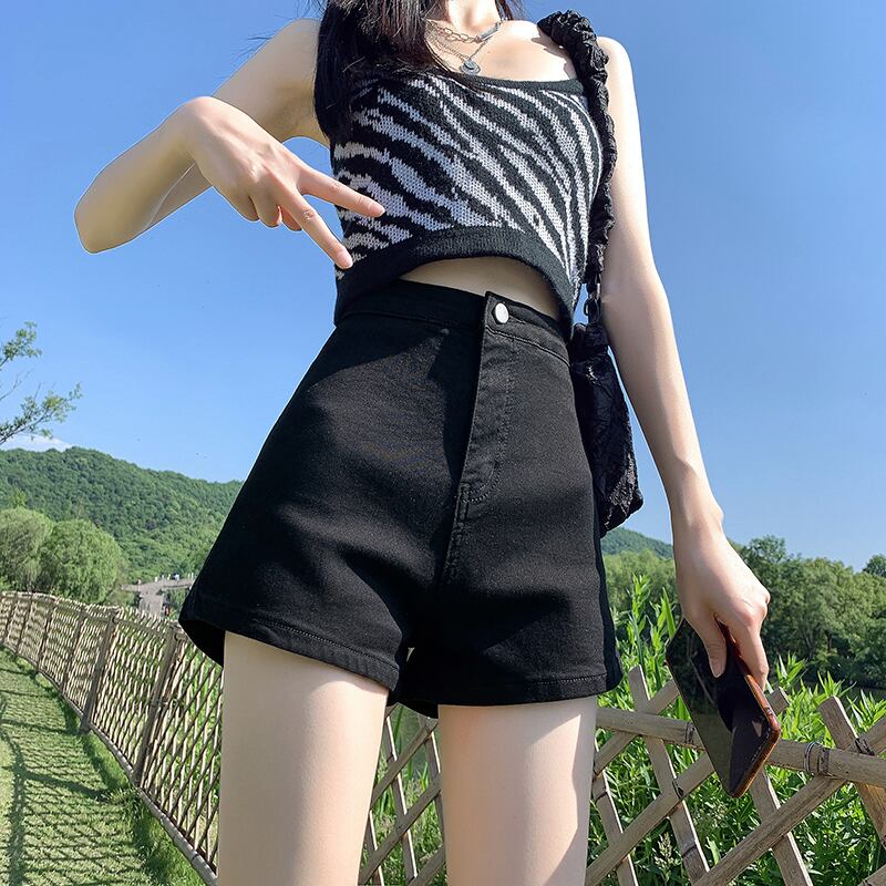 ブラックデニムショートパンツの女性の2023年夏新しいスタイルの小柄な人々は薄いハイウエストパンツを着ます薄いセクションaラインパンツ ハイウェスト サマー 夏物 ショーツ ブルマー 7460026041252134 | framboise21