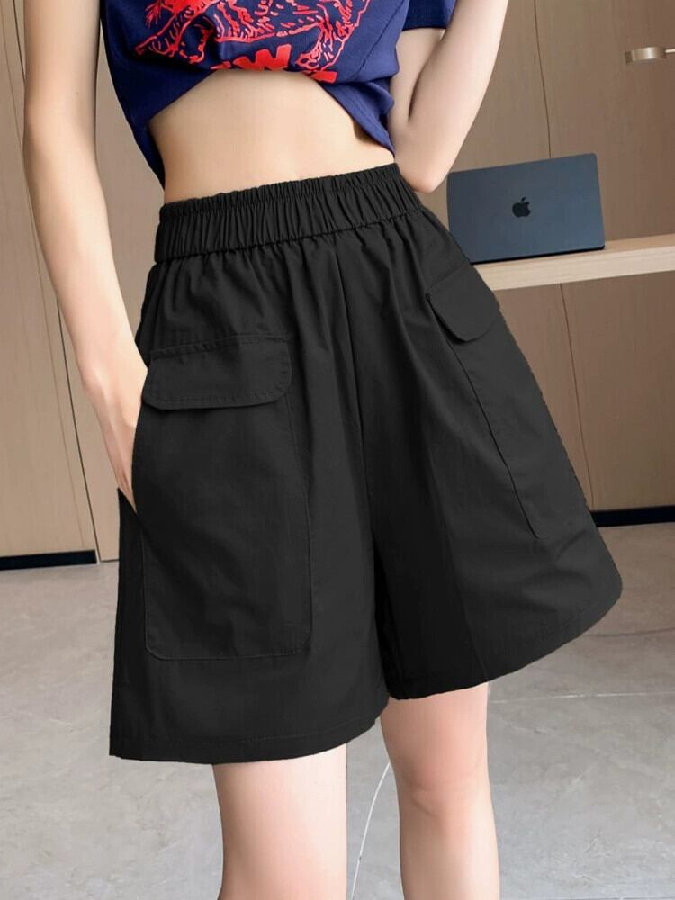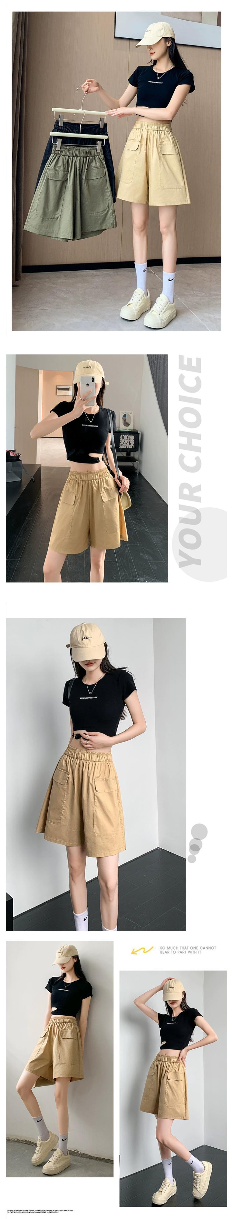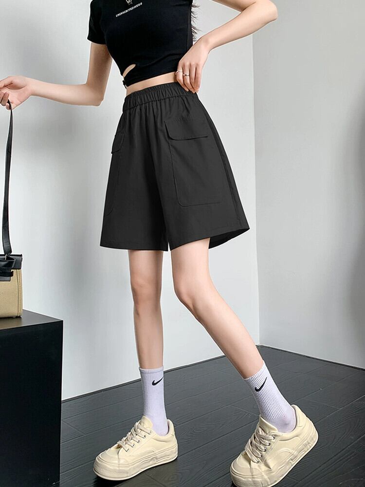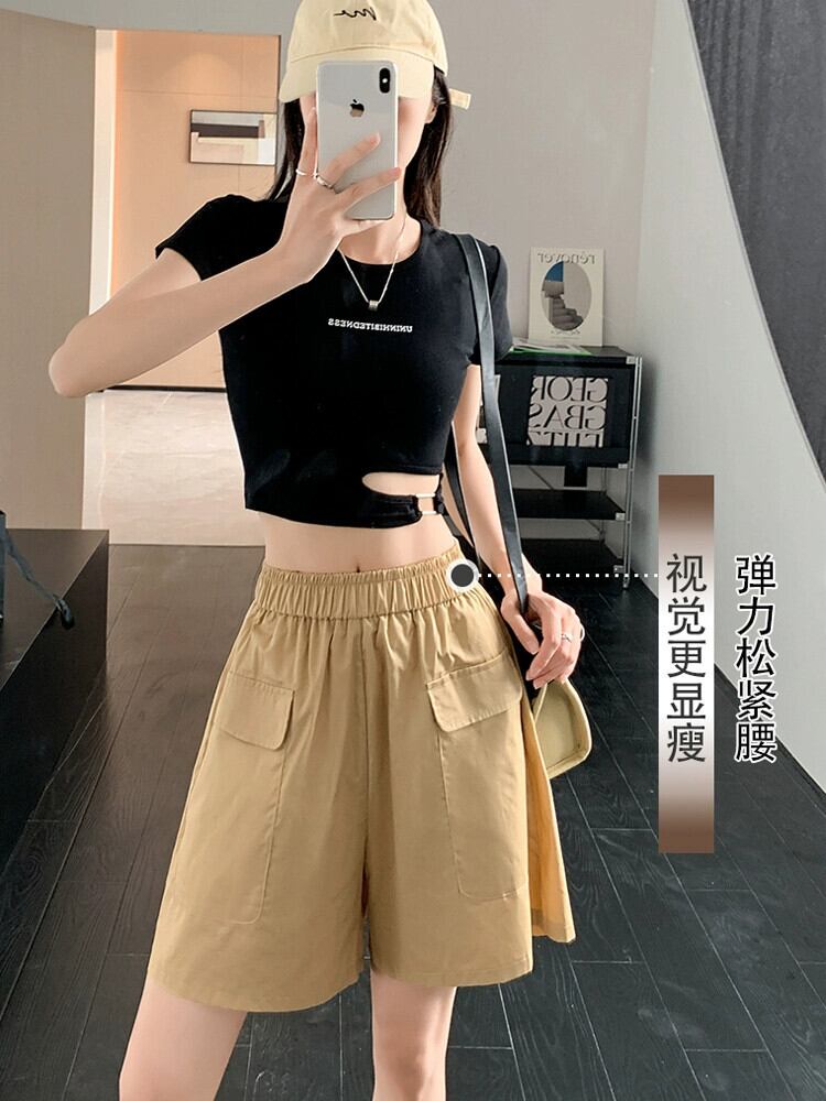 黒のオーバーオールの女性の 2023 夏の新しいデザインのゆったりとした薄手のカジュアルなハイウエスト 5 点パンツ ハイウェスト ブラック サマー 夏物 7460076148803669 | framboise21