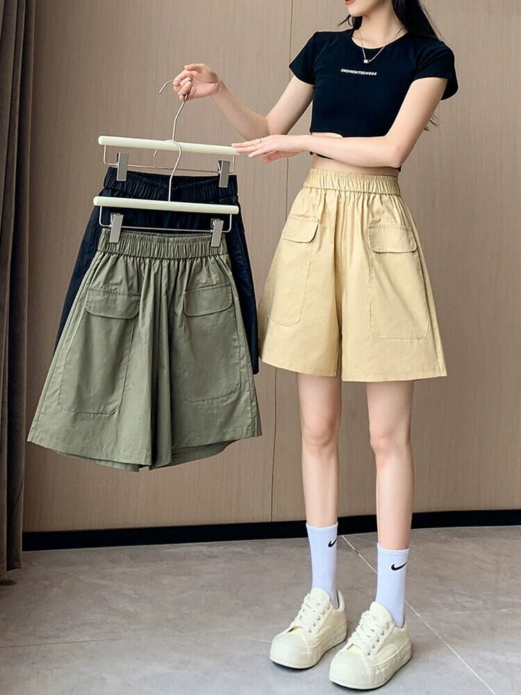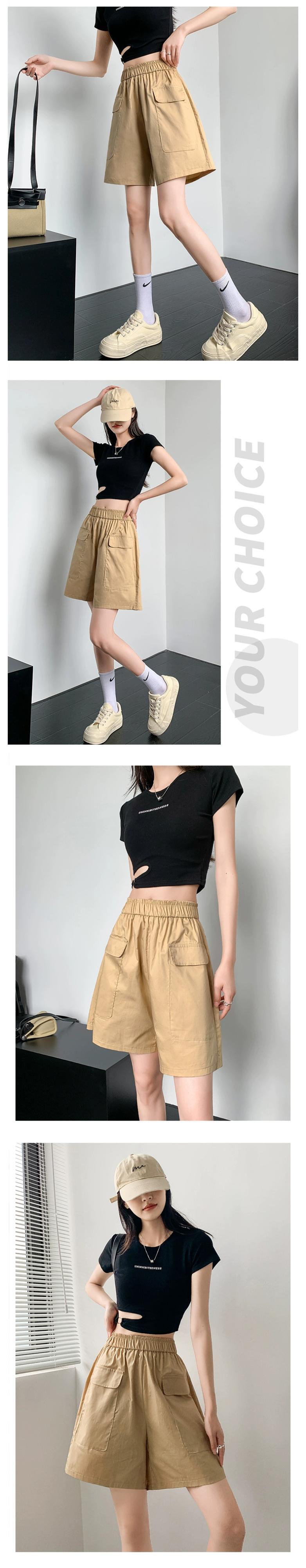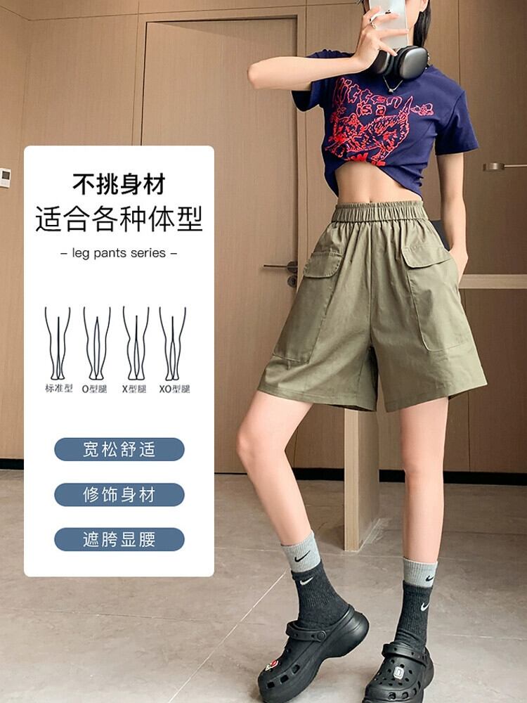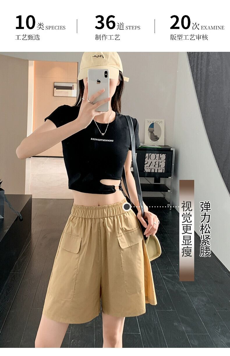 黒のオーバーオールの女性の 2023 夏の新しいデザインのゆったりとした薄手のカジュアルなハイウエスト 5 点パンツ ハイウェスト ブラック サマー 夏物 7460076148803669 | framboise21