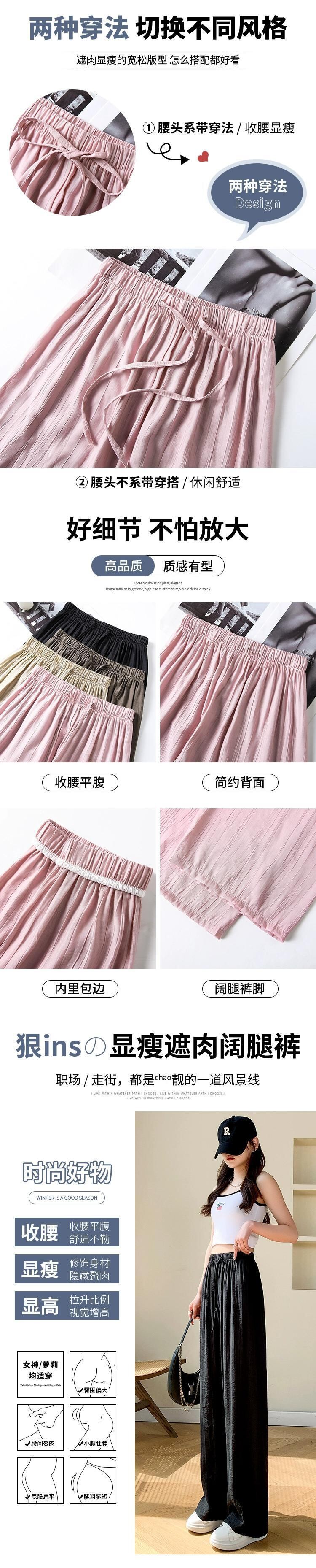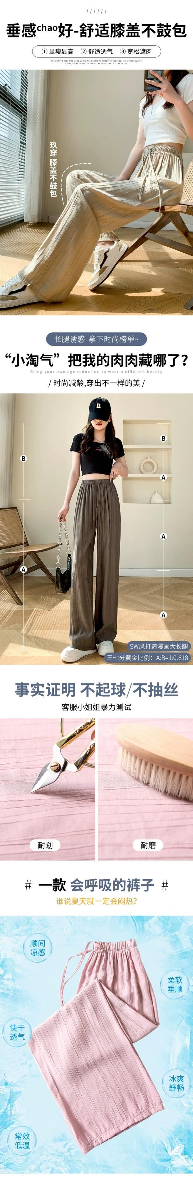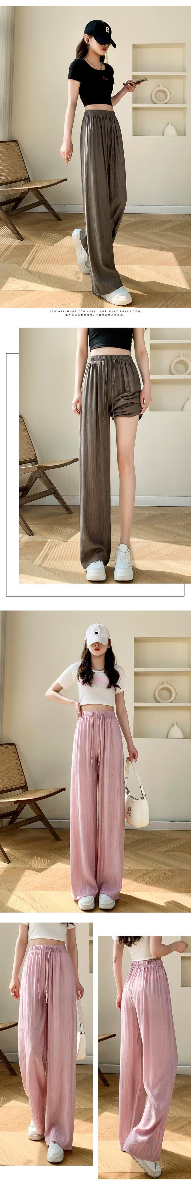 テクスチャードアイスシルクワイドレッグパンツ女性の夏薄いルーズストレートチューブカジュアルドレープ弾性ハイウエストカジュアルレディースパンツ ハイウェスト レッド エラスティック 伸縮 サマー 夏物 7460067805897307 | framboise21