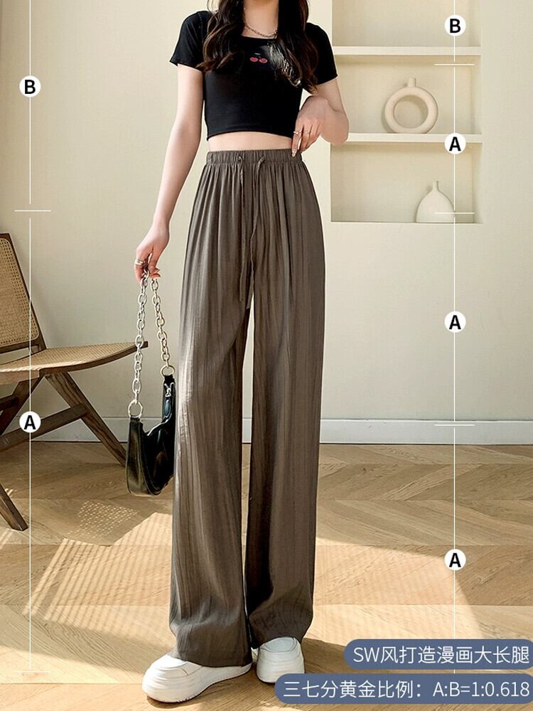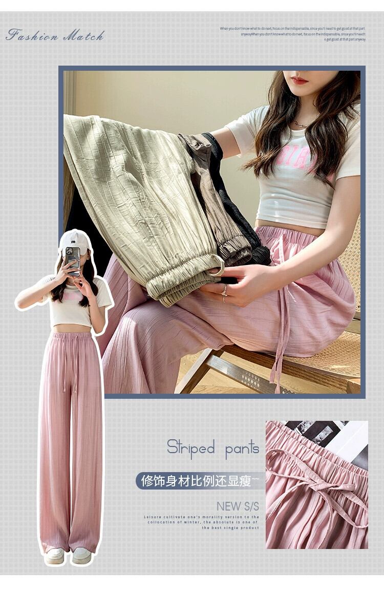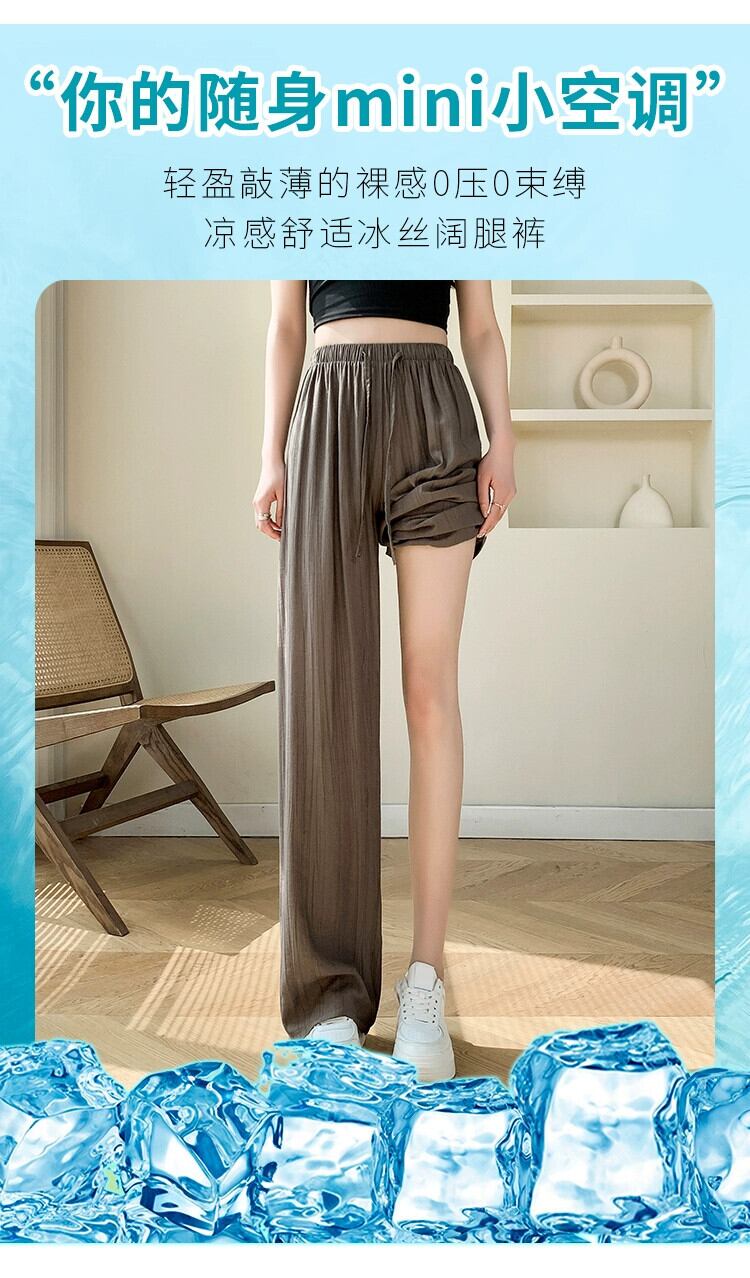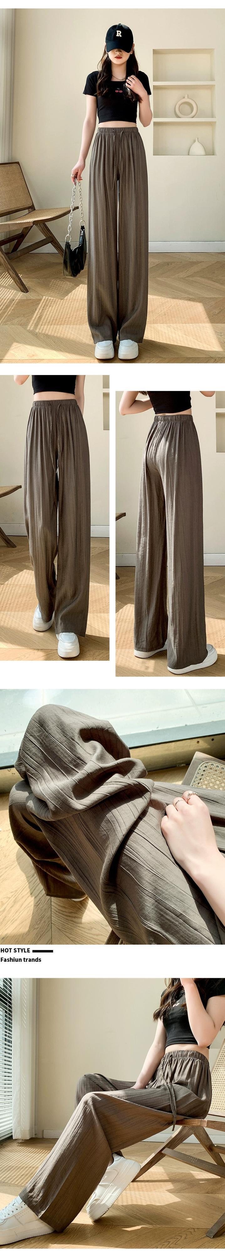 テクスチャードアイスシルクワイドレッグパンツ女性の夏薄いルーズストレートチューブカジュアルドレープ弾性ハイウエストカジュアルレディースパンツ ハイウェスト レッド エラスティック 伸縮 サマー 夏物 7460067805897307 | framboise21