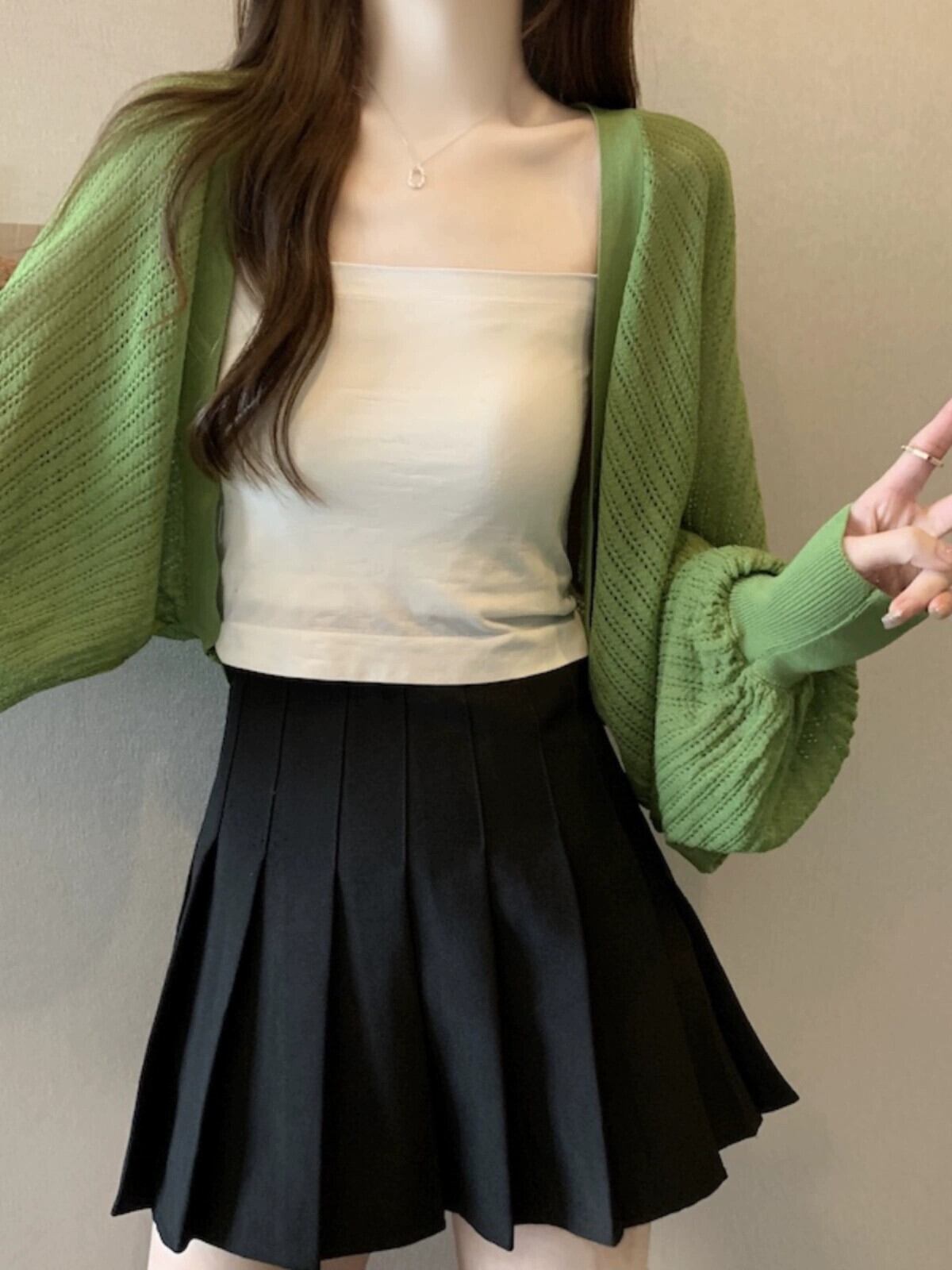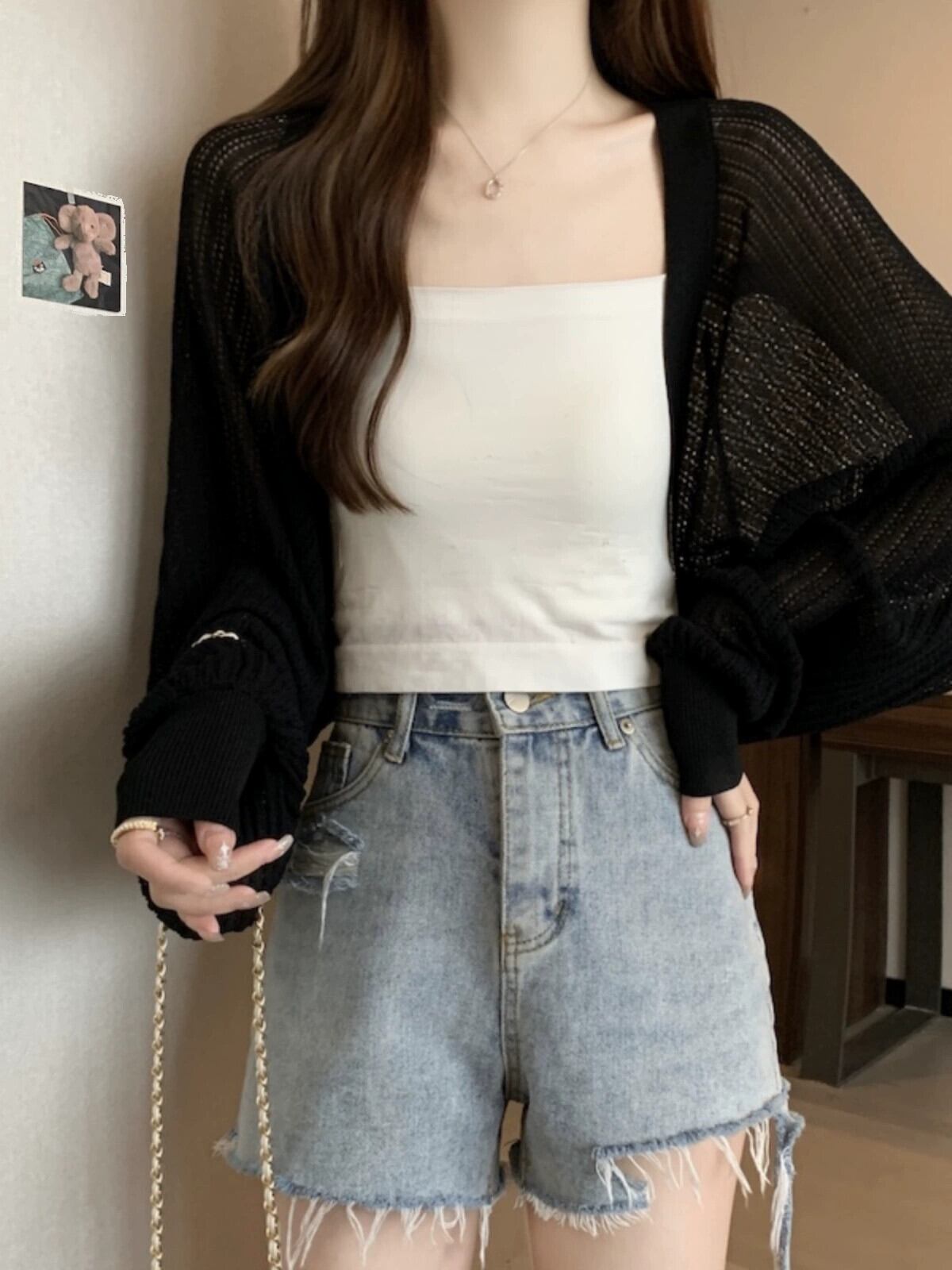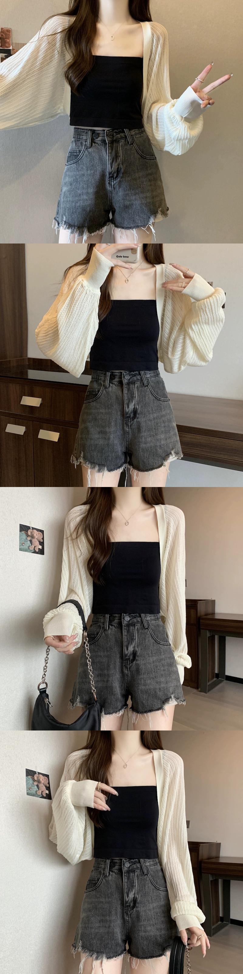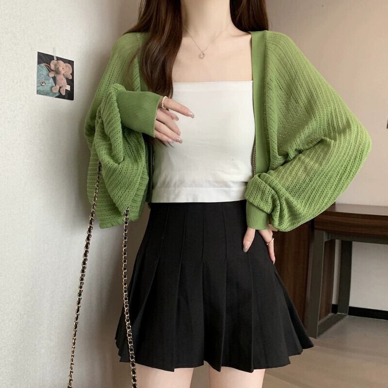 アイスシルク日焼け止めカーディガン女性の薄い夏サスペンダー小さなベストショルダーショールブラウス中空長袖ニットトップ ロング サマー 夏物 7460090673238473 | framboise21