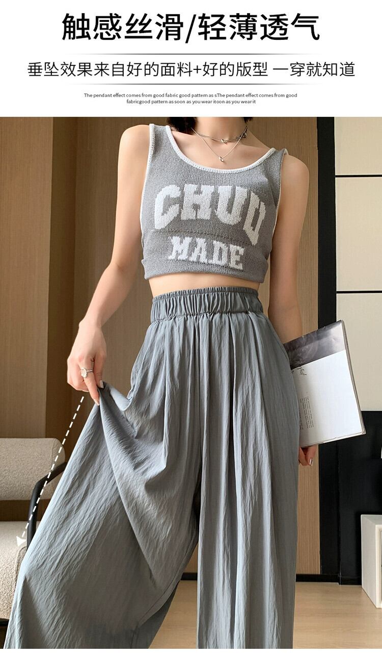 これらの綿とリネンのワイドレッグパンツ、女性の夏薄部速乾性アイスシルク日焼け止めパンツ、床を拭くルーズな小男カジュアルパンツ コットン サマー 夏物 7460013569052507 | framboise21
