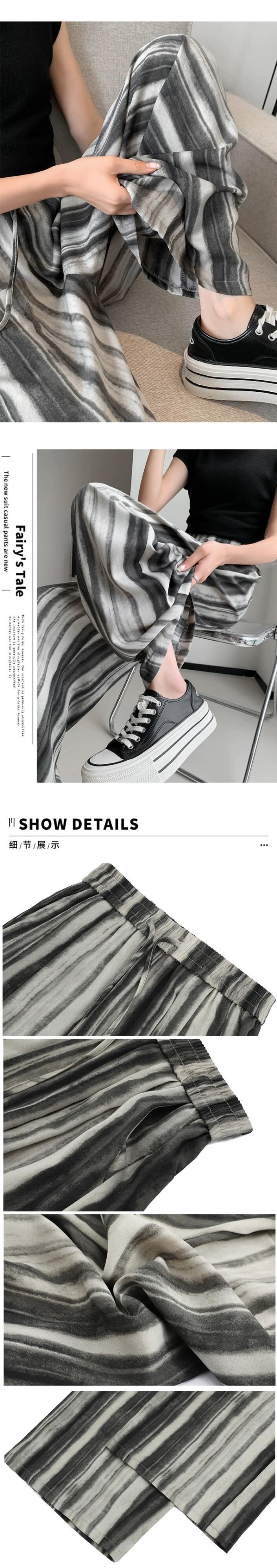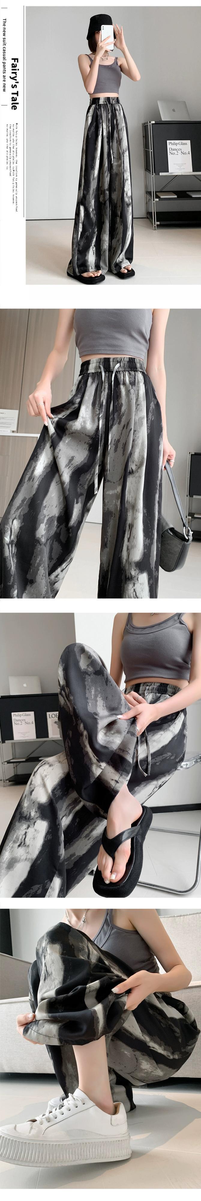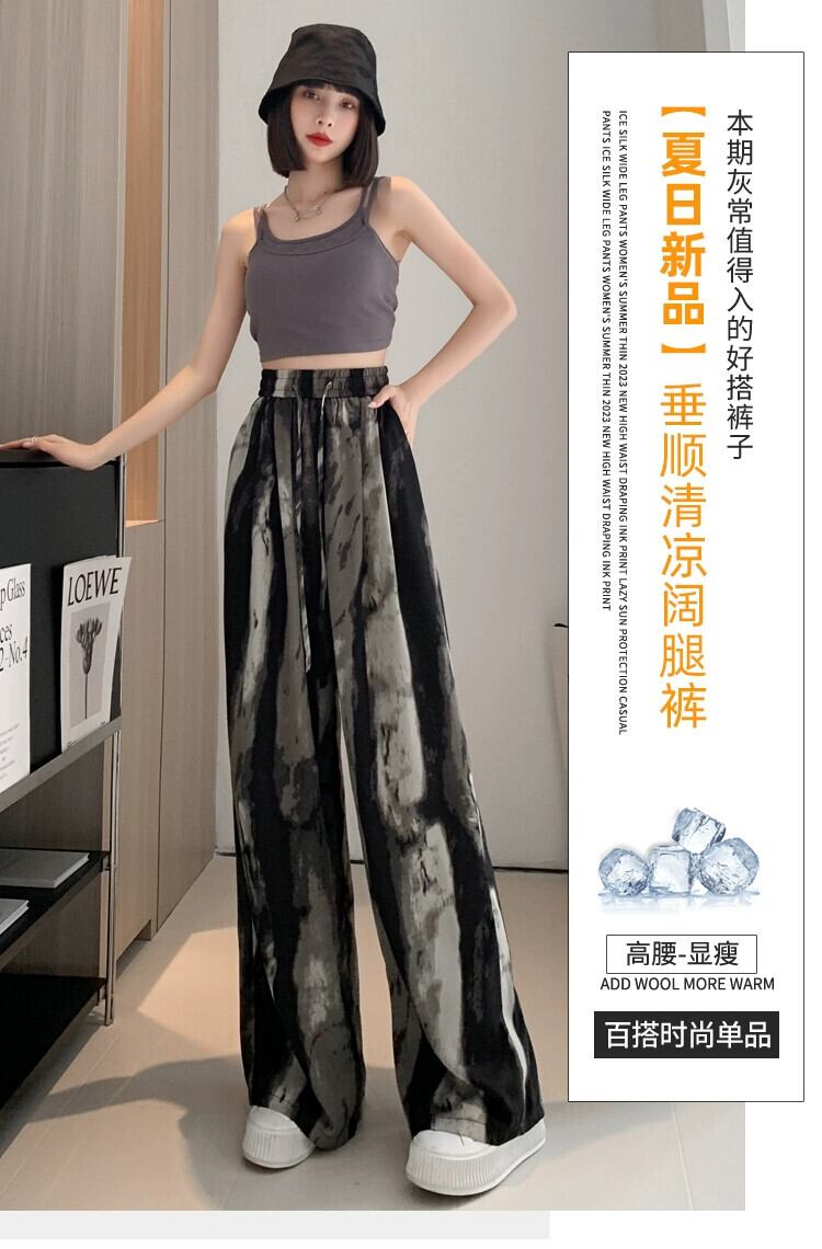 水墨画ストライプアイスシルクワイドレッグパンツ女性の薄いセクションハイウエストドレープ日焼け止めパンツルーズストレートカジュアルタイダイパンツ ハイウェスト 7460058638749805 | framboise21