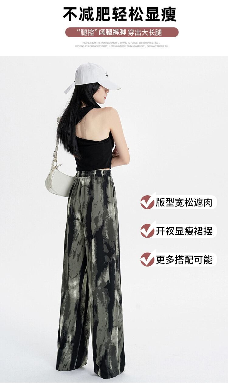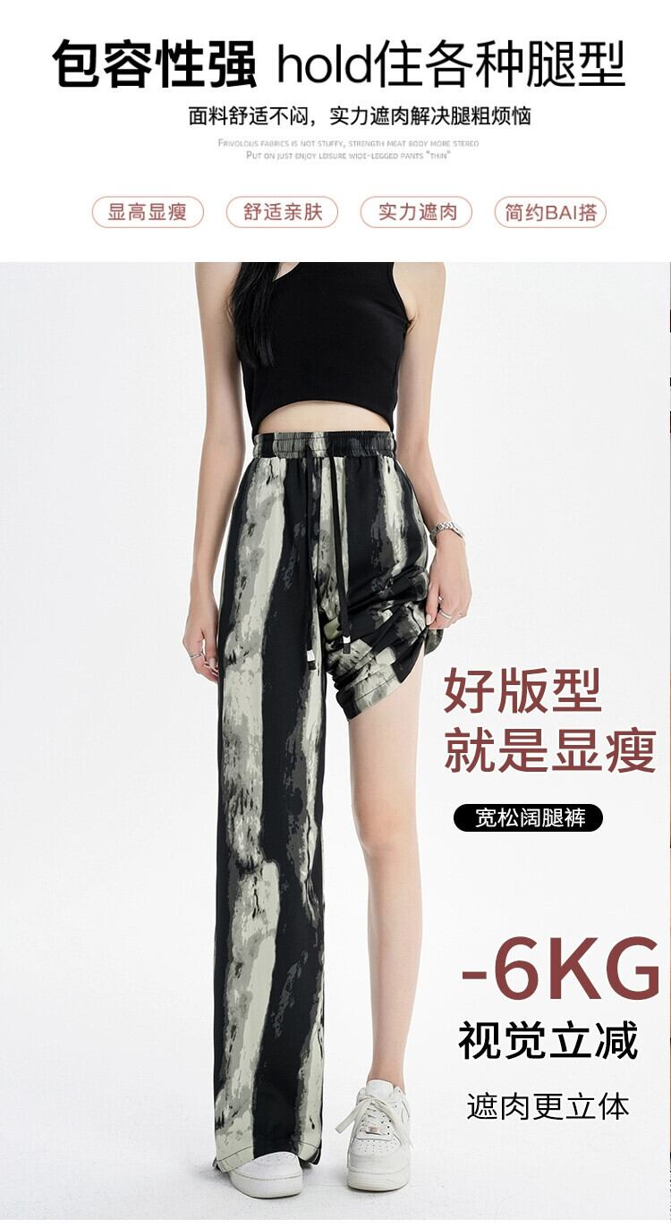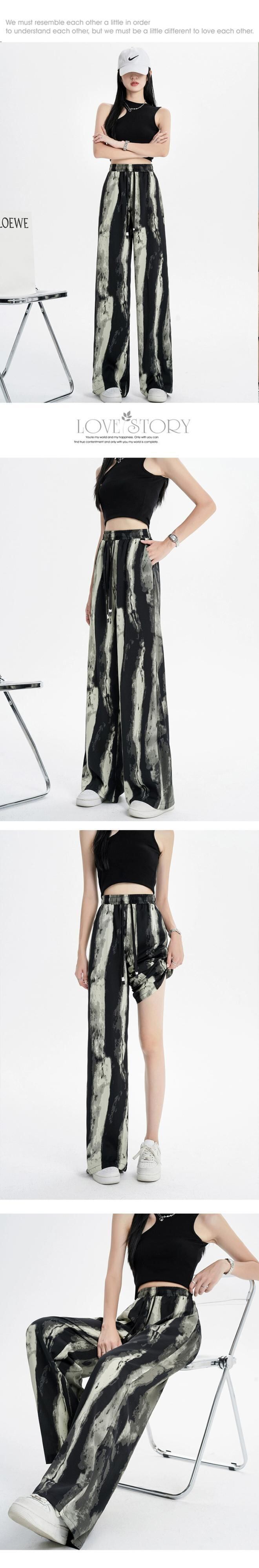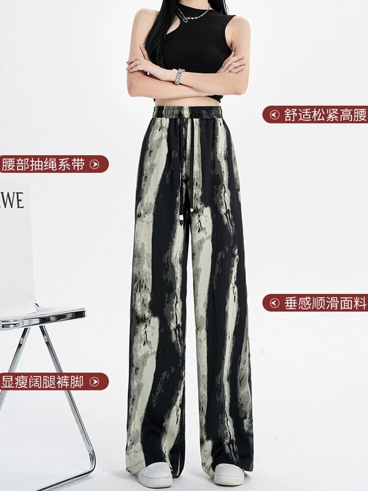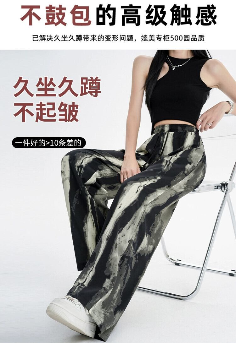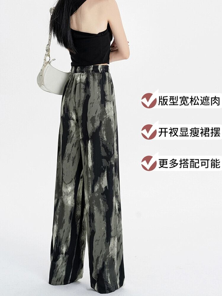 インク絞り染めアイスシルクパンツ女性の夏の薄いセクション2023新しいカジュアルストレートハイウエスト痩身ワイドレッグパンツ ハイウェスト サマー 夏物 7460088316150094 | framboise21