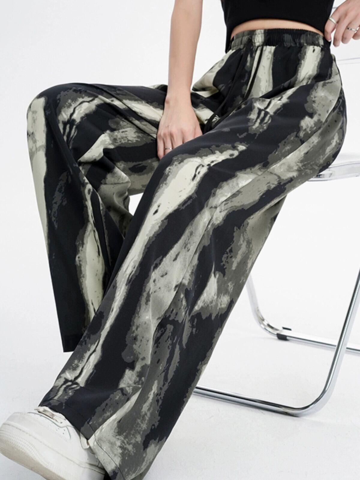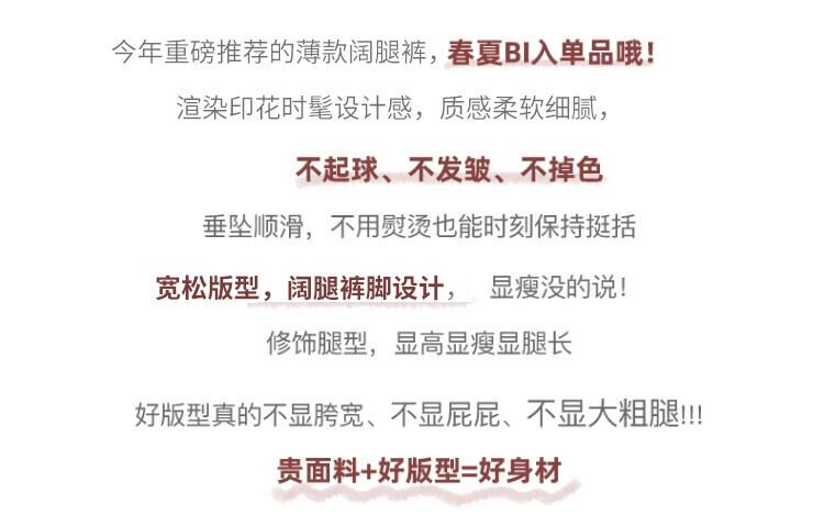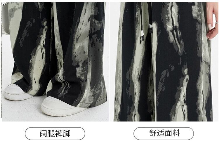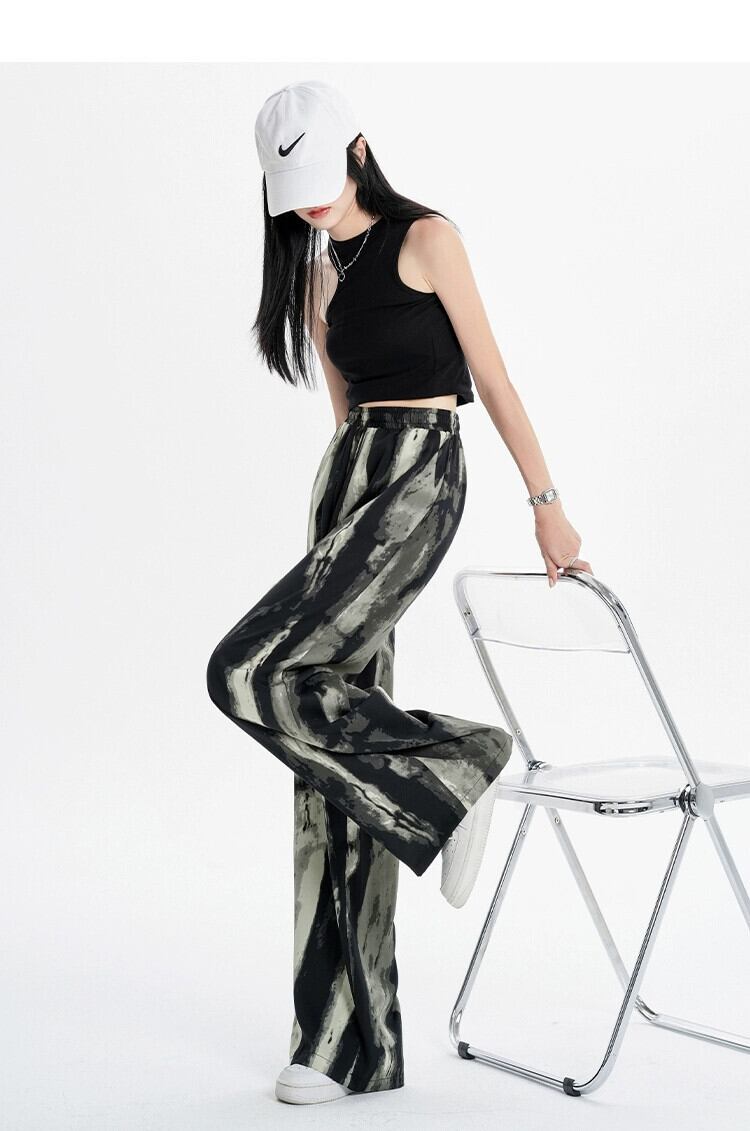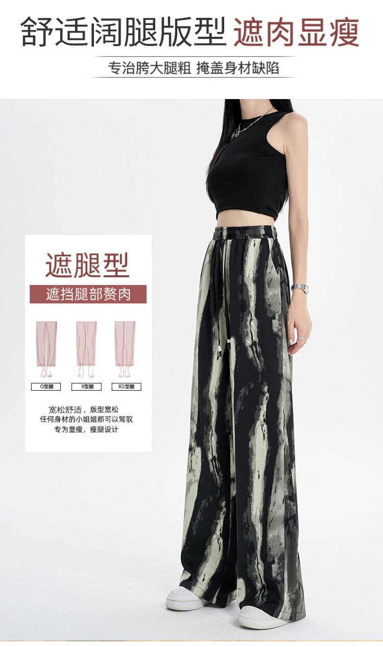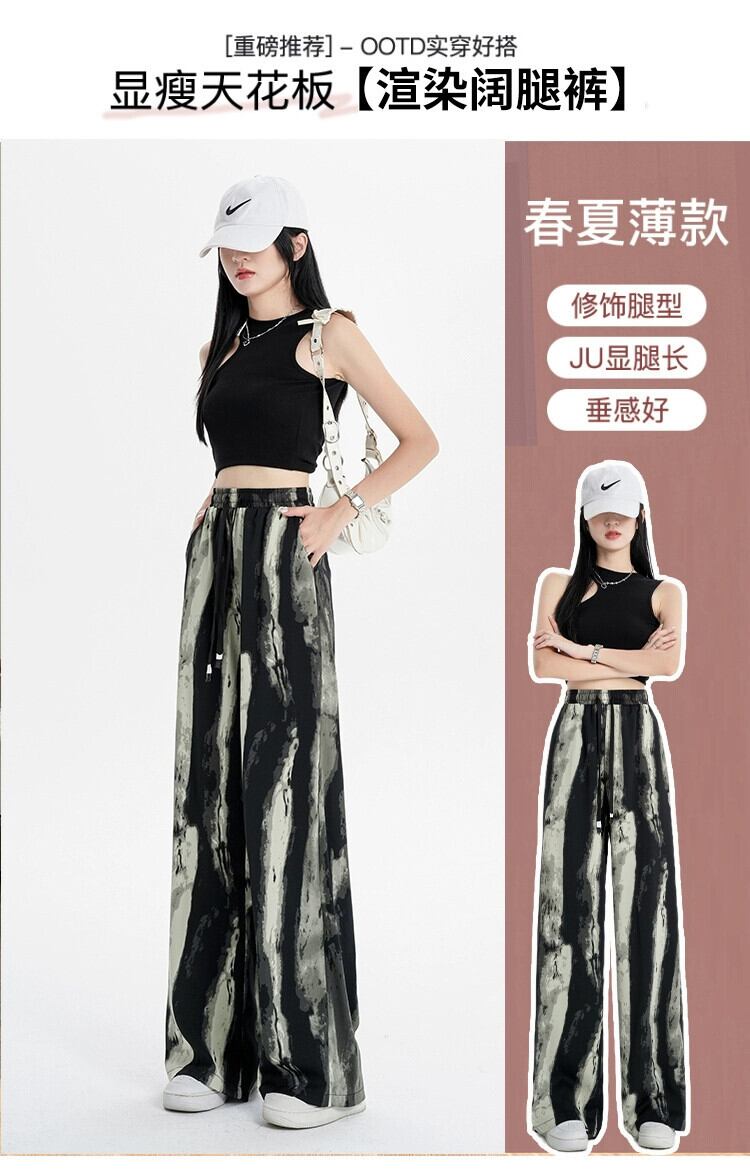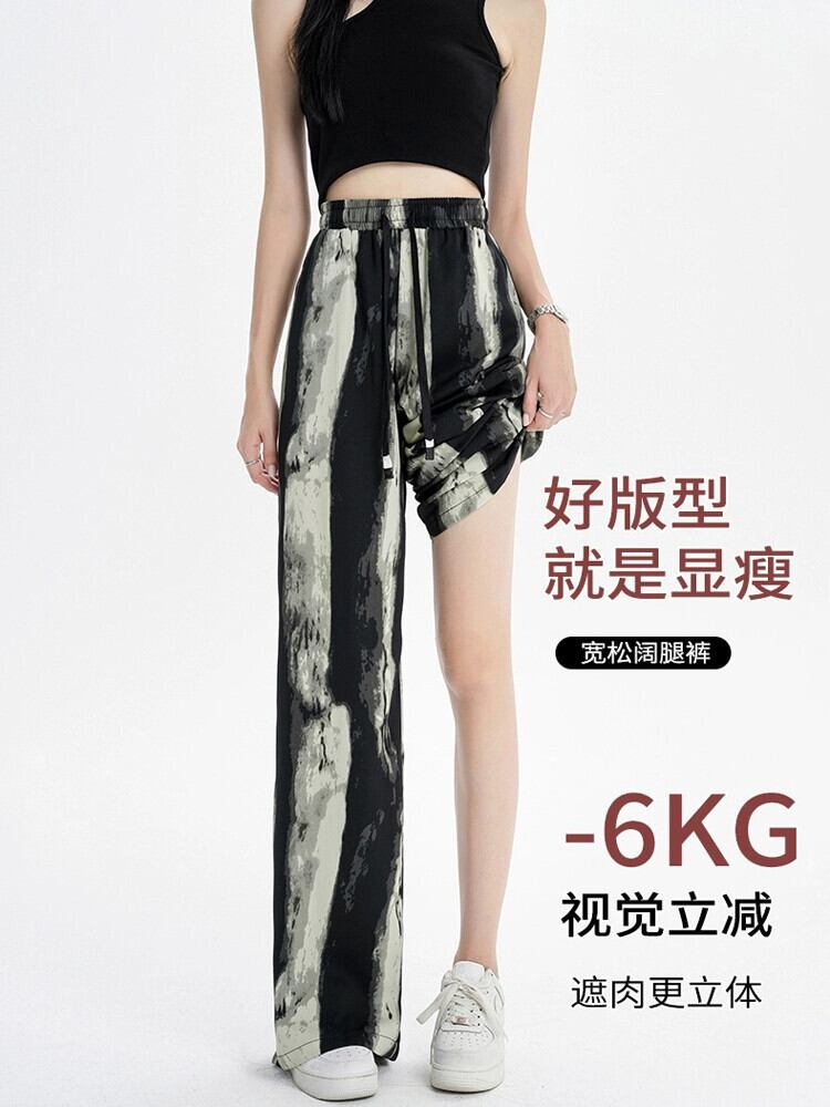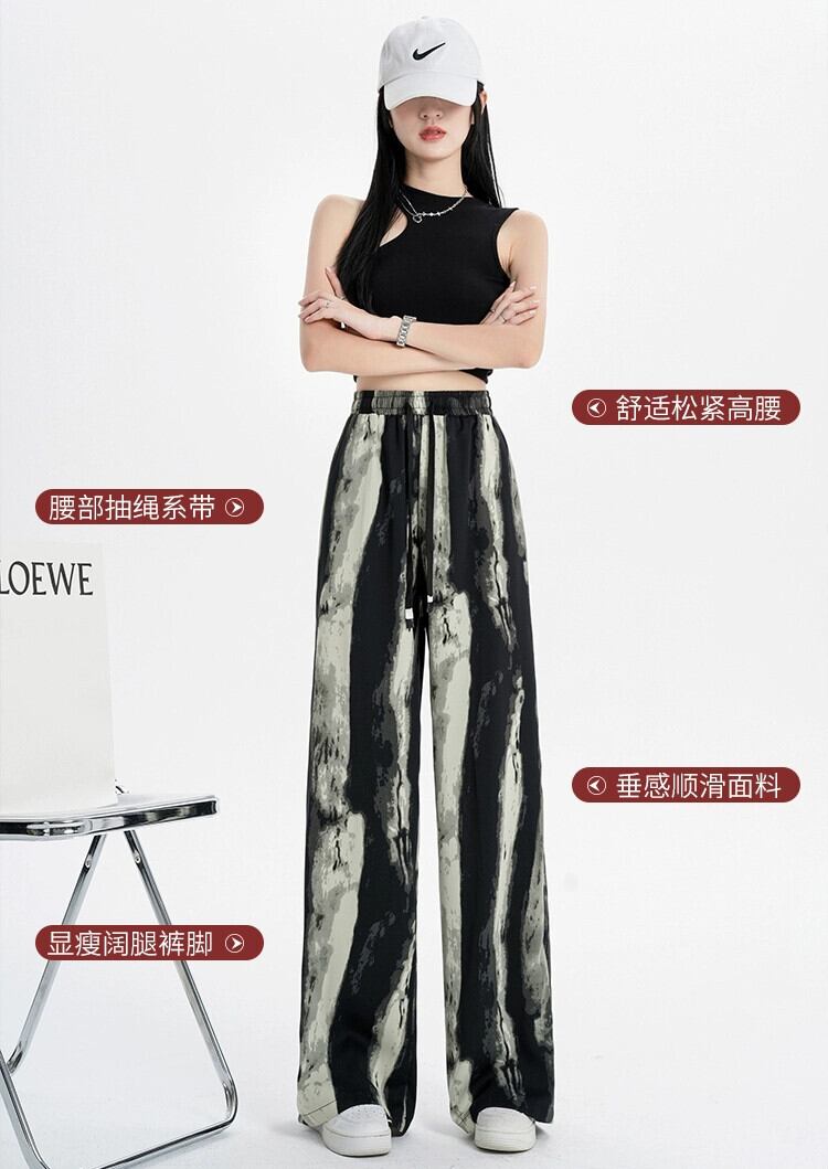 インク絞り染めアイスシルクパンツ女性の夏の薄いセクション2023新しいカジュアルストレートハイウエスト痩身ワイドレッグパンツ ハイウェスト サマー 夏物 7460088316150094 | framboise21