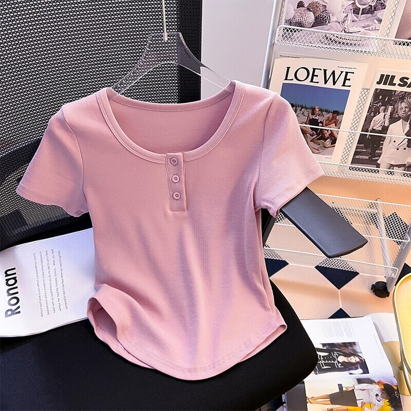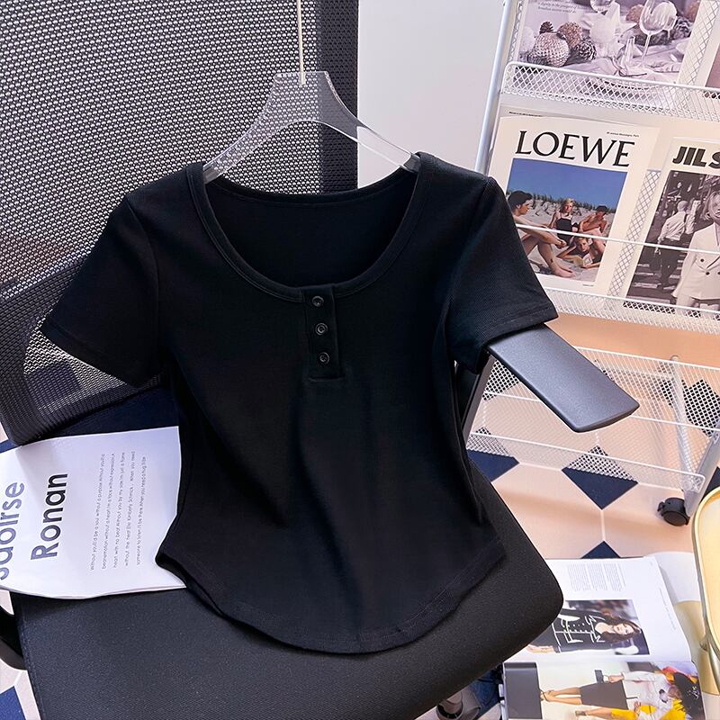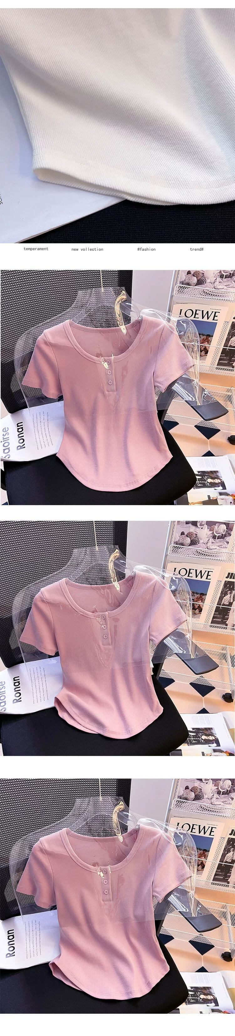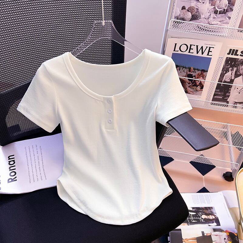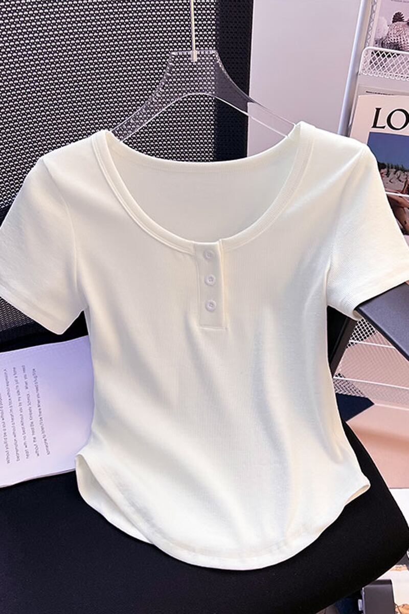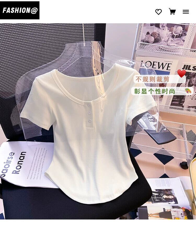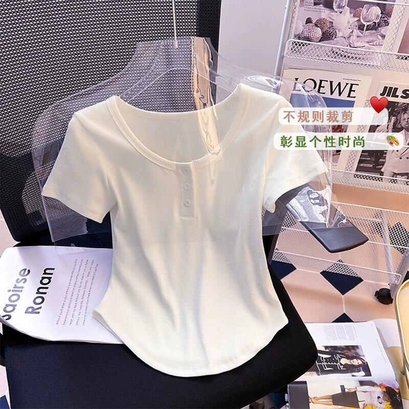 純綿フロントショルダー半袖 Tシャツレディース夏のファッションデザイン自己修養の感覚不規則なショートカーブヘムトップホワイト コットン サマー 夏物 7460073374838857 | framboise21