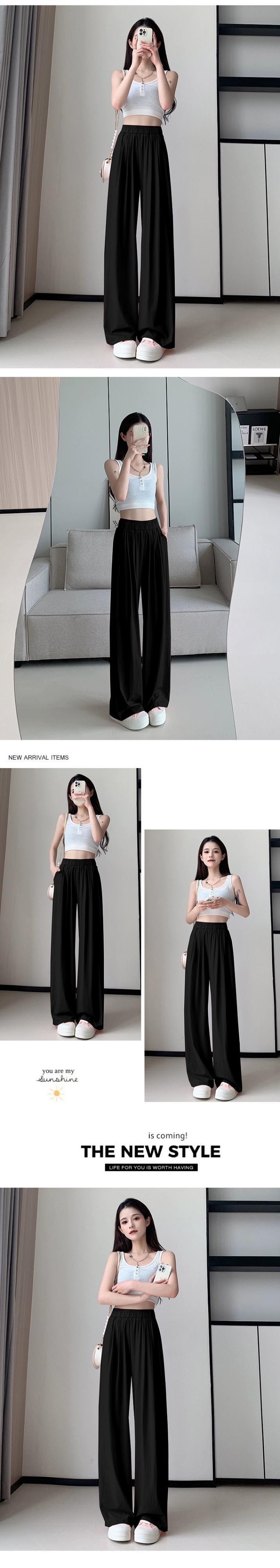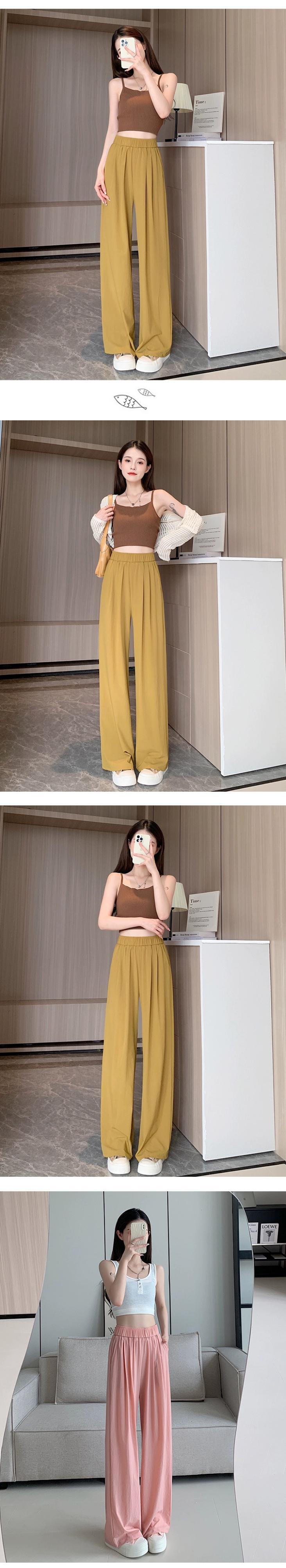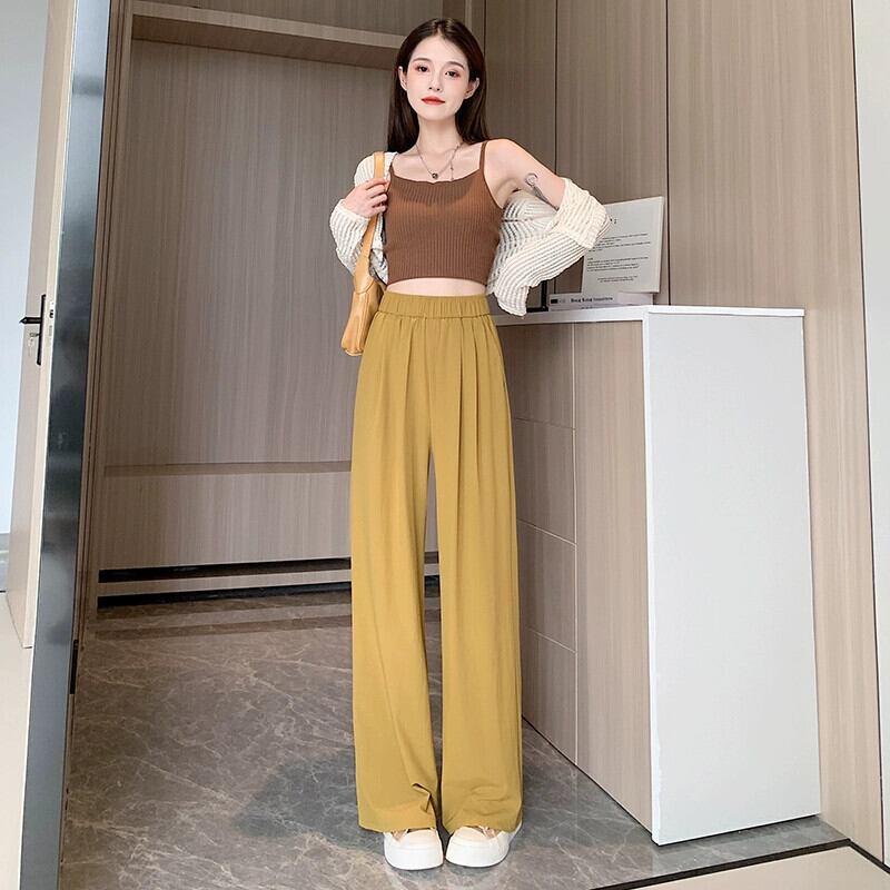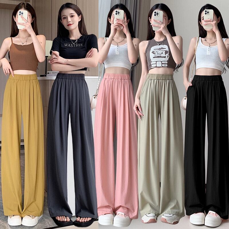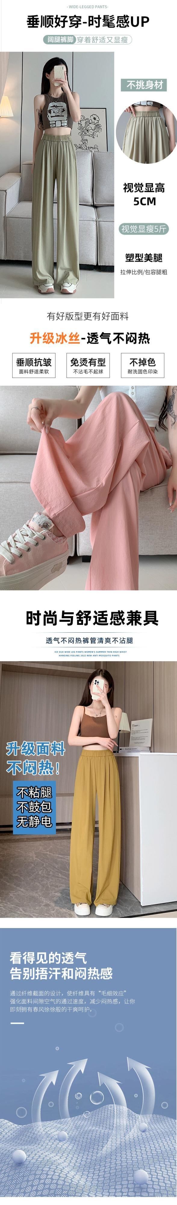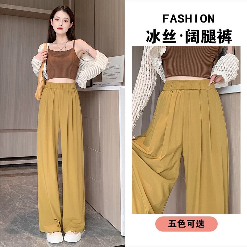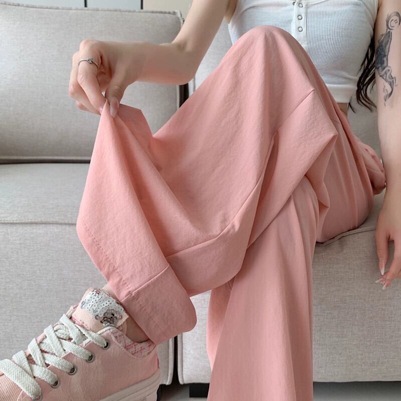 アイスシルクドレープワイドレッグパンツの狭いバージョンの女性の夏薄いセクションハイウエストストレートチューブスリムカジュアルモップピンク日焼け止めパンツ ハイウェスト サマー 夏物 7460034604376579 | framboise21