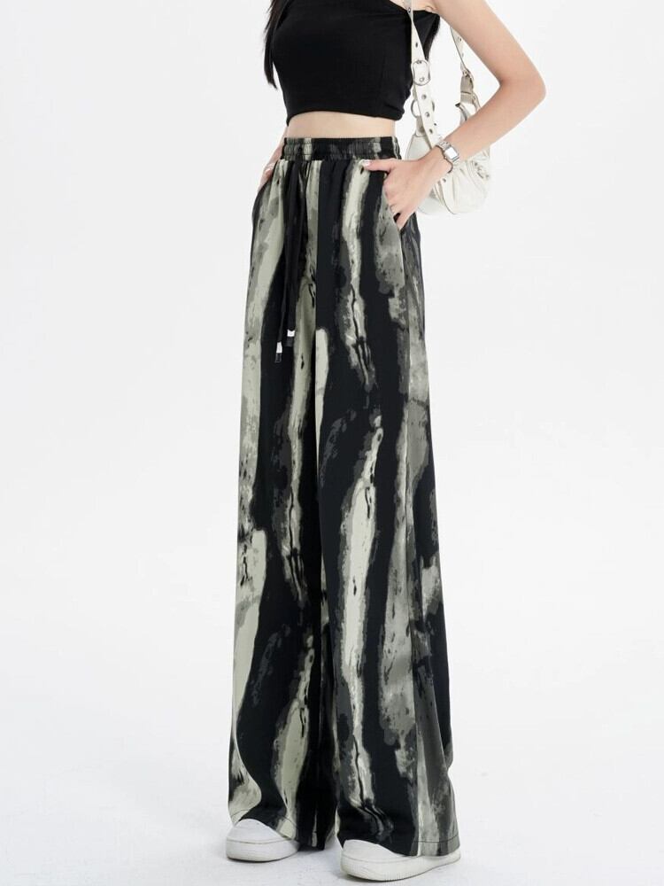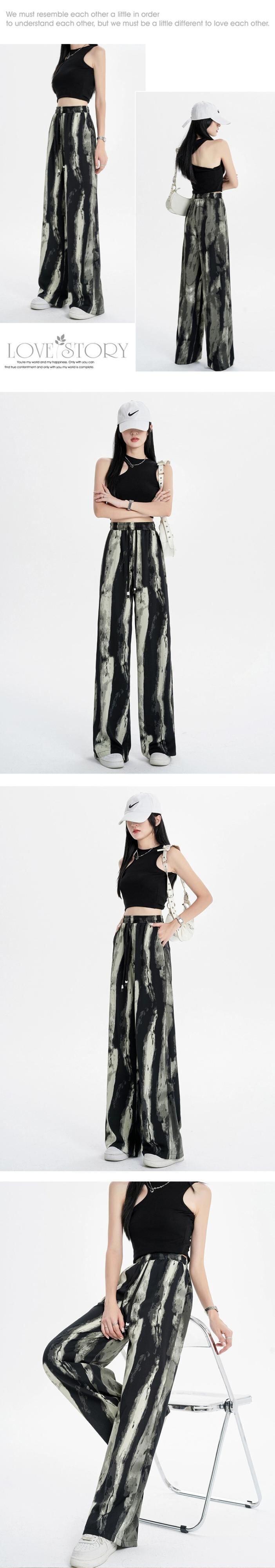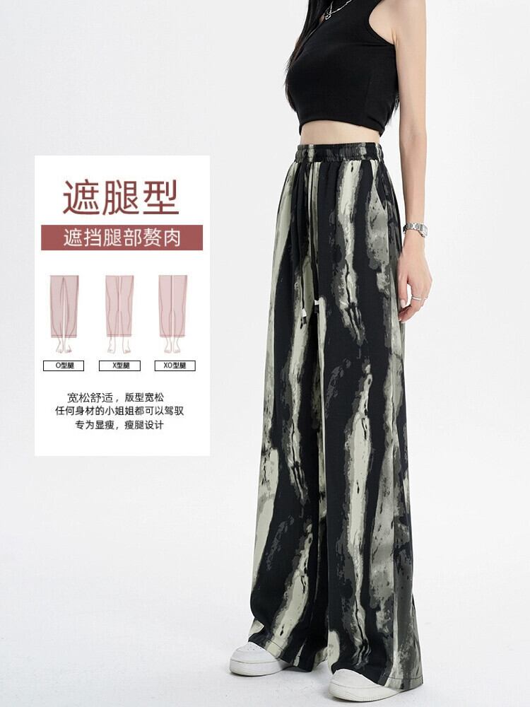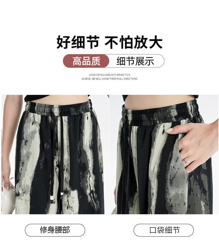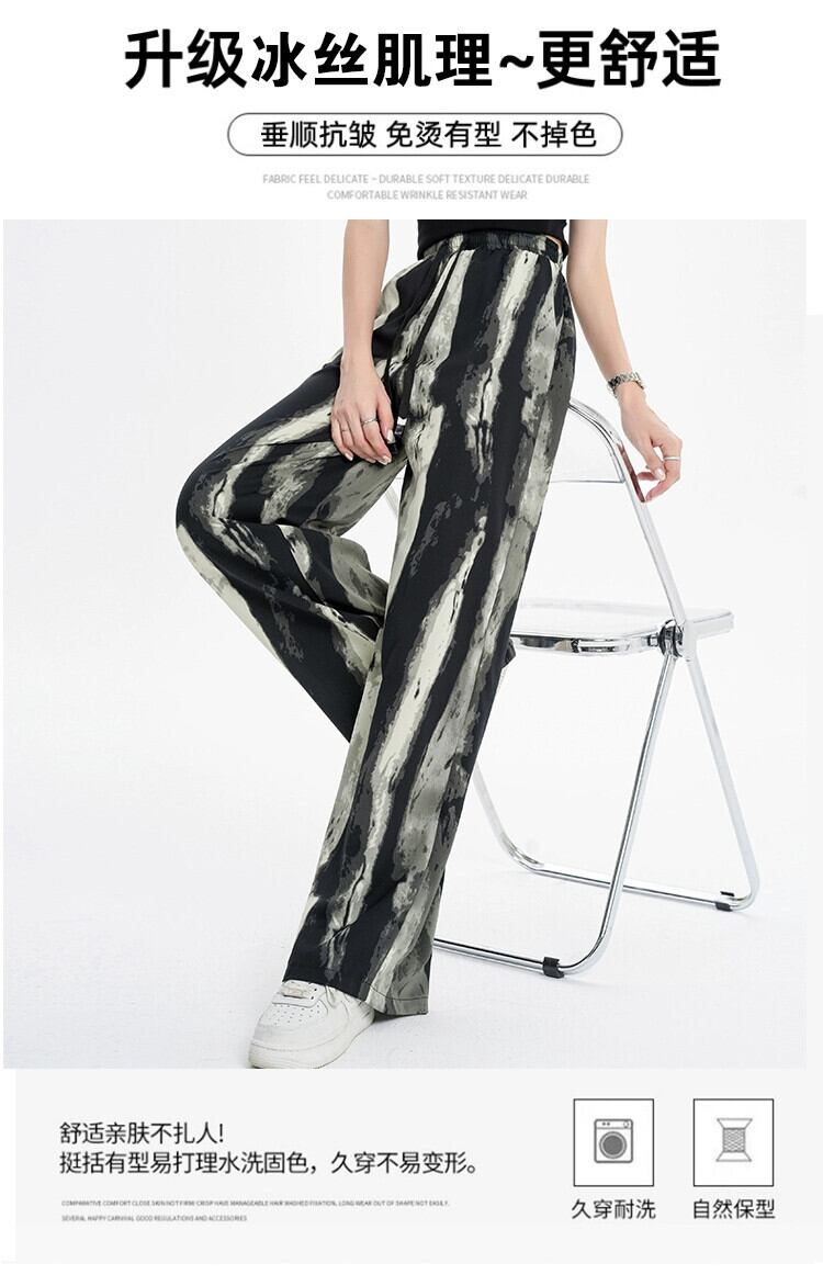 インク絞り染めアイスシルクワイドレッグパンツ女性の夏の薄いセクションハイウエストドレープパンツルーズストレートレッグモップカジュアルパンツ ハイウェスト サマー 夏物 7460087418345525 | framboise21