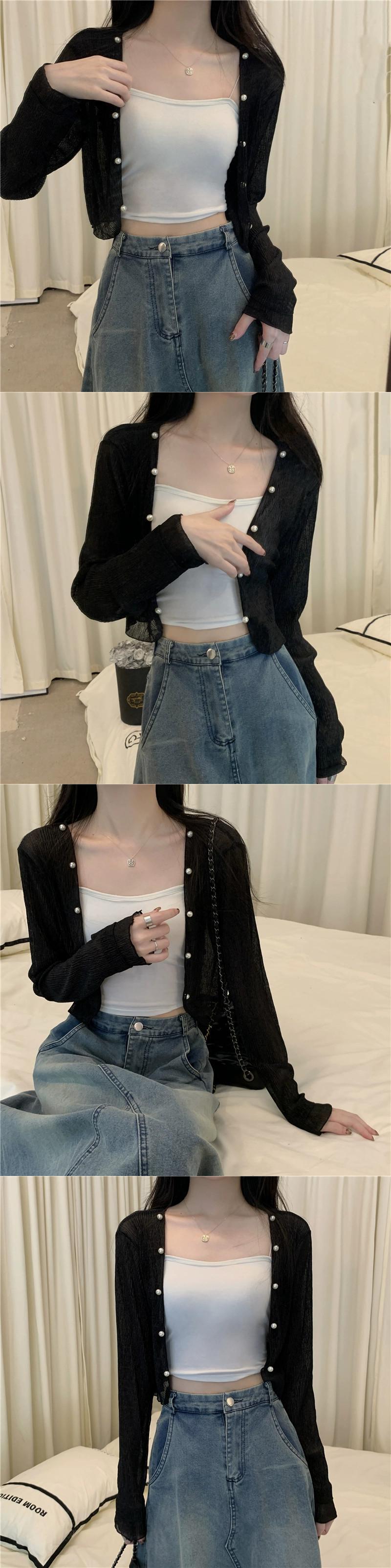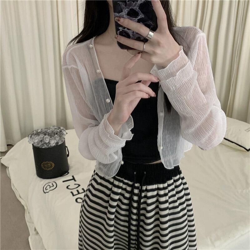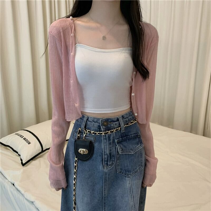 薄手の日焼け止めショールカーディガンレディース夏ゆったりサスペンダースカート付き小さなベスト付き肩ブラウスシースルーショートトップ サマー 夏物 746004357282893 | framboise21