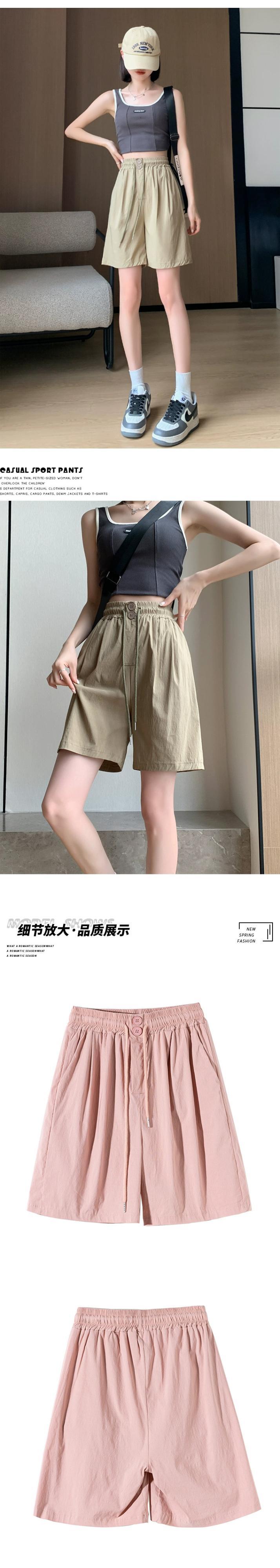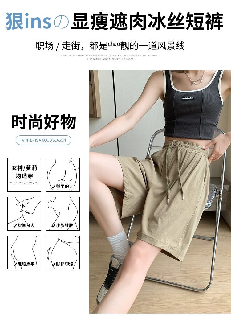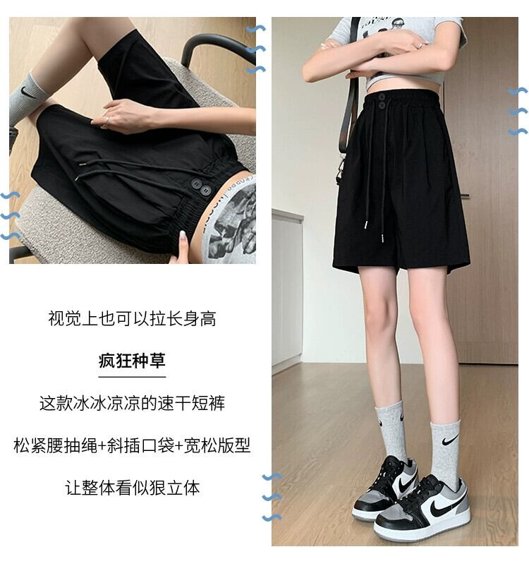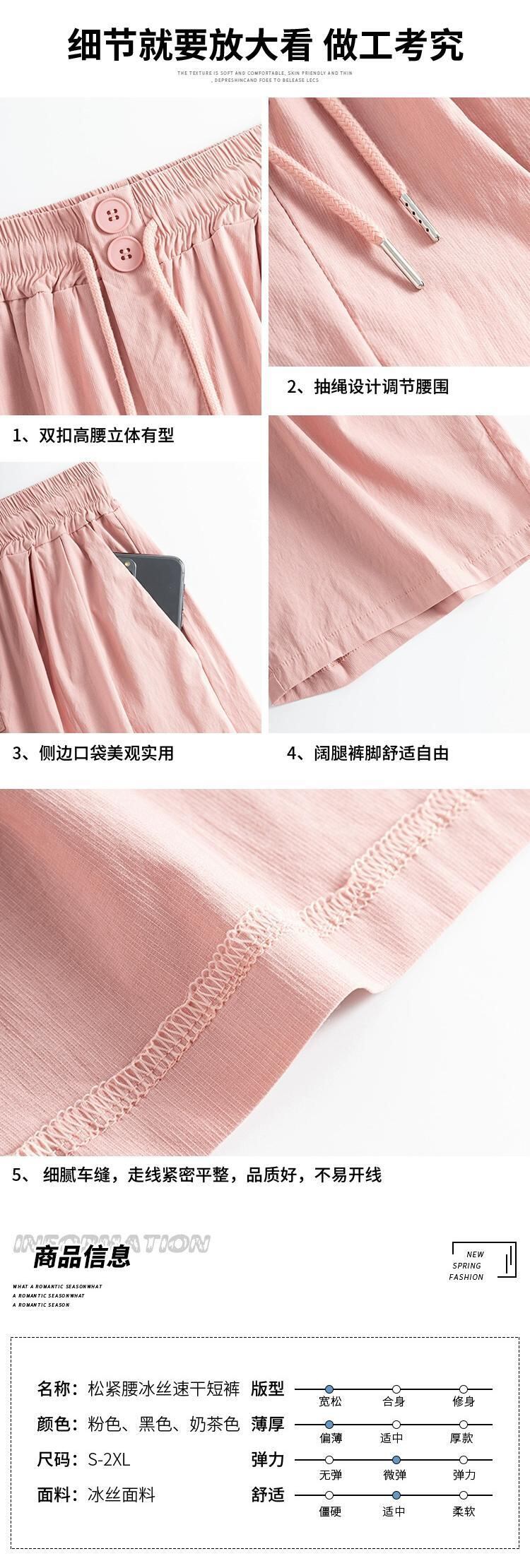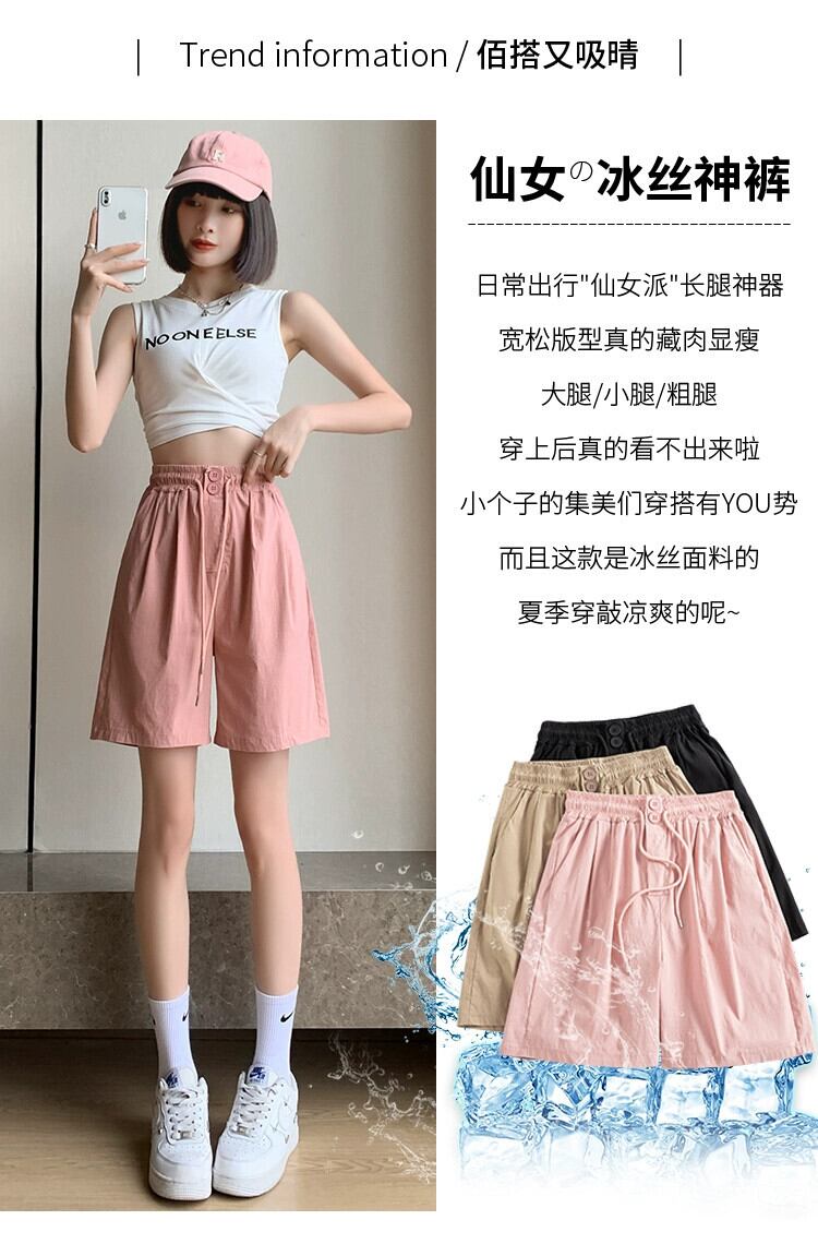 弾性ウエスト巾着アイスシルク速乾性ショートパンツ女性の夏薄いルーズストレートハイウエストカジュアルワイドレッグブラックパンツ ハイウェスト エラスティック 伸縮 サマー 夏物 ショーツ ブルマー 7460088408811616 | framboise21