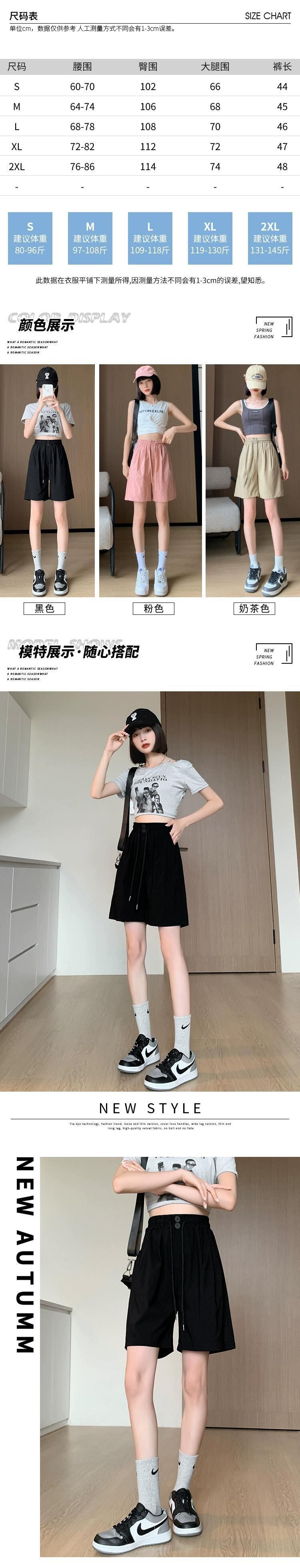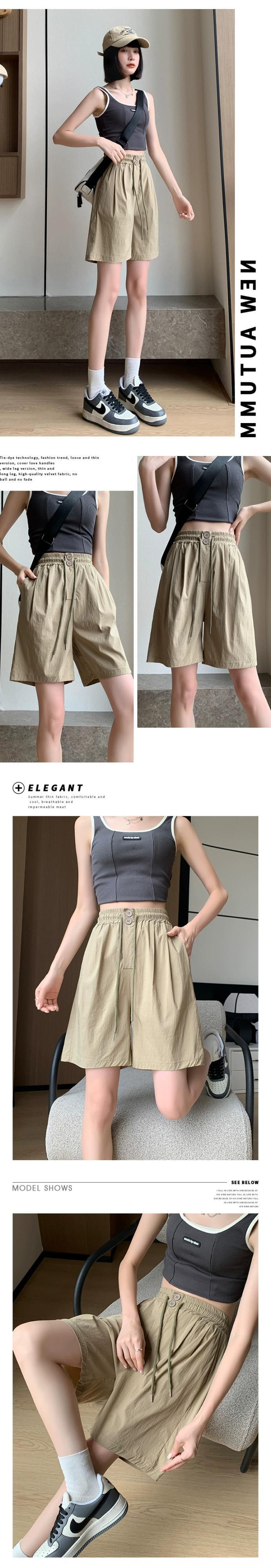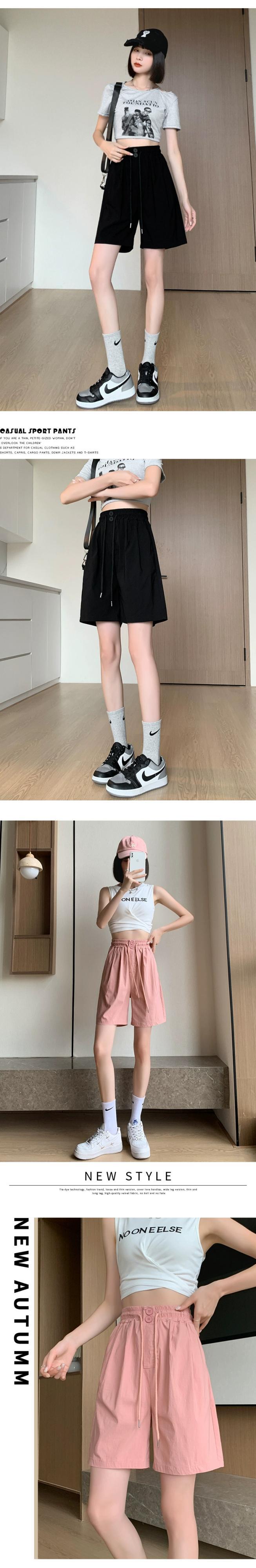 弾性ウエスト巾着アイスシルク速乾性ショートパンツ女性の夏薄いルーズストレートハイウエストカジュアルワイドレッグブラックパンツ ハイウェスト エラスティック 伸縮 サマー 夏物 ショーツ ブルマー 7460088408811616 | framboise21