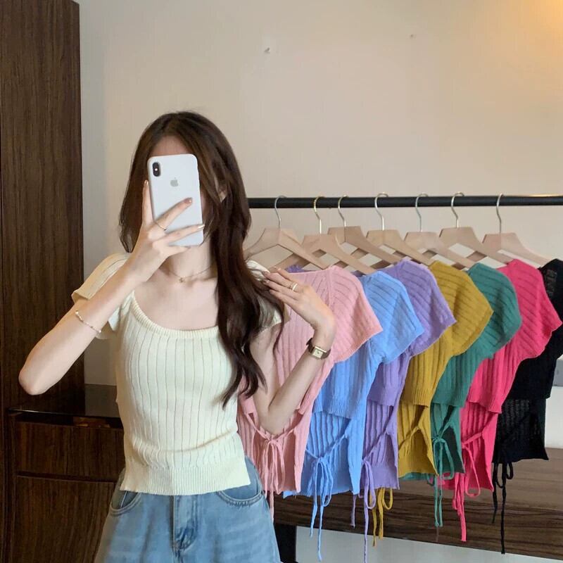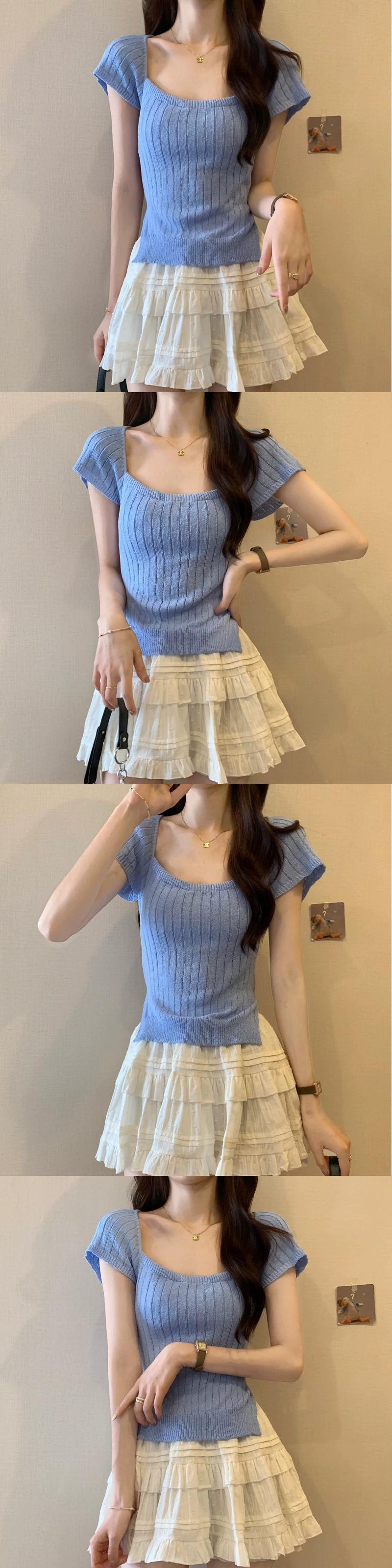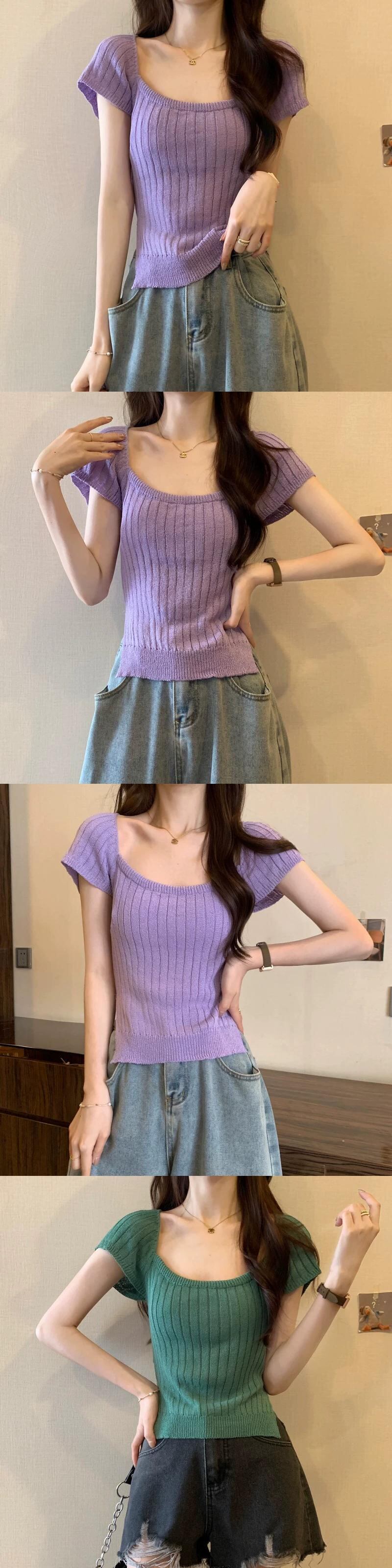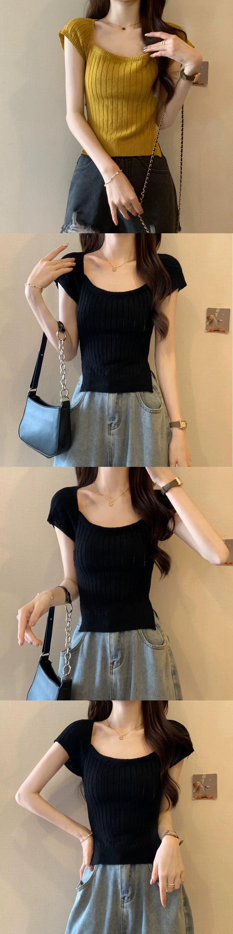 バックストラップストラップレス半袖Tシャツレディース夏デザインファッションスリム薄肉ニットスクエアカラーショートトップ サマー 夏物 スクウェア 7460083692432380 | framboise21