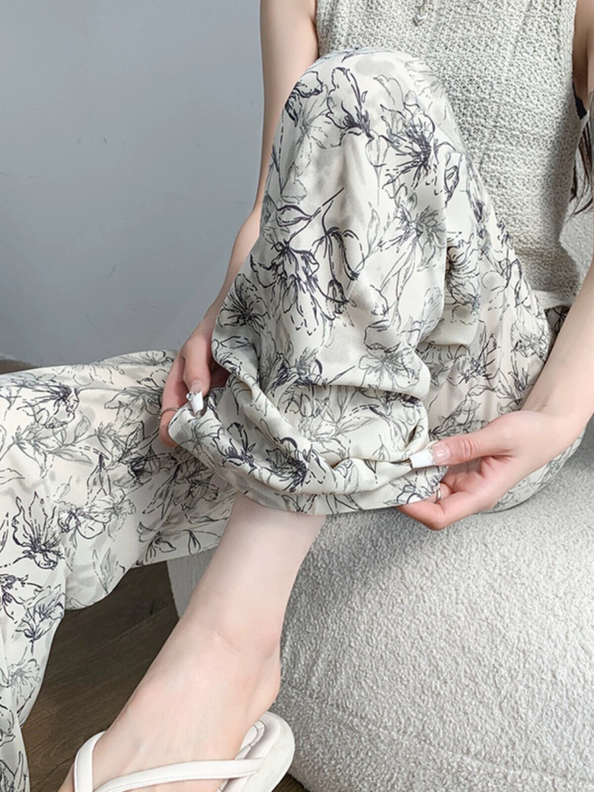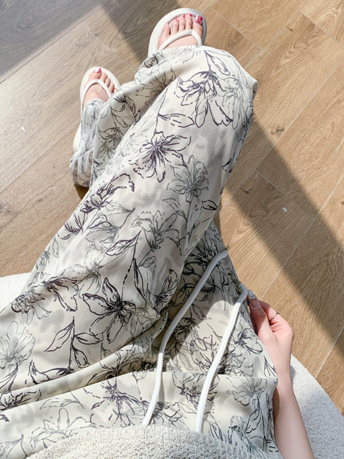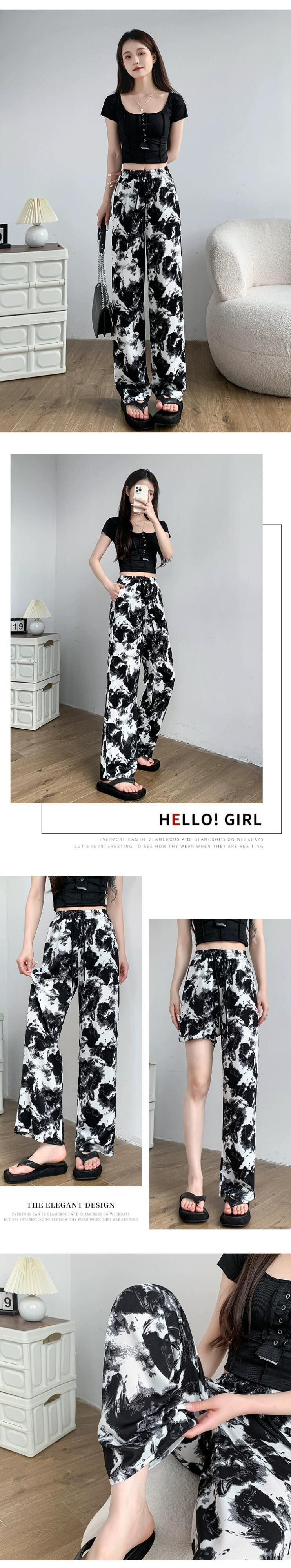 水墨画アイスシルクシフォンワイドレッグパンツレディース夏薄部カジュアルストレートタイダイパンツドレープハイウエストモップパンツ ハイウェスト サマー 夏物 7460059064898959 | framboise21