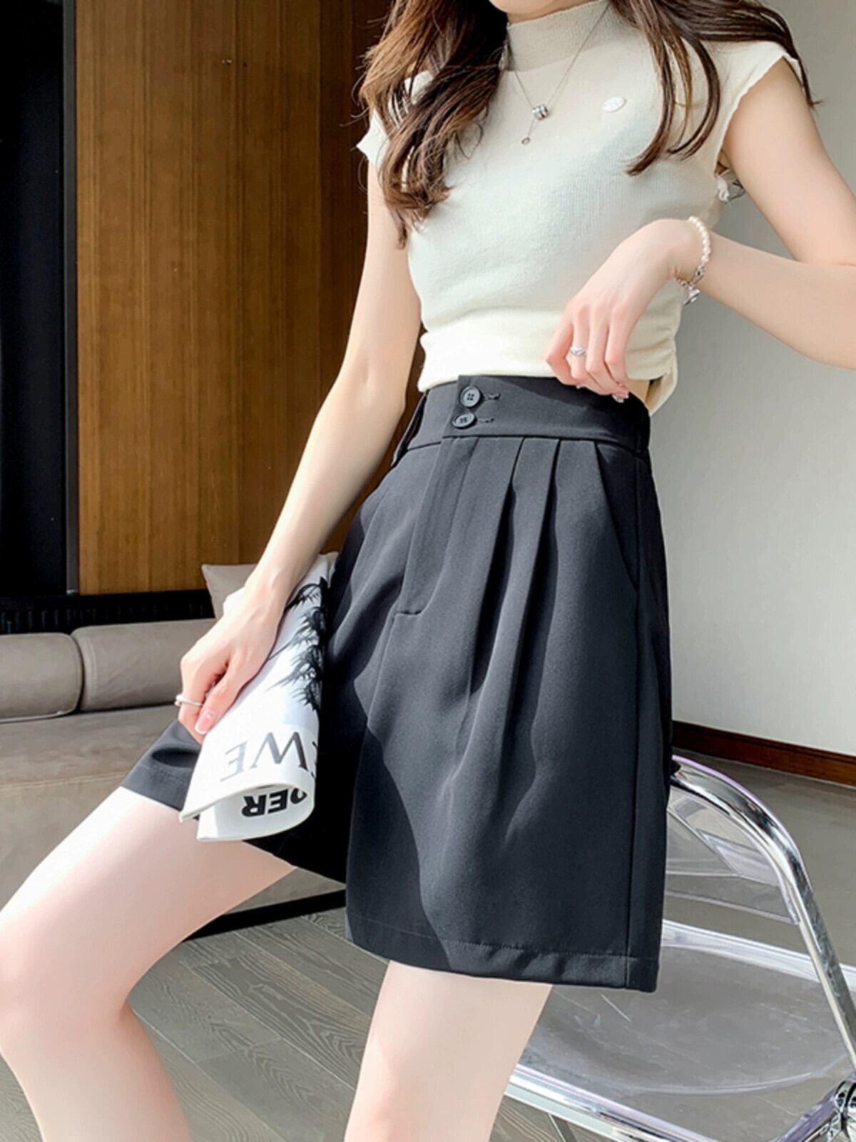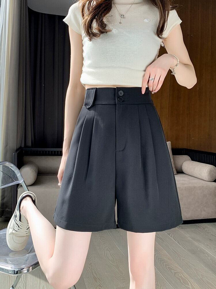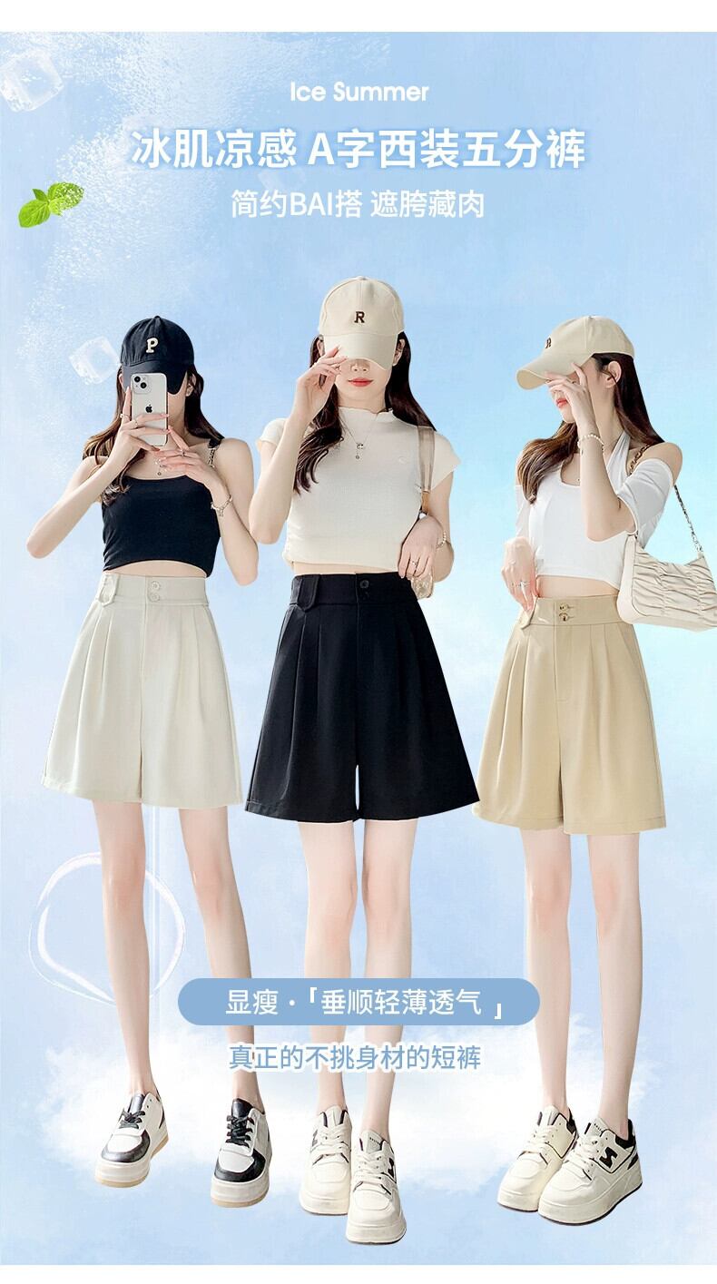 薄い 5 点スーツ ショーツ レディース 夏 カジュアル ブラック ストレート アイス シルク パンツ ルーズ スリム ハイウエスト ワイドレッグ ミッド パンツ ハイウェスト サマー 夏物 ブルマー 746004582682944 | framboise21