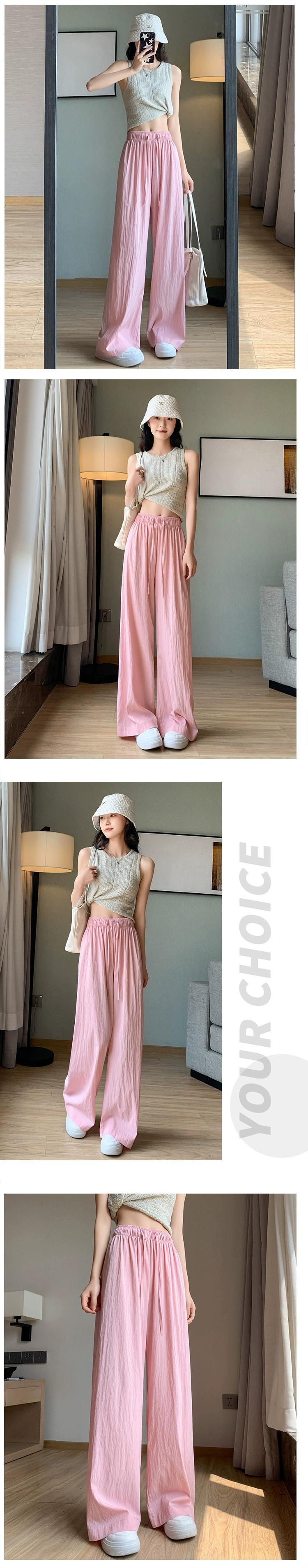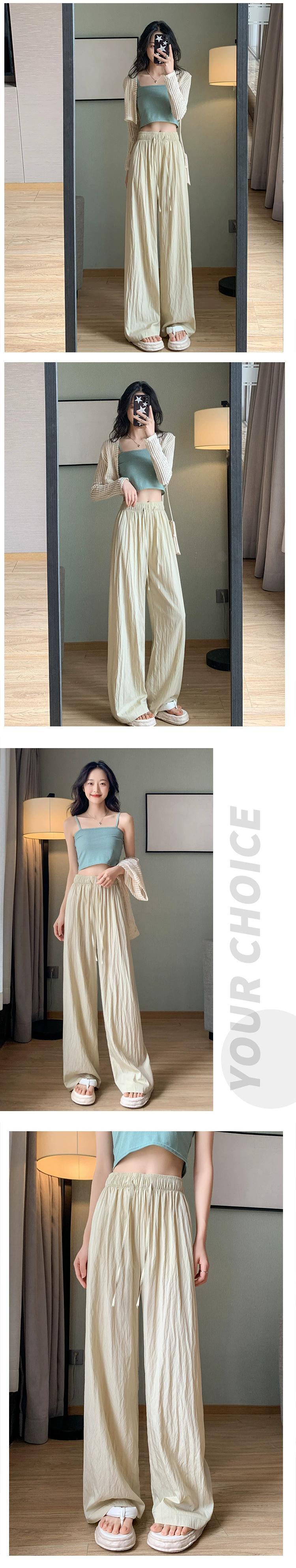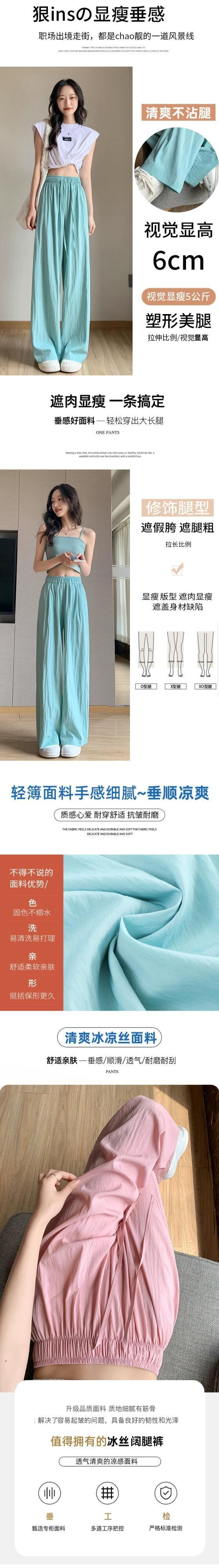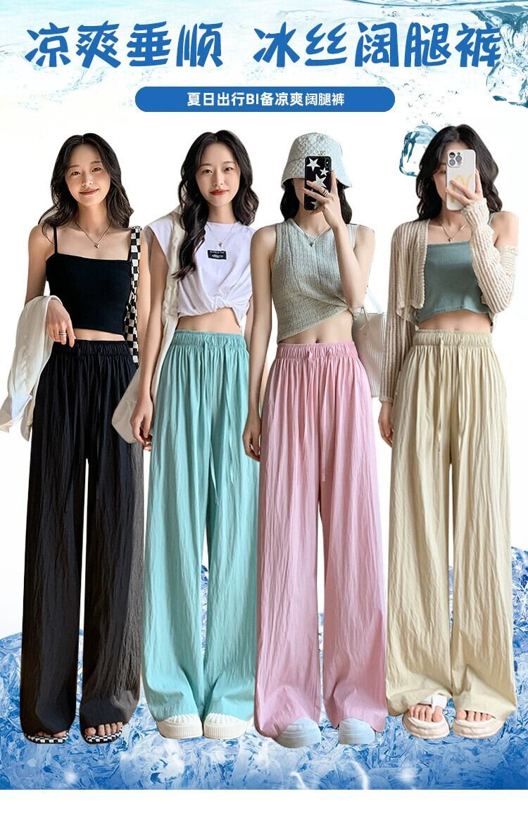プリーツアイスシルクワイドレッグパンツレディース夏薄手ストレートコットンリネンモップパンツルーズカジュアルハイウエストドレープパンツトレンディ ハイウェスト サマー 夏物 7460052732342207 | framboise21