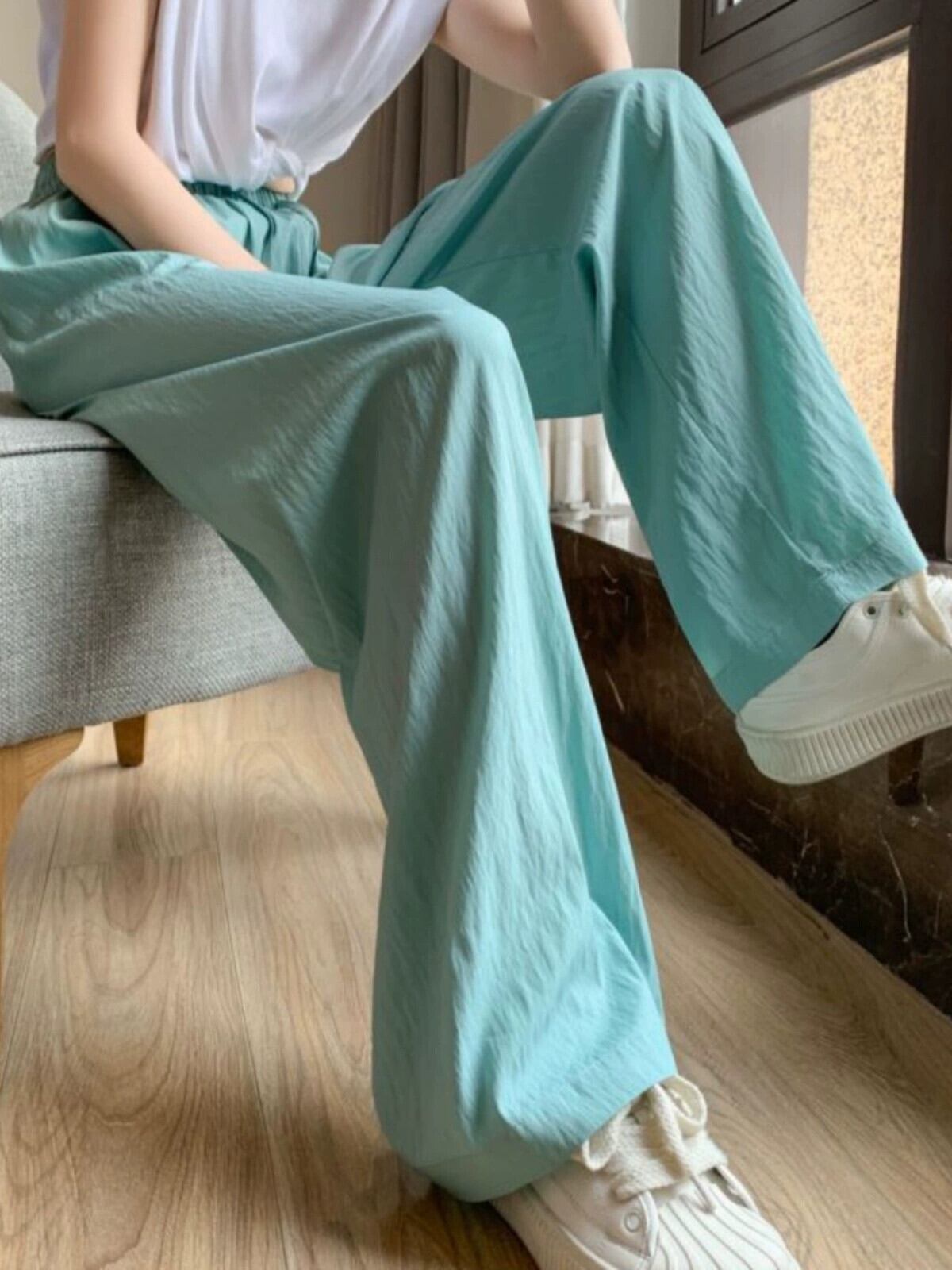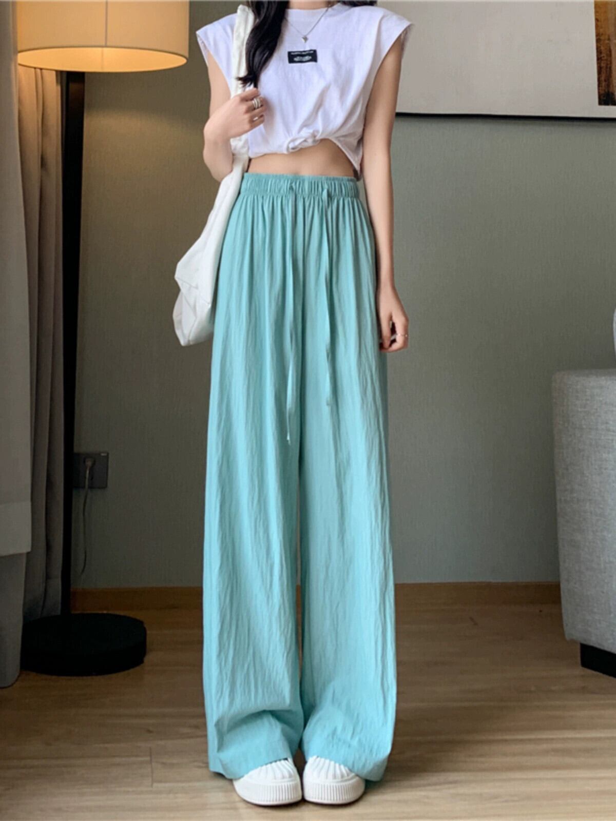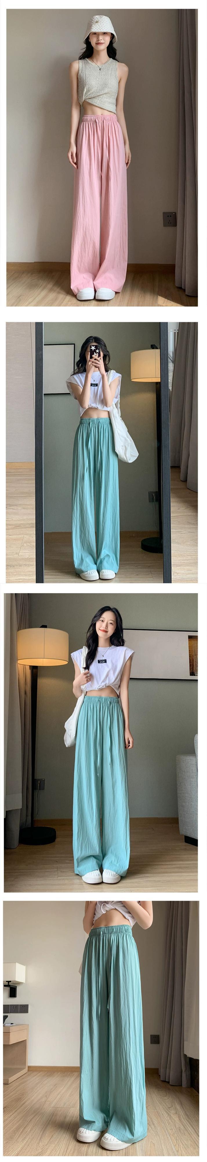 プリーツアイスシルクワイドレッグパンツレディース夏薄手ストレートコットンリネンモップパンツルーズカジュアルハイウエストドレープパンツトレンディ ハイウェスト サマー 夏物 7460052732342207 | framboise21