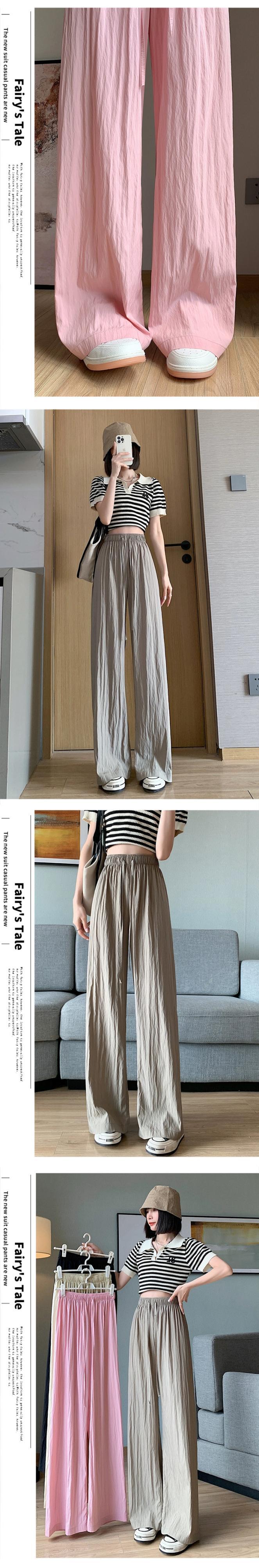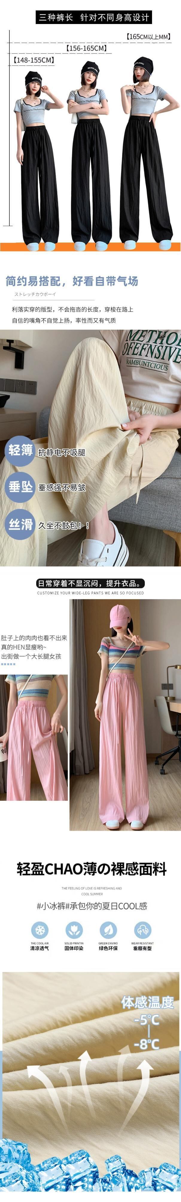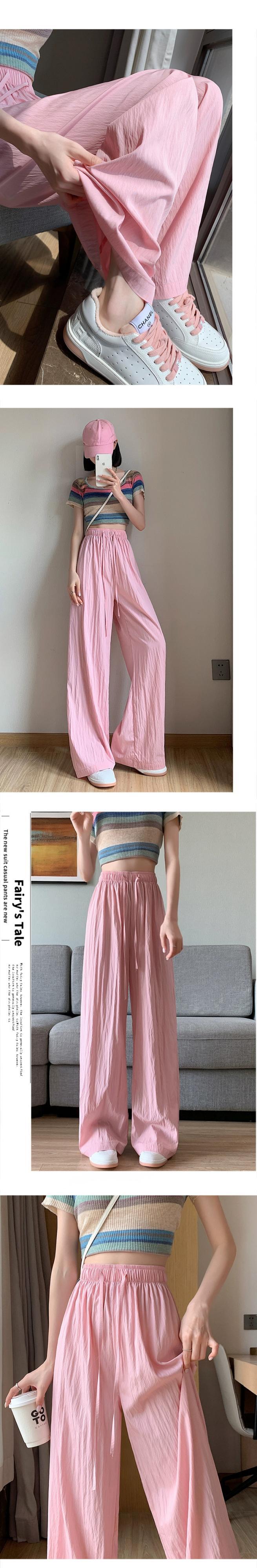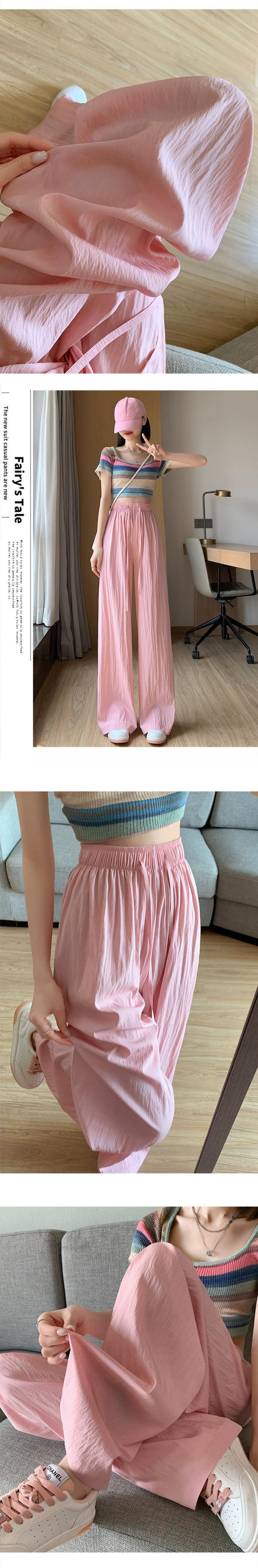 アイスシルクワイドレッグパンツの狭いバージョンの女性の夏薄いセクションハイウエストドレープストレートチューブピンクカジュアルテクスチャ日焼け止めパンツ ハイウェスト サマー 夏物 7460069701943735 | framboise21