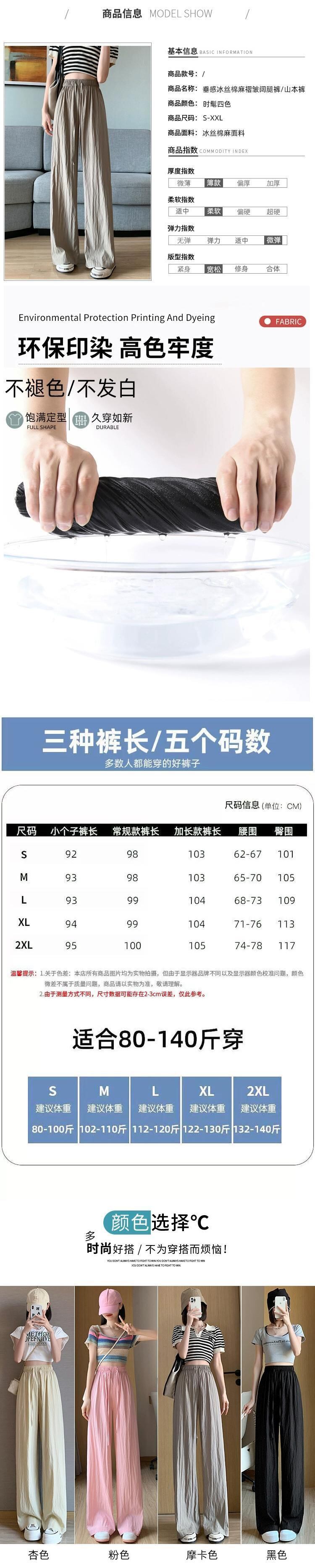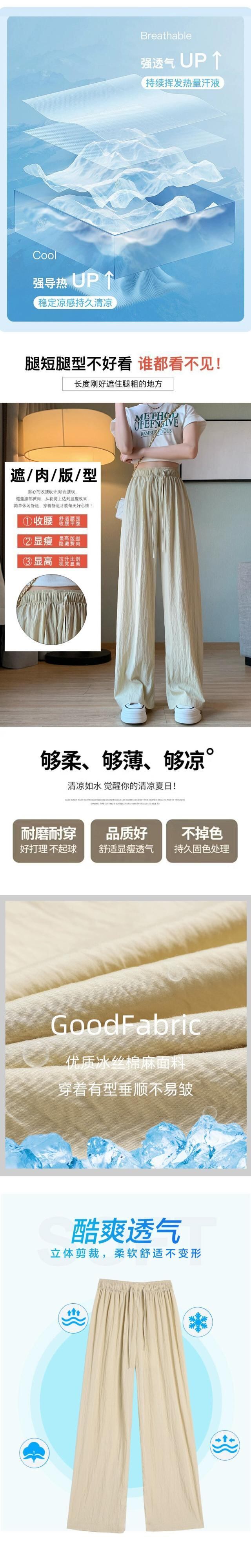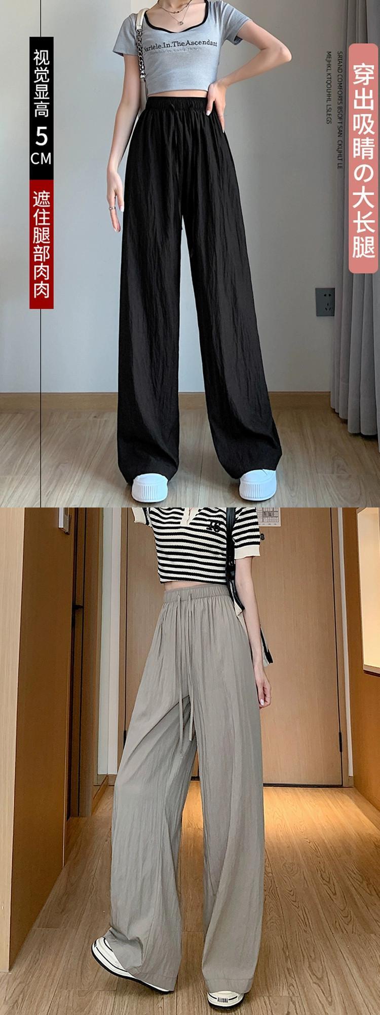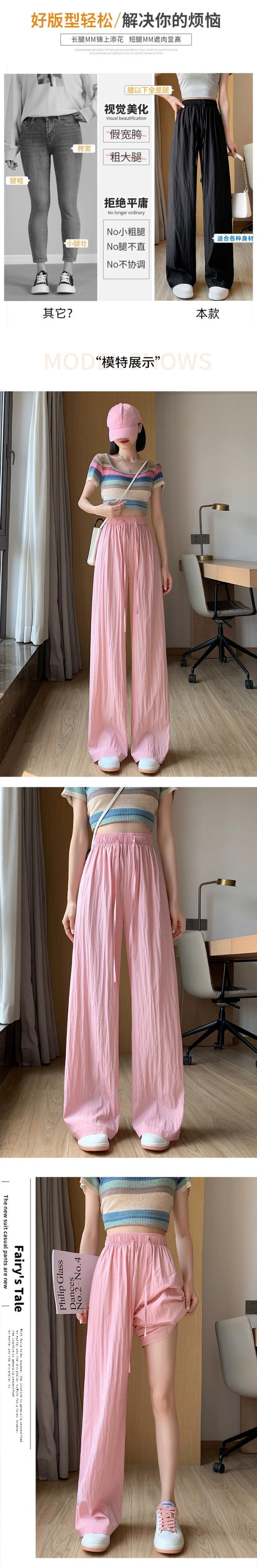 アイスシルクワイドレッグパンツの狭いバージョンの女性の夏薄いセクションハイウエストドレープストレートチューブピンクカジュアルテクスチャ日焼け止めパンツ ハイウェスト サマー 夏物 7460069701943735 | framboise21