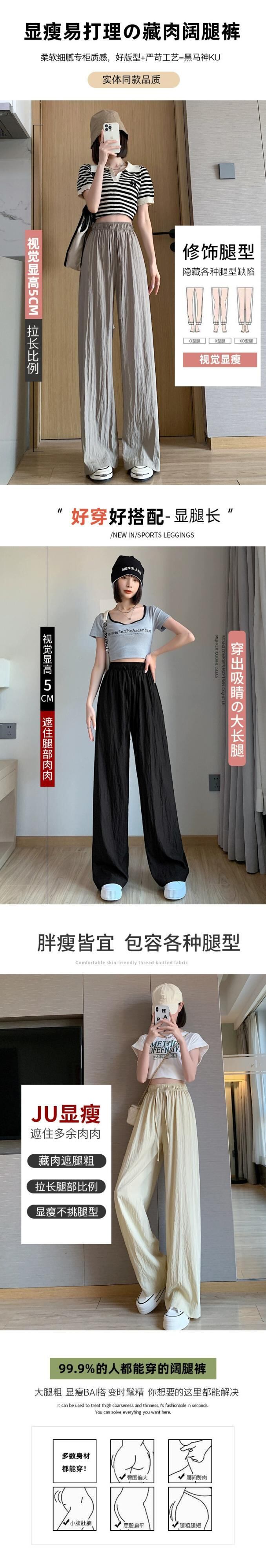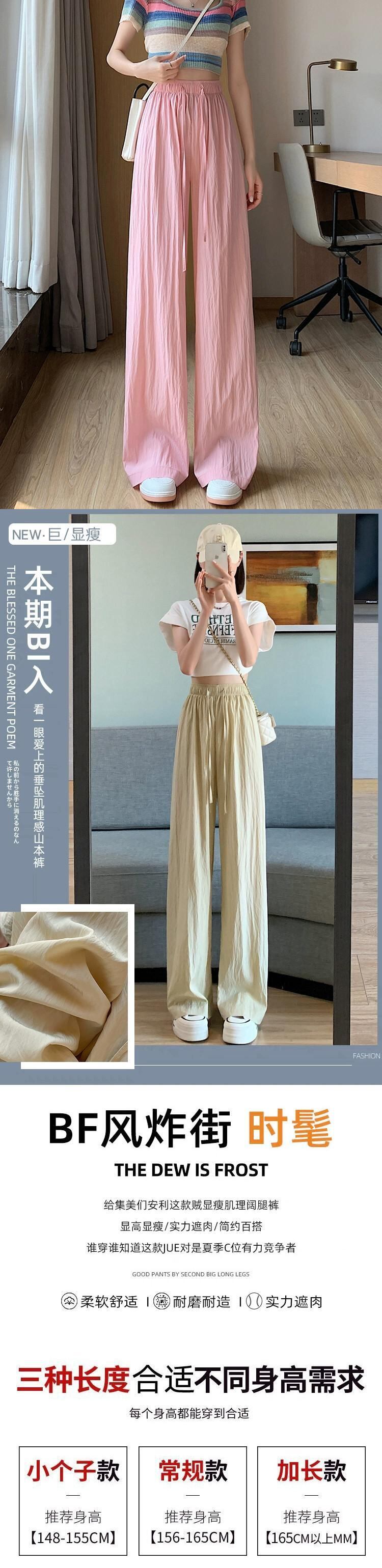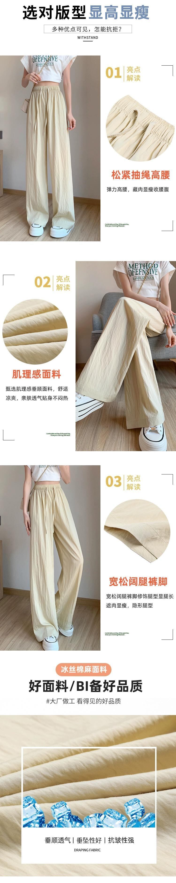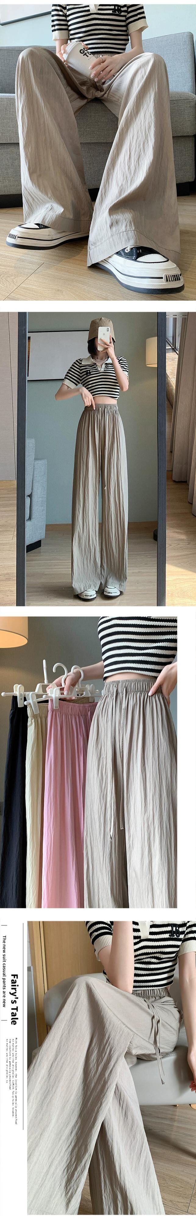アイスシルクワイドレッグパンツの狭いバージョンの女性の夏薄いセクションハイウエストドレープストレートチューブピンクカジュアルテクスチャ日焼け止めパンツ ハイウェスト サマー 夏物 7460069701943735 | framboise21