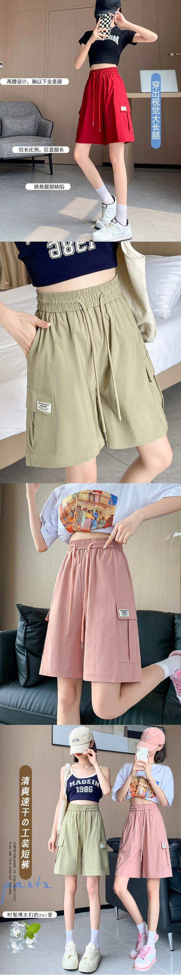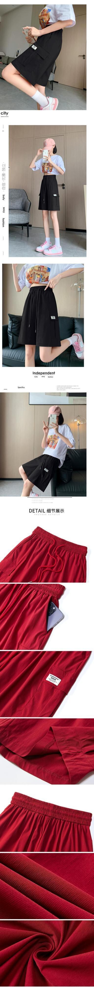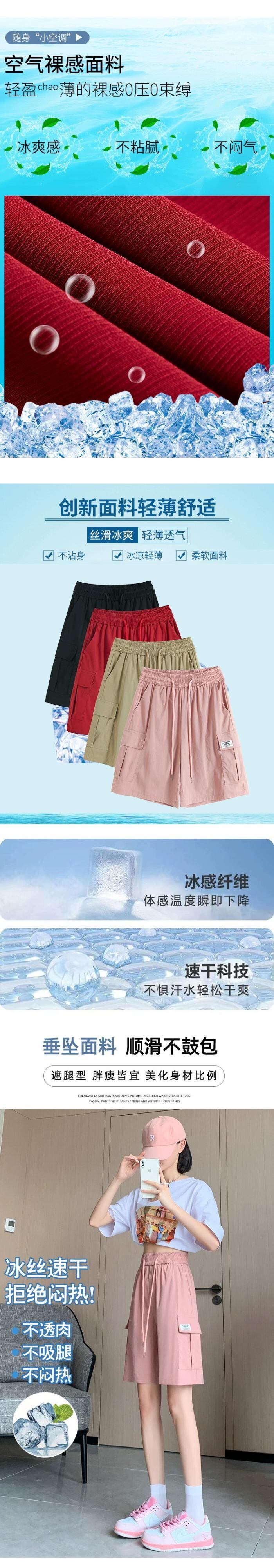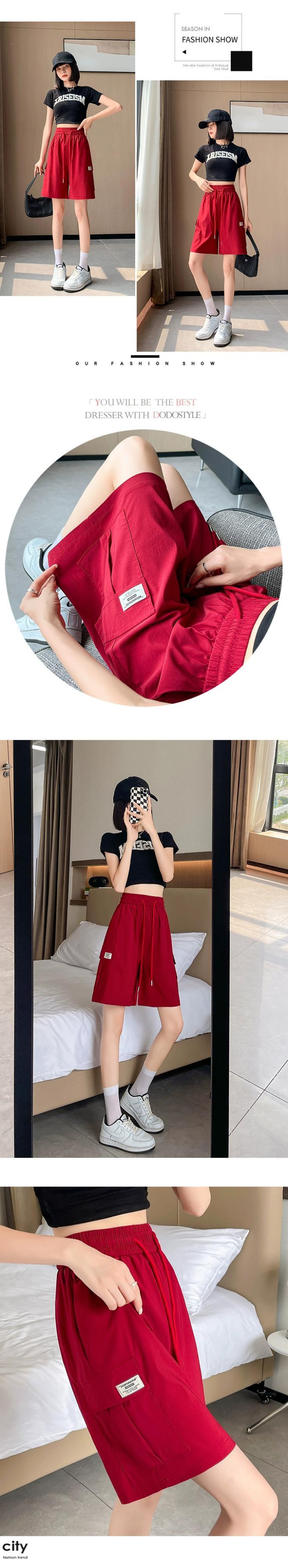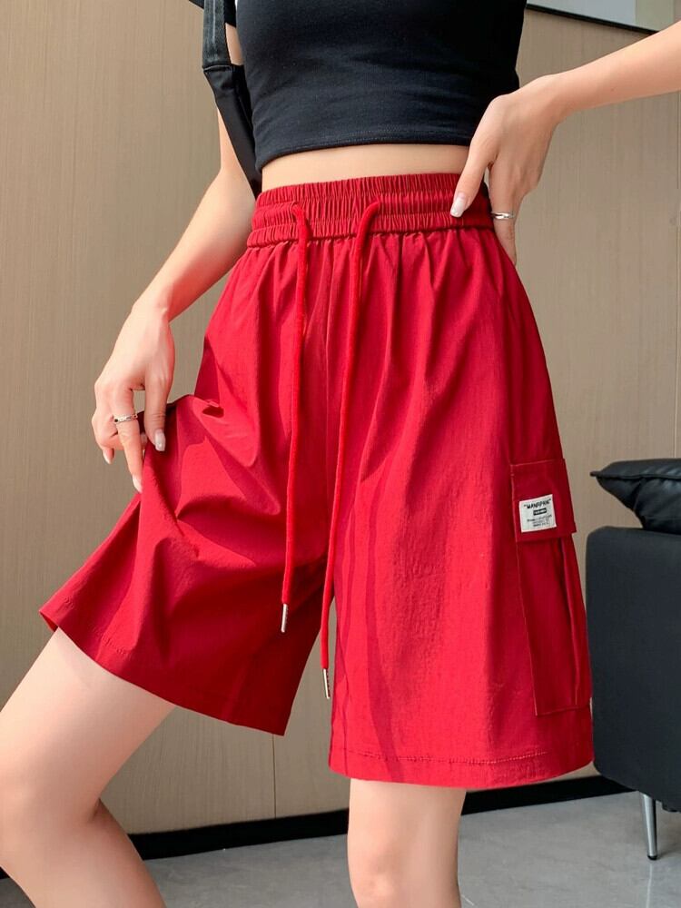 レッド速乾性オーバーオールショーツレディース夏アメリカンレトロハイウエスト5点スポーツパンツ薄肉アイスシルクカジュアルパンツ ハイウェスト サマー 夏物 ブルマー 7460053180842216 | framboise21