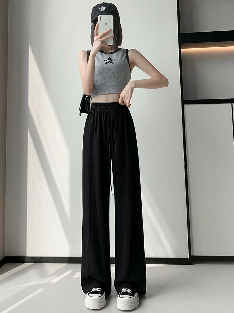 ブラックアイスシルクワイドレッグパンツレディース夏薄部プリーツクールパンツルーズハイウエストストレートテンセルカジュアルレディースパンツ ハイウェスト サマー 夏物 7460048053344587 | framboise21