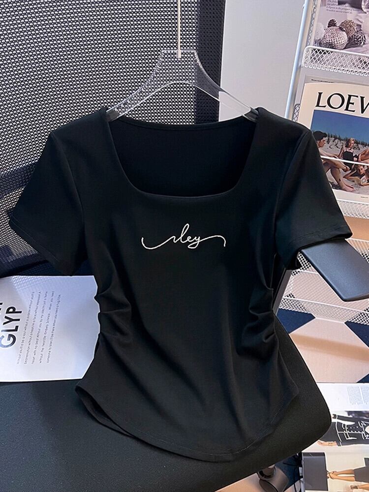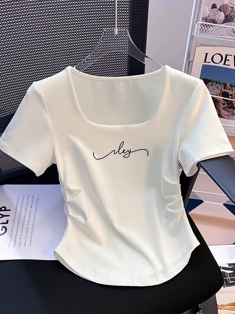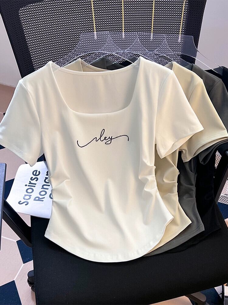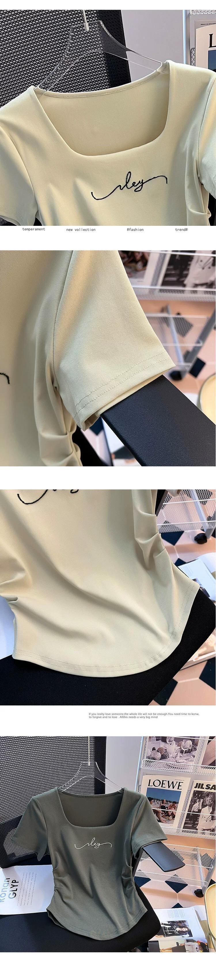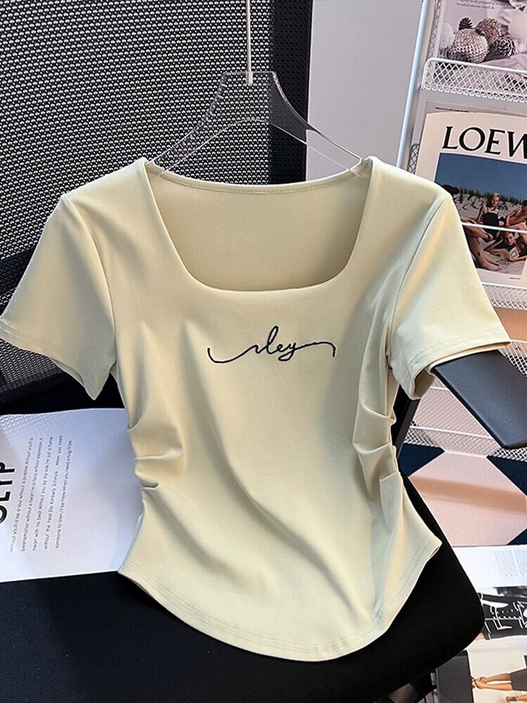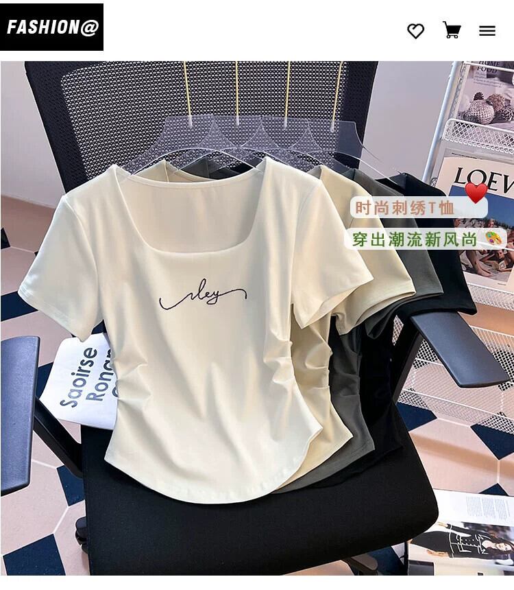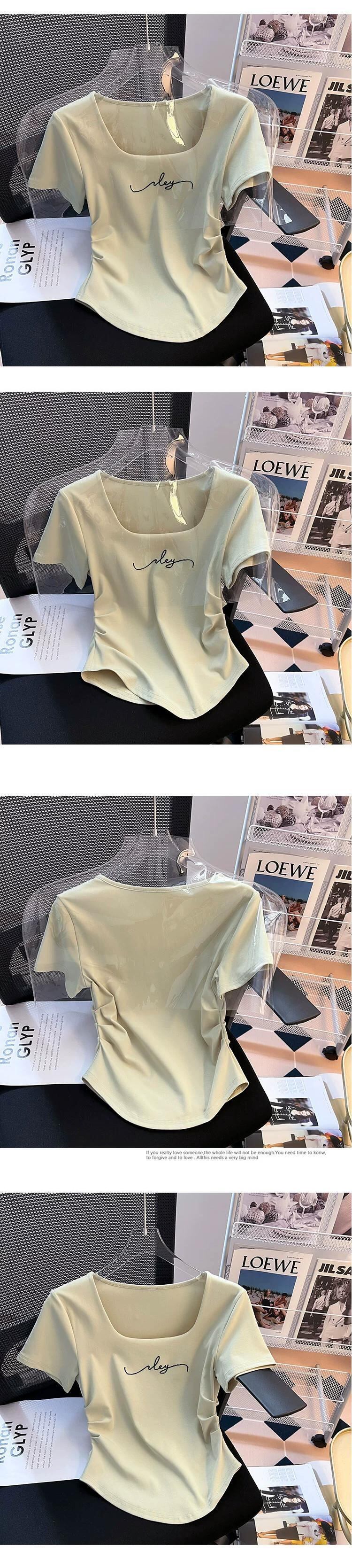 大きいネックラインスクエアカラー半袖Tシャツレディース夏eignスタイルデザイン自己修養感イレギュラーヘムシャーリングショートトップス サマー 夏物 スクウェア 74600627050844 | framboise21