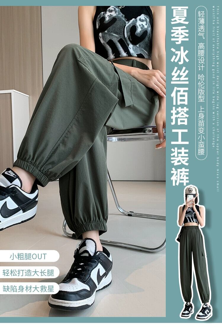 アイスシルク 9点ハーレムパンツ レディース 夏 薄手 スポーツ オーバーオール アメカジ アーミーグリーン 速乾パンツ カジュアル サマー 夏物 746007885176629 | framboise21