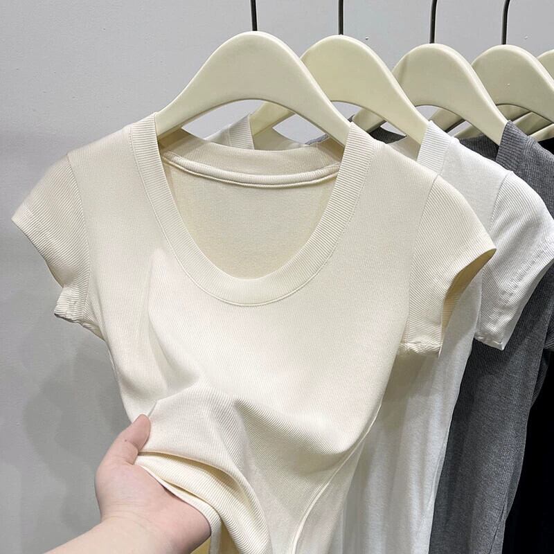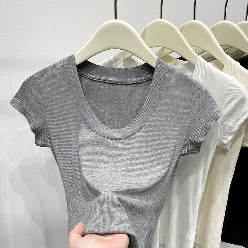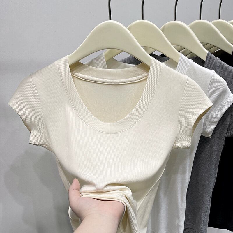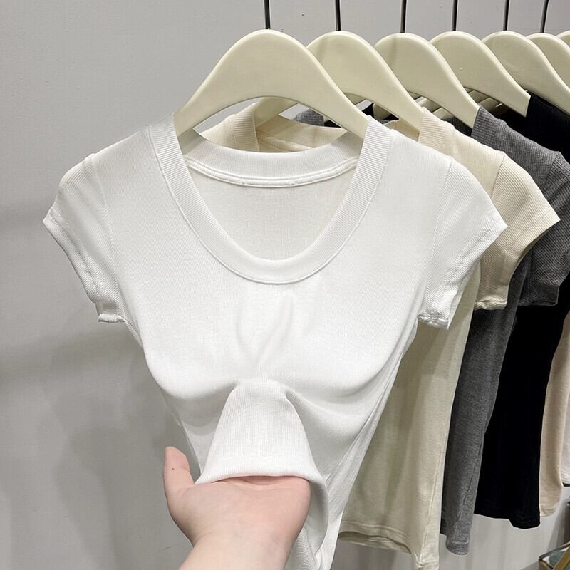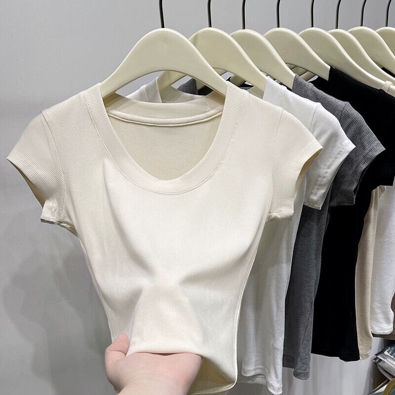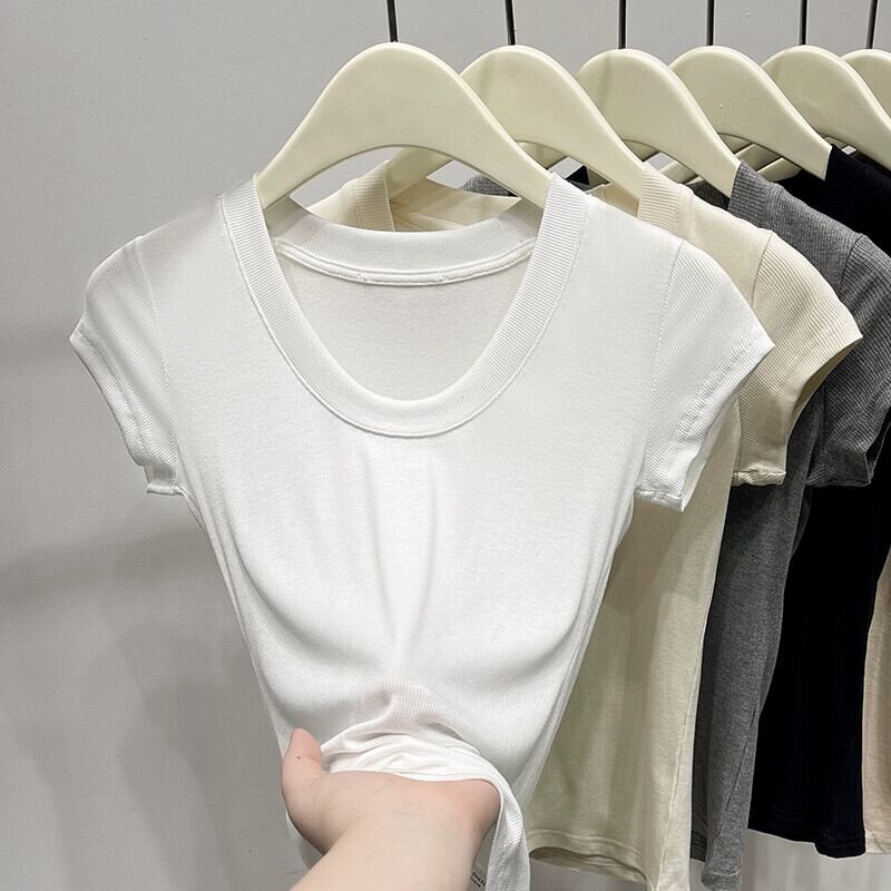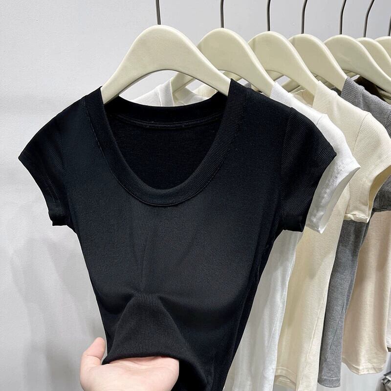薄氷シルク半袖 tシャツ女性の夏の 2023 新しいレトロファッション自己修養スリムローカラーフロントショルダーショートトップ サマー 夏物 7460017992365968 | framboise21