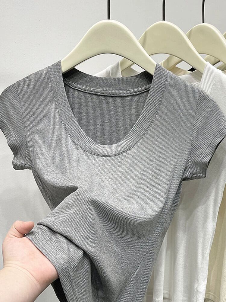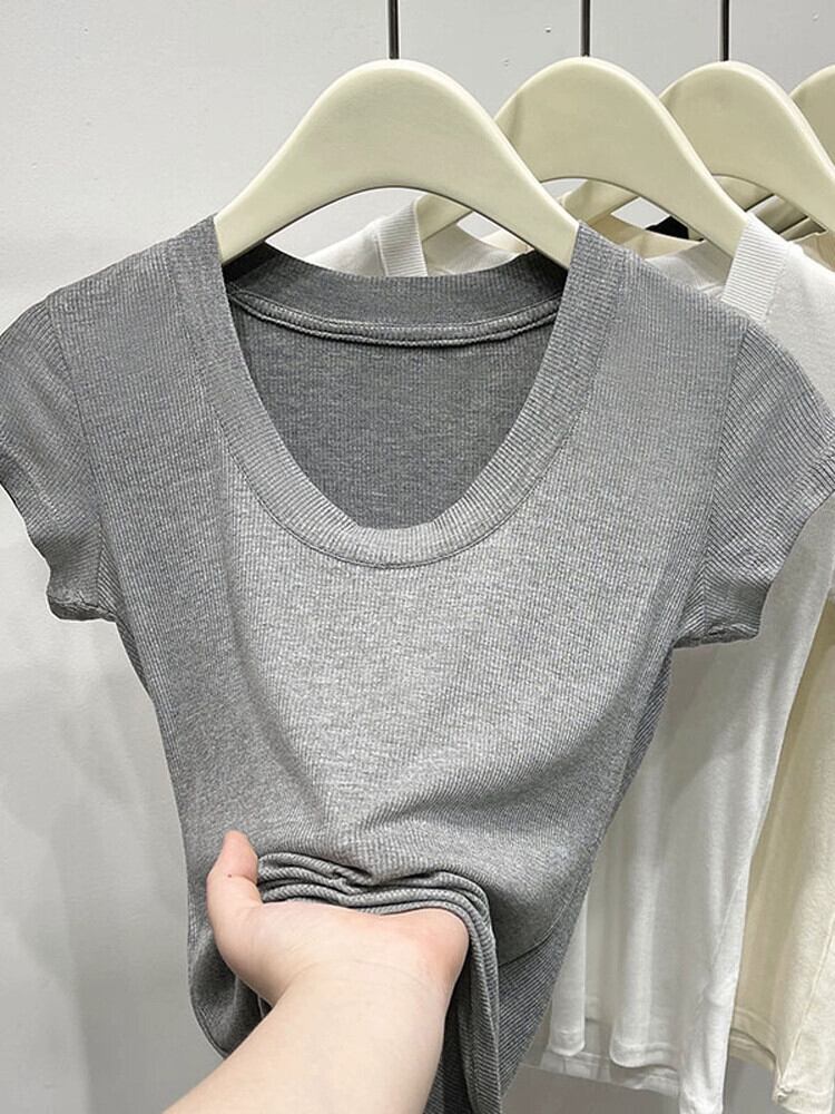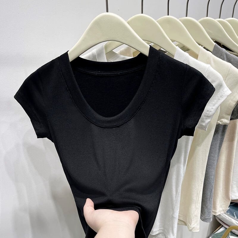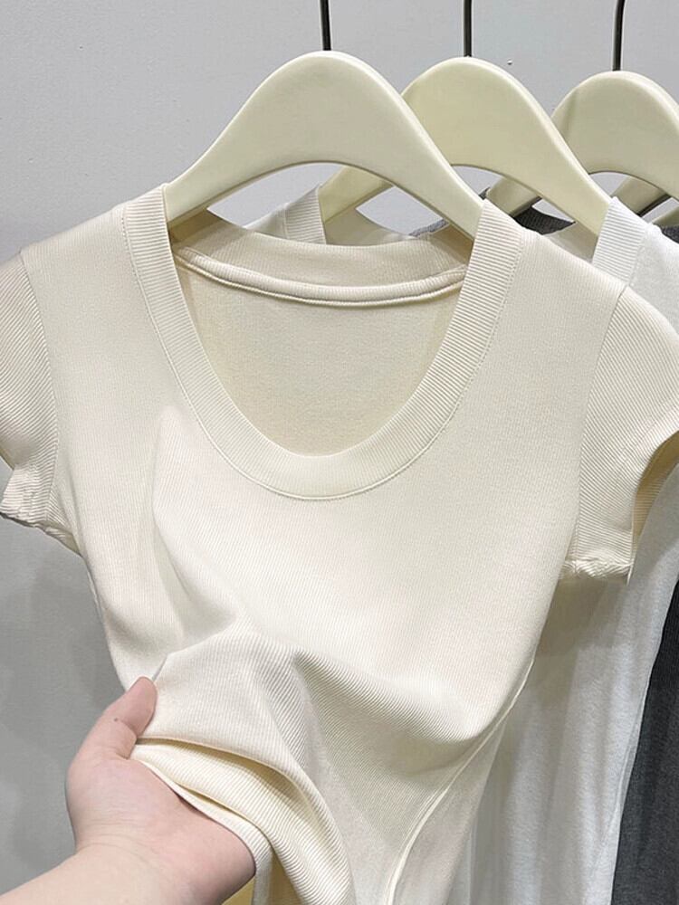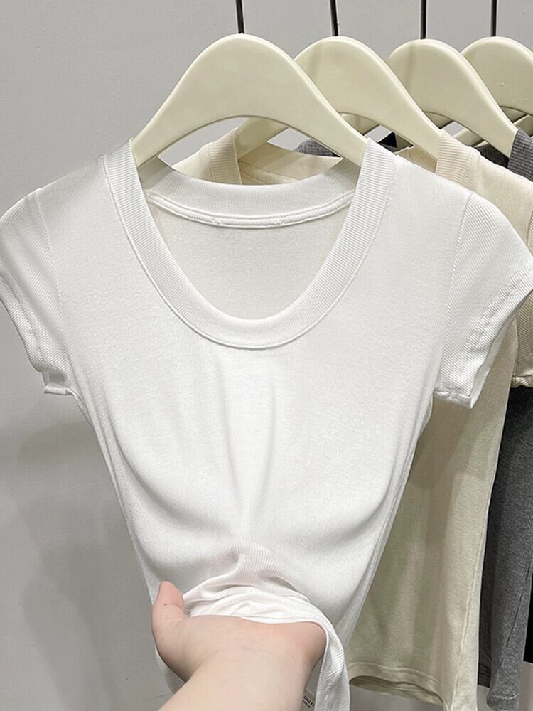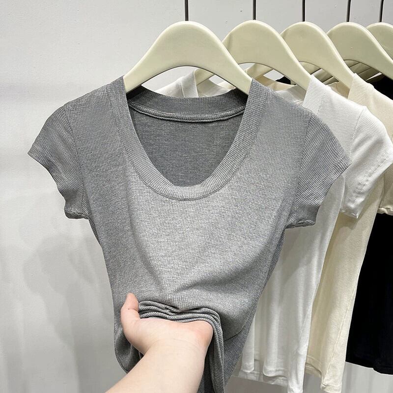 薄氷シルク半袖 tシャツ女性の夏の 2023 新しいレトロファッション自己修養スリムローカラーフロントショルダーショートトップ サマー 夏物 7460017992365968 | framboise21