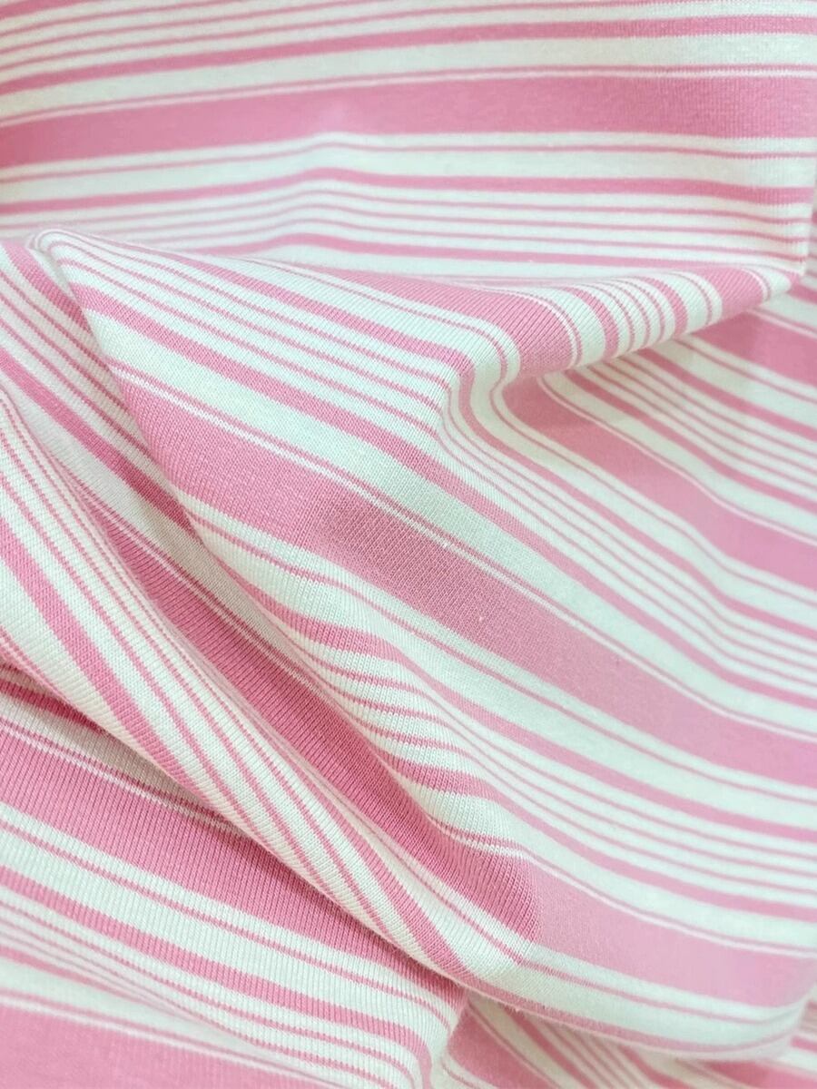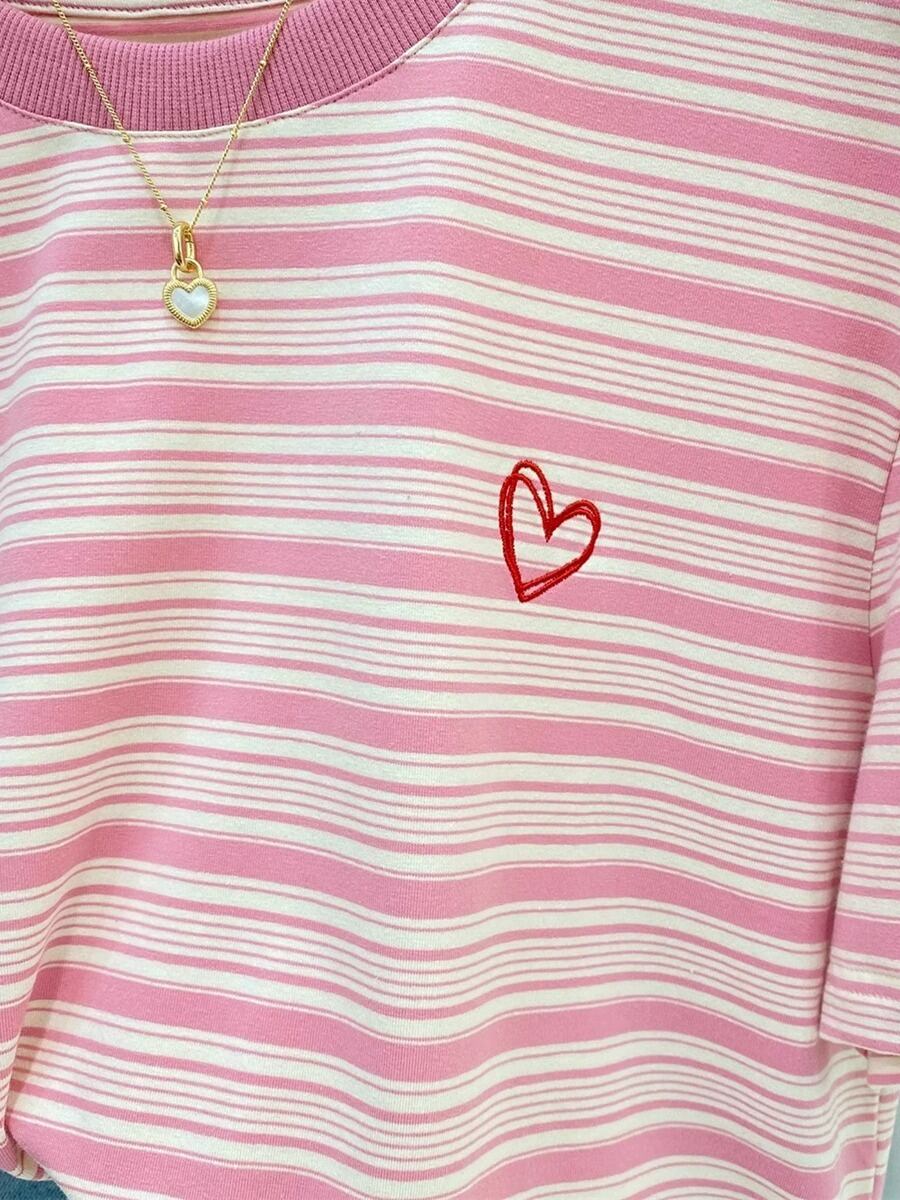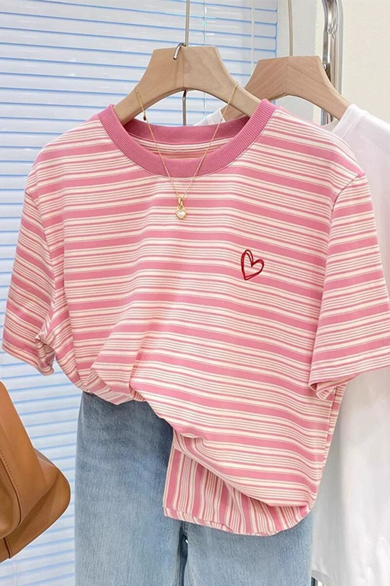 ピンクのストライプのラウンドネック半袖 Tシャツの女性の夏のルーズなデザインセンス薄いオールマッチフロントショルダー純綿トップイン潮 コットン サマー 夏物 Oネック ピュア 7460036991130413 | framboise21