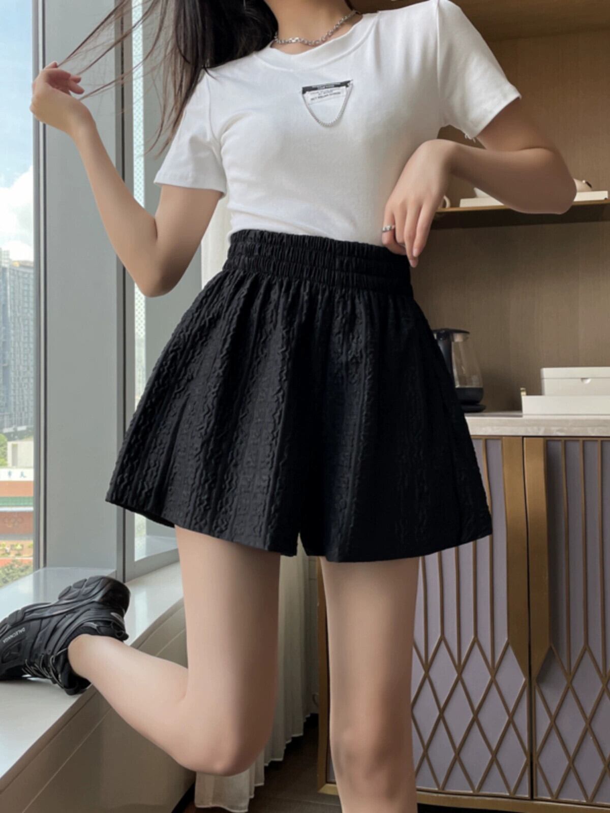 Aラインワイドレッグショーツレディース夏薄部ルーズスリムハイウエストアウターパンツ小さめカジュアルブラックパンツ ハイウェスト サマー 夏物 ブルマー 746005755963054 | framboise21