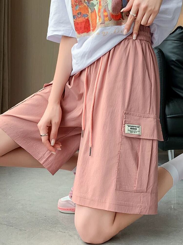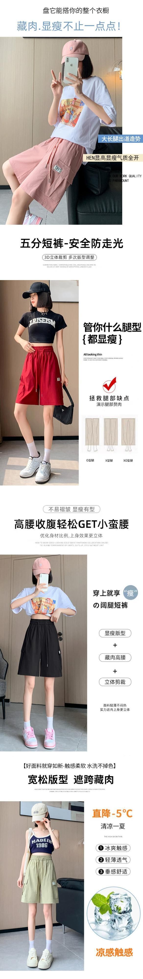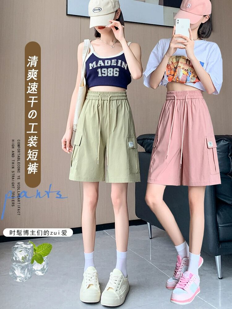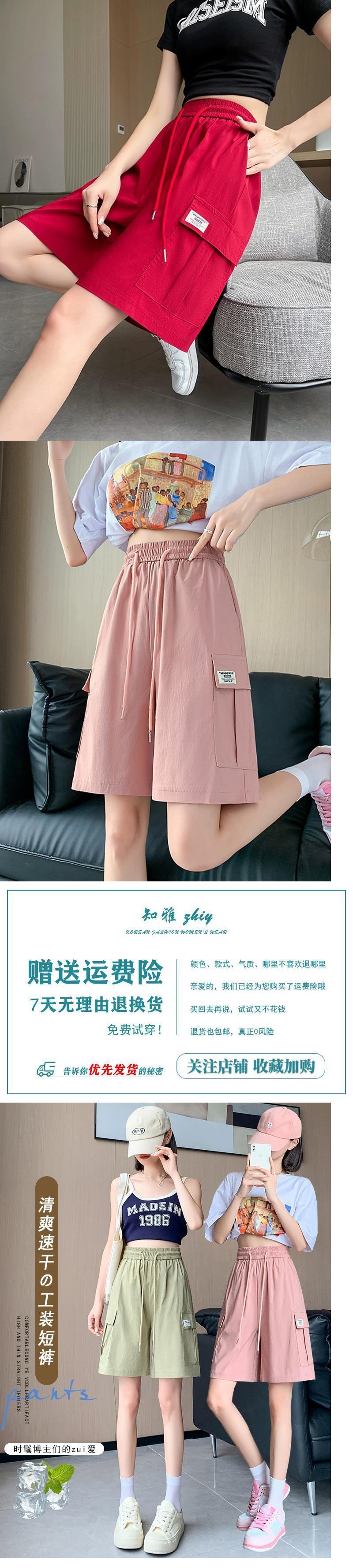 ピンクカジュアルオーバーオールレディース夏薄氷シルク速乾 5 点パンツアメリカンスタイルの小さなストレートワイドレッグパンツ サマー 夏物 7460081126129953 | framboise21