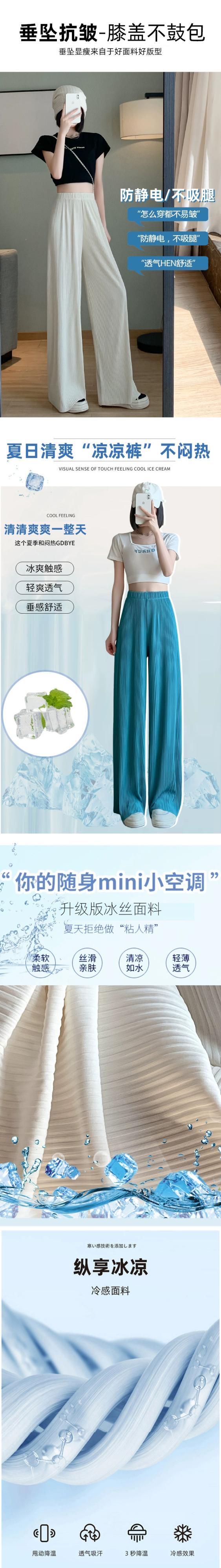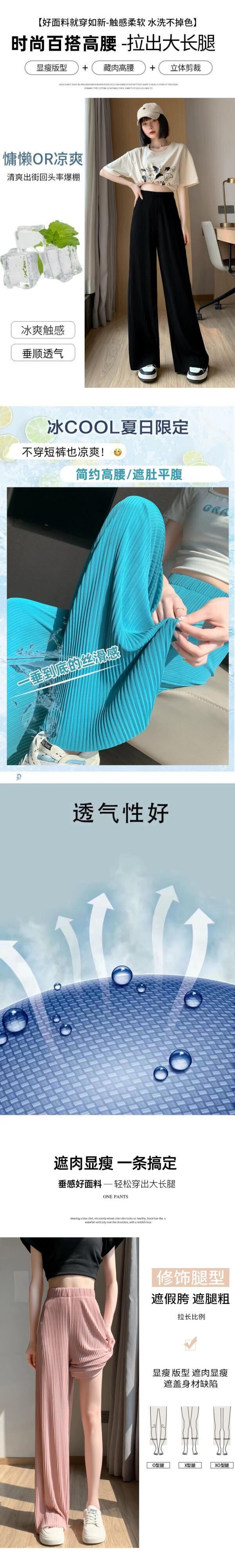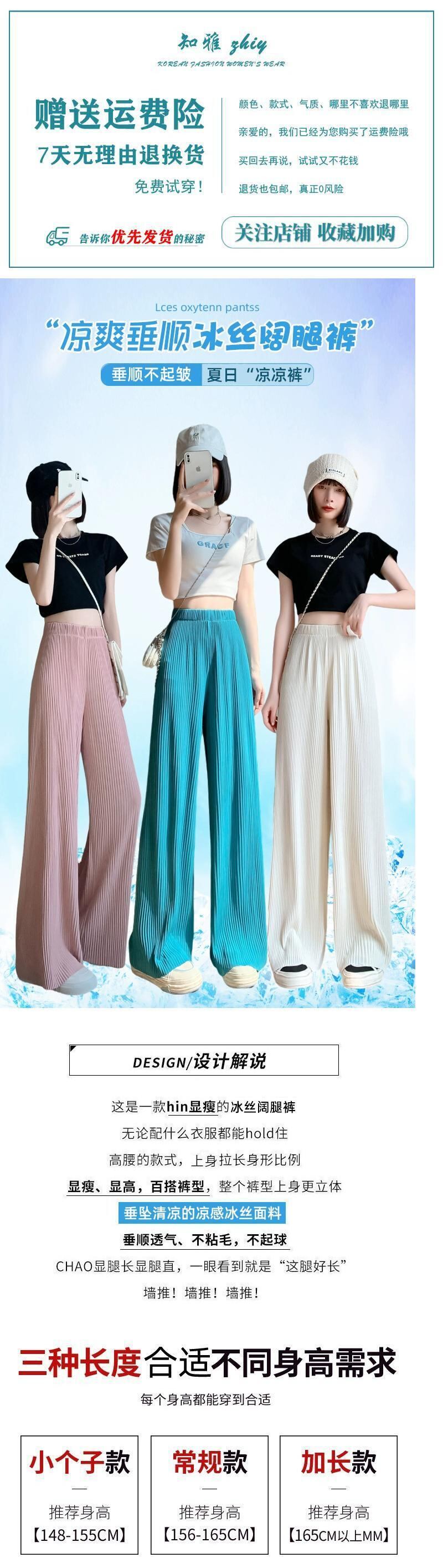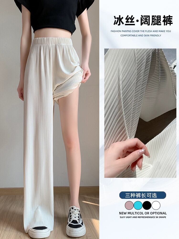 プリーツアイスシルクワイドレッグパンツ女性の 2023 新しい夏の薄いセクション日焼け止めクールパンツルーズモップカジュアルパンツブルー サマー 夏物 7460010082195368 | framboise21
