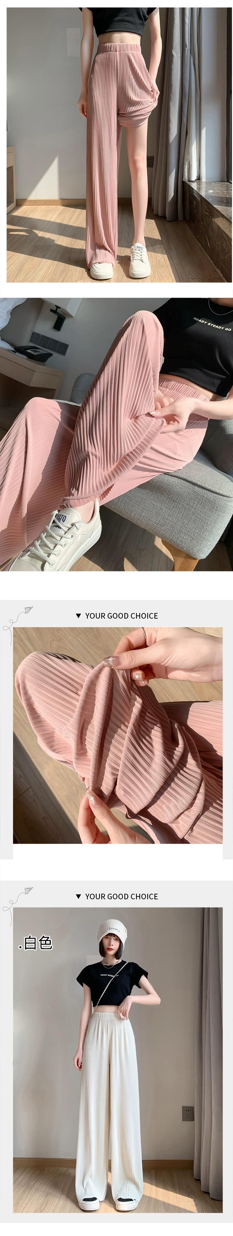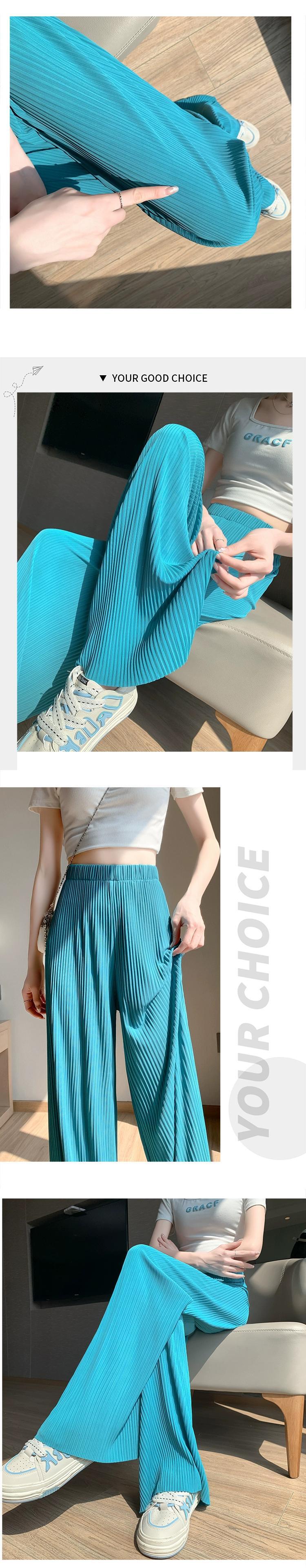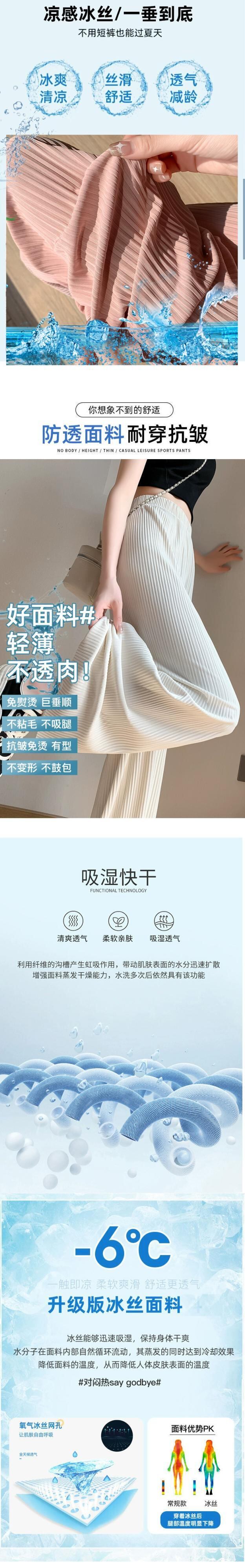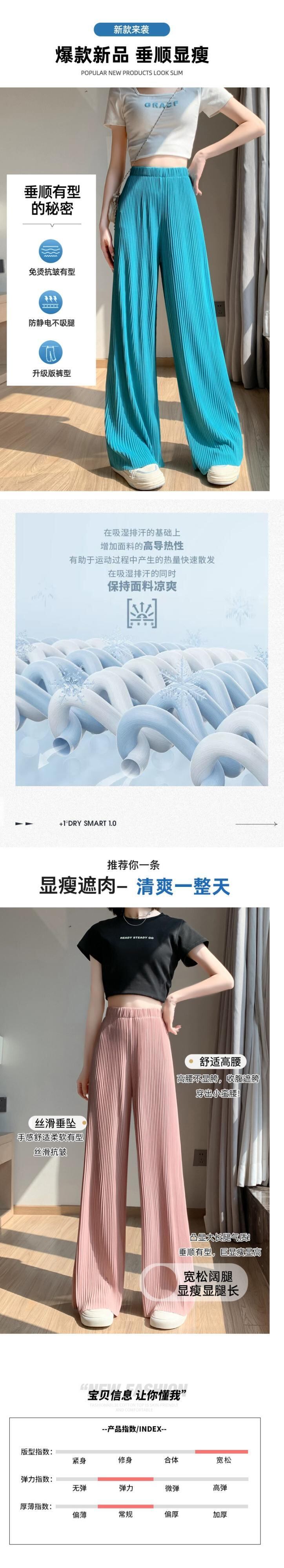 プリーツアイスシルクワイドレッグパンツ女性の 2023 新しい夏の薄いセクション日焼け止めクールパンツルーズモップカジュアルパンツブルー サマー 夏物 7460010082195368 | framboise21