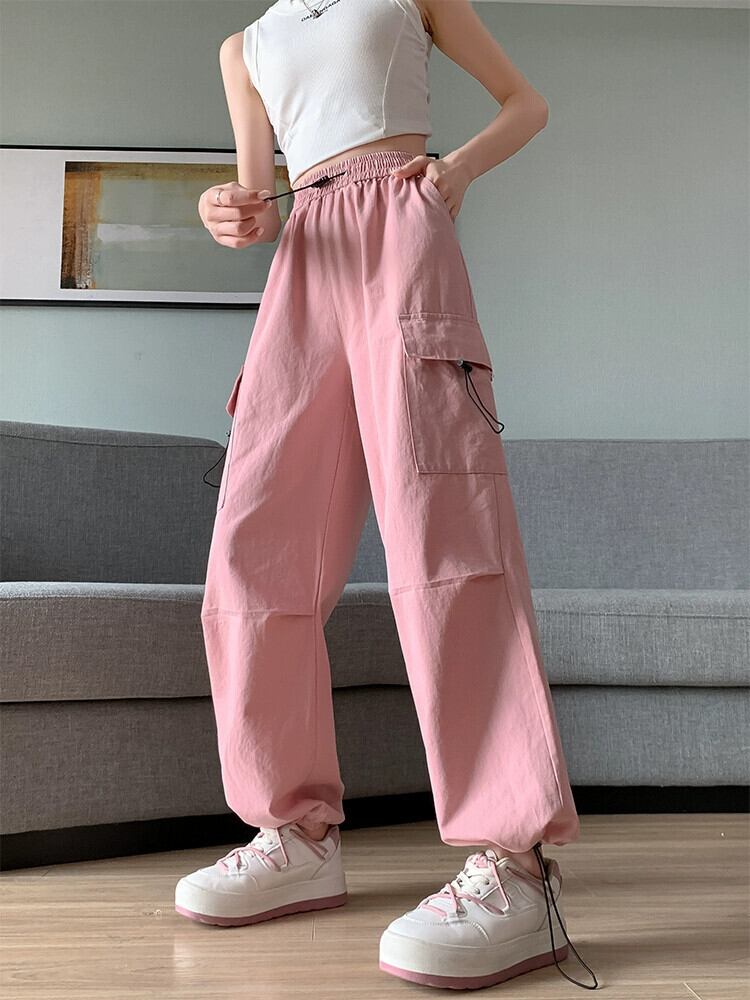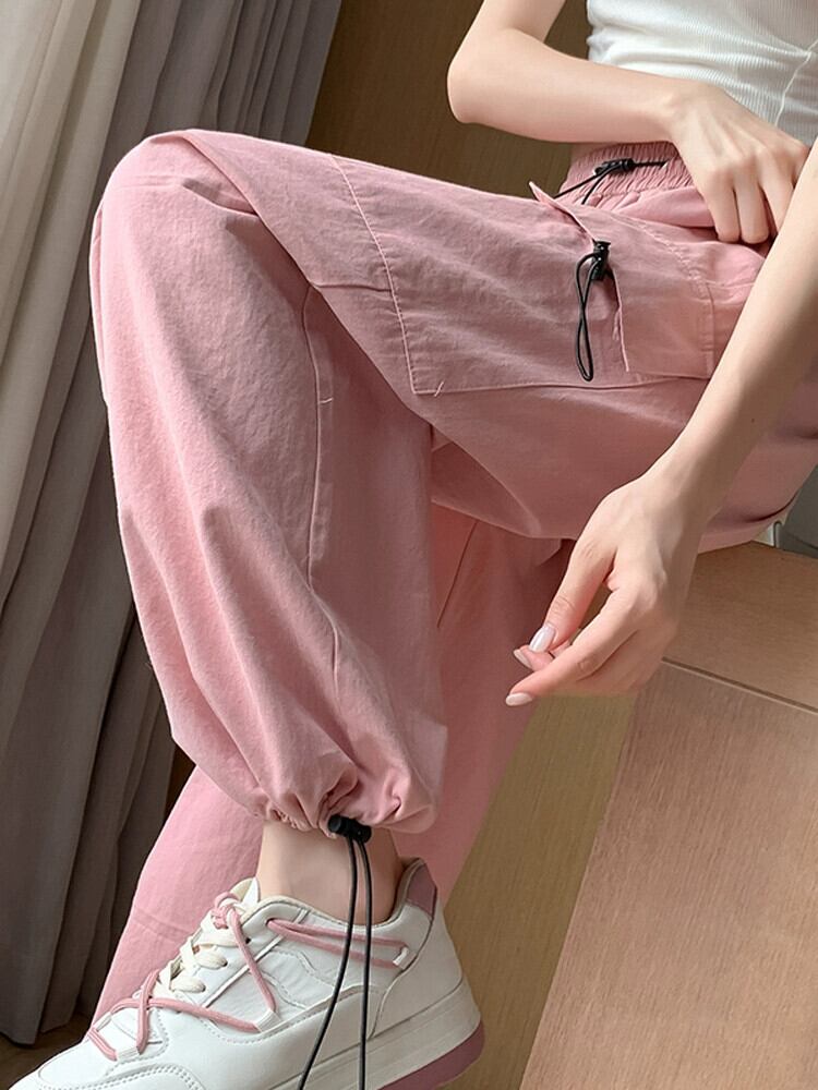 アメリカンスタイルのピンクのオーバーオール女性の夏の薄いセクションスポーツパンツ小さな緩いアイスシルク速乾性カジュアルパンツ サマー 夏物 7460095003387379 | framboise21