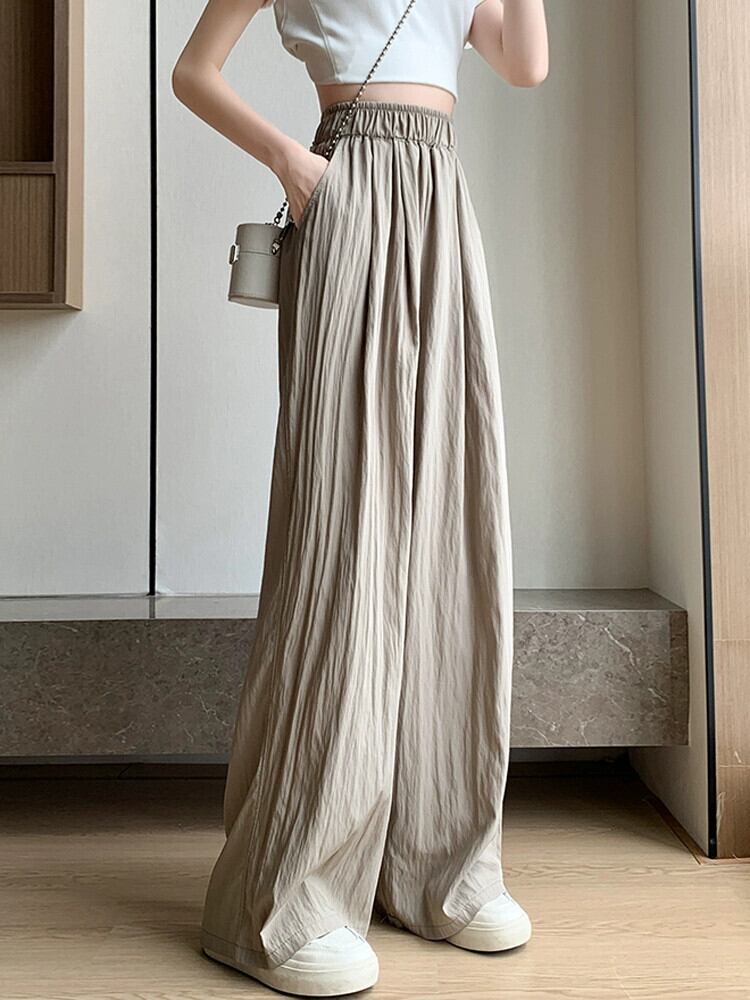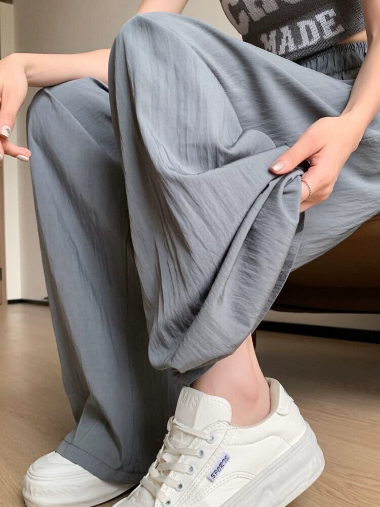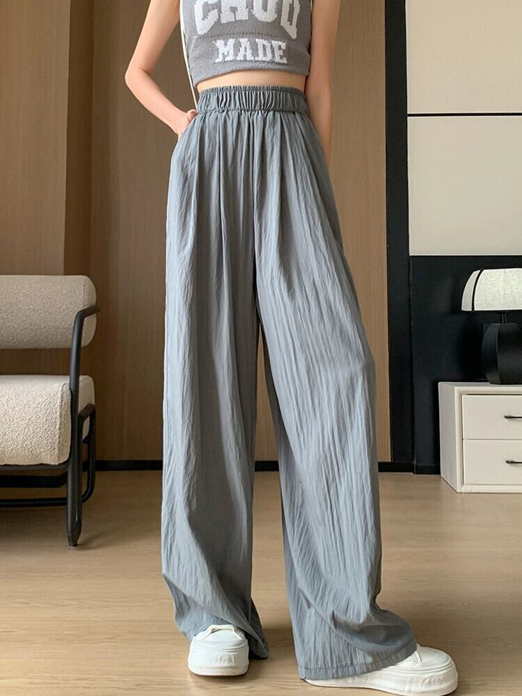 アイスシルクリネンの女性のズボンの夏のスタイル 2023 新しい綿とリネンのナローバージョンワイドレッグパンツ女性の薄いセクションハイウエストドレープカジュアルパンツ ハイウェスト コットン サマー 夏物 7460030043233167 | framboise21